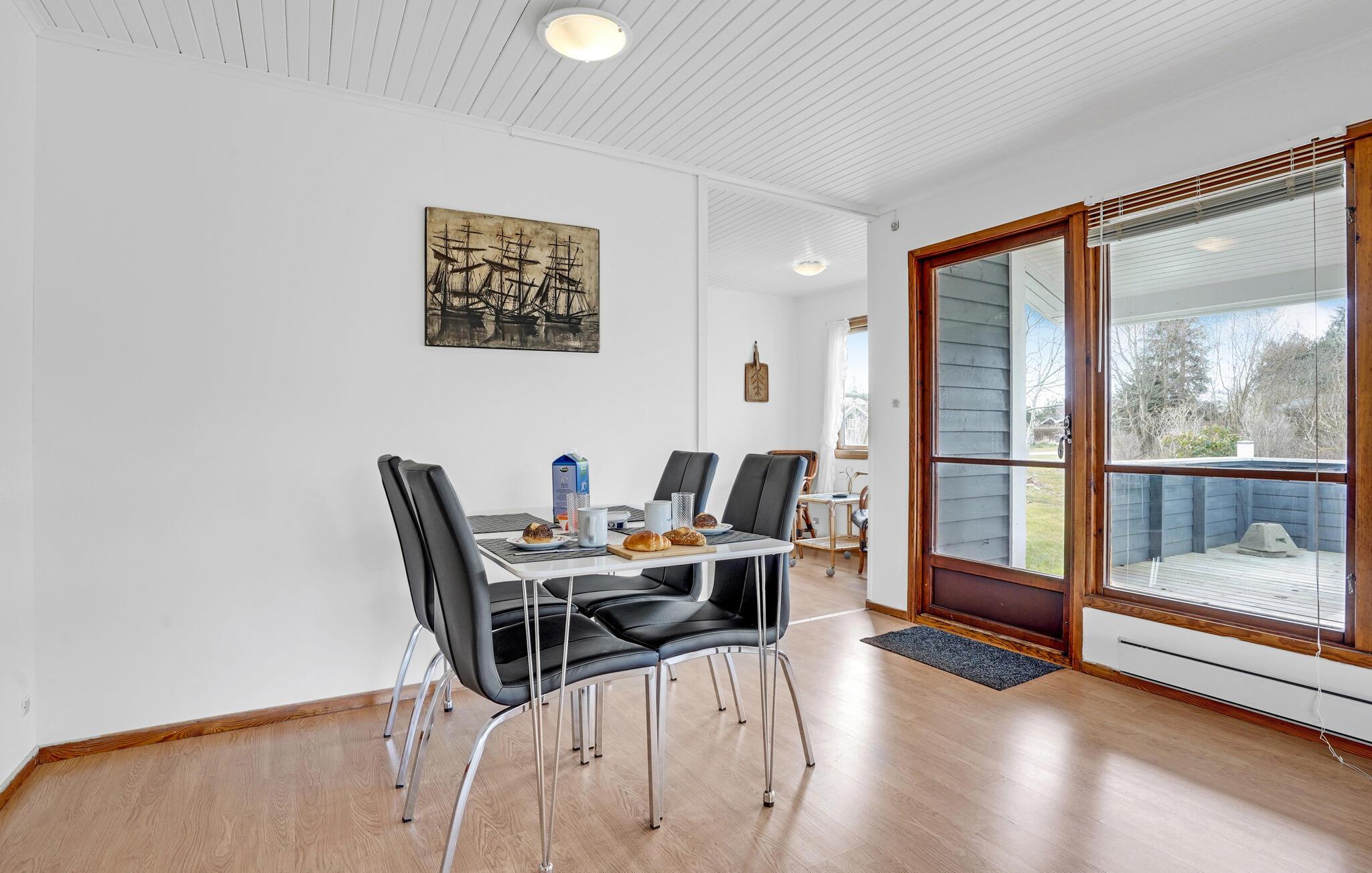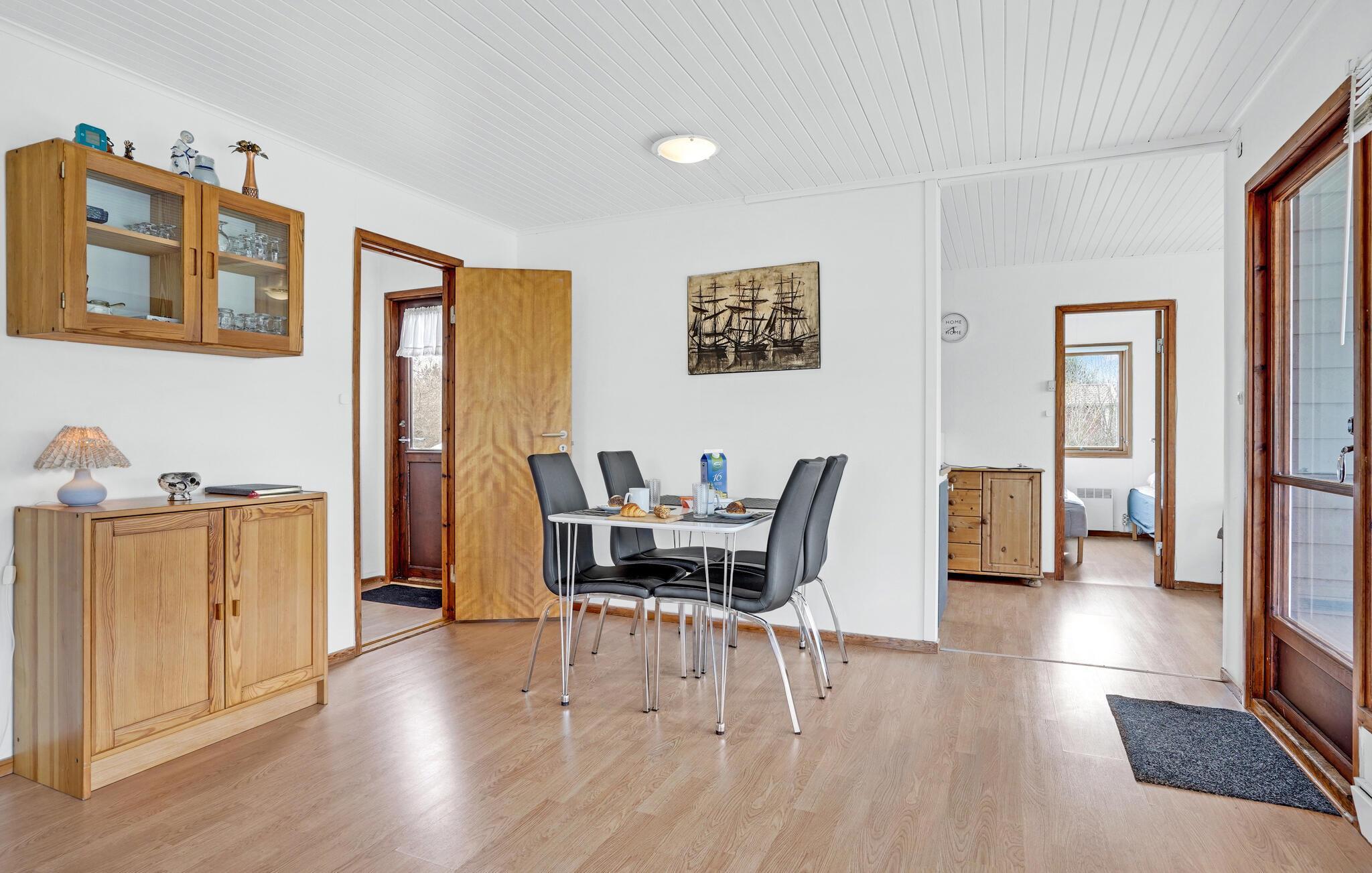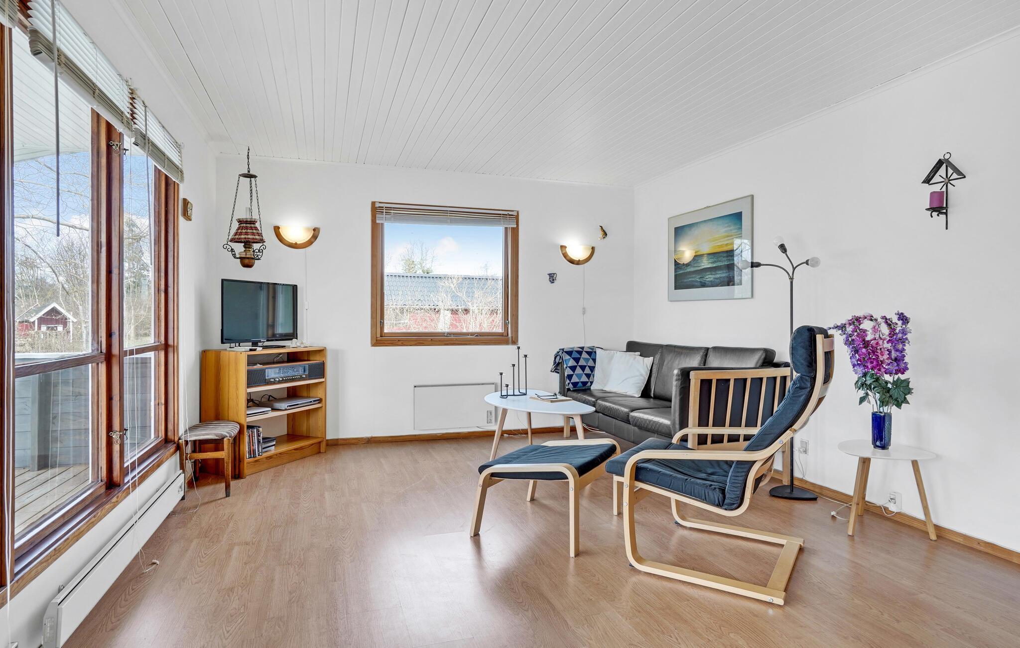 Dette hyggelige hus er perfekt til en afslappende pause fra hverdagen. De store vinduer lukker det naturlige lys ind i stuerne, mens de enkle indretningsløsninger og retrodetaljerne skaber en rar atmosfære. Læn jer tilbage i sofaen eller lænestolen, mens I lytter til musik eller ser tv, og tilbered derefter et lækkert måltid i køkkenet.