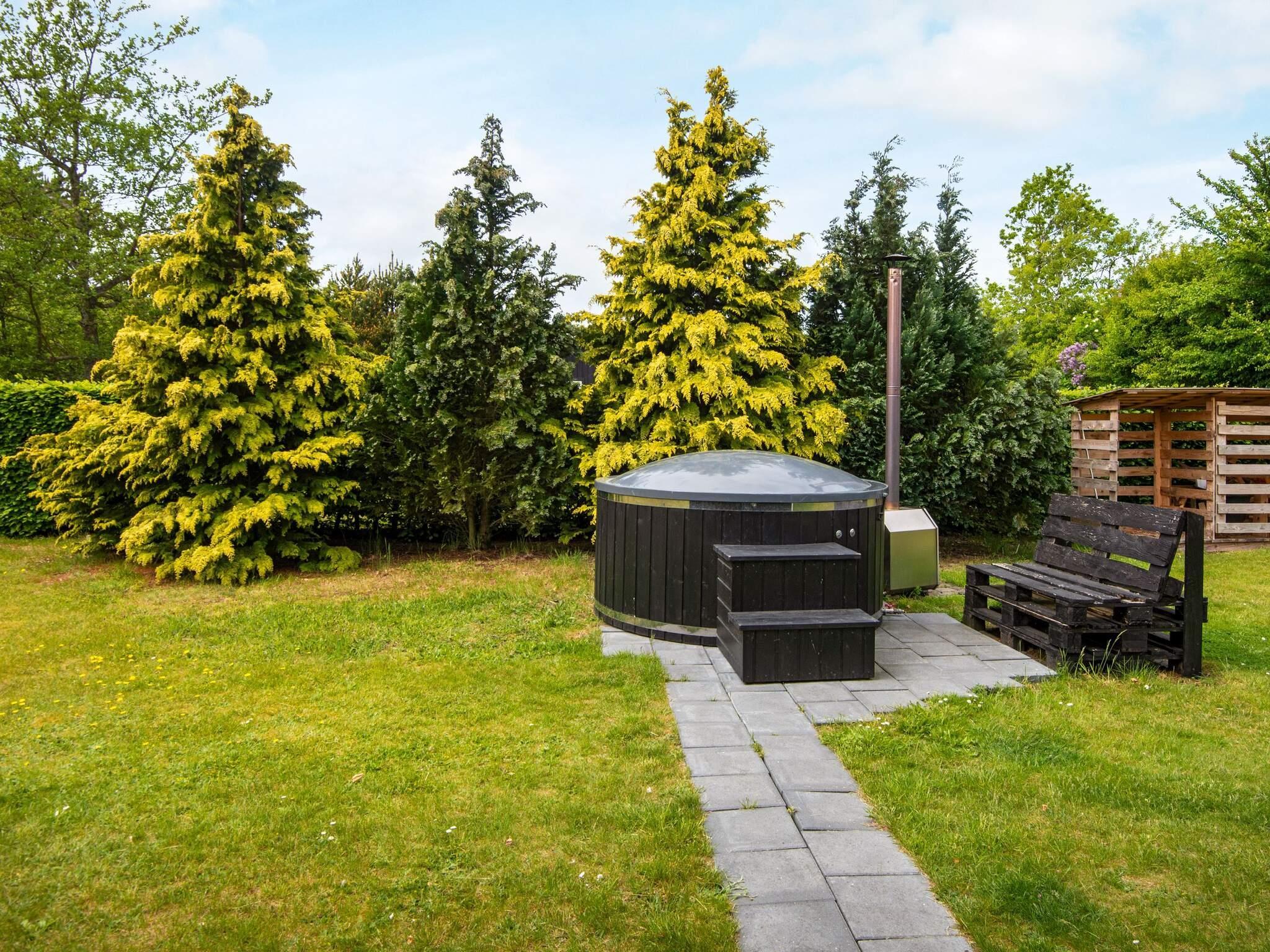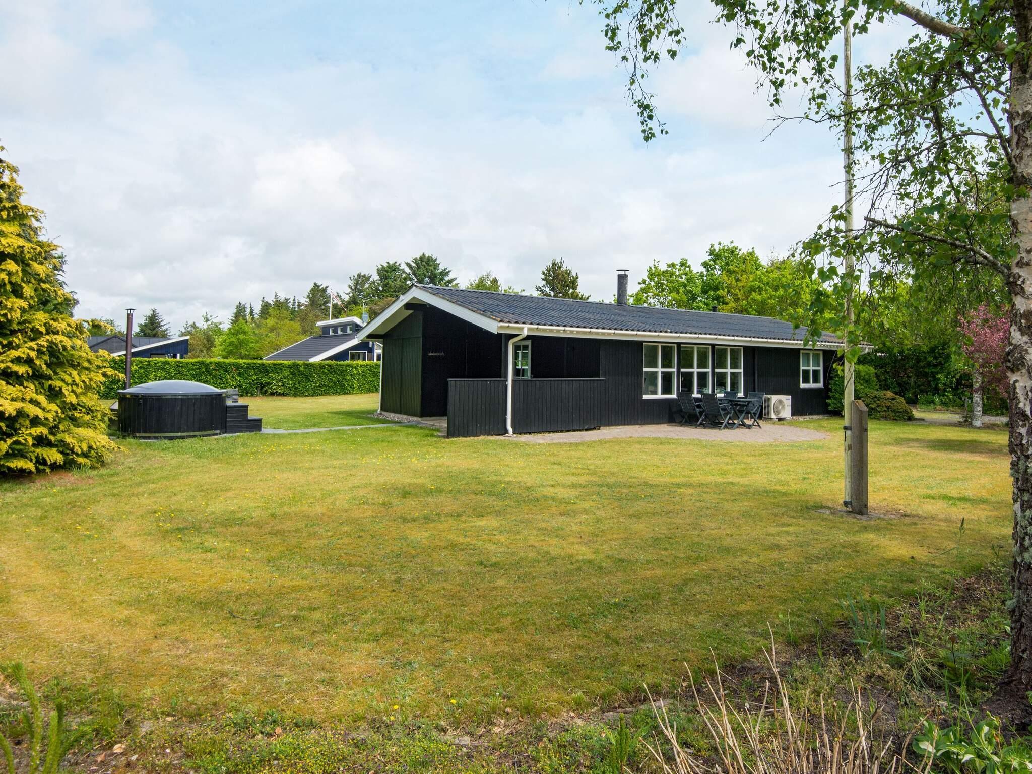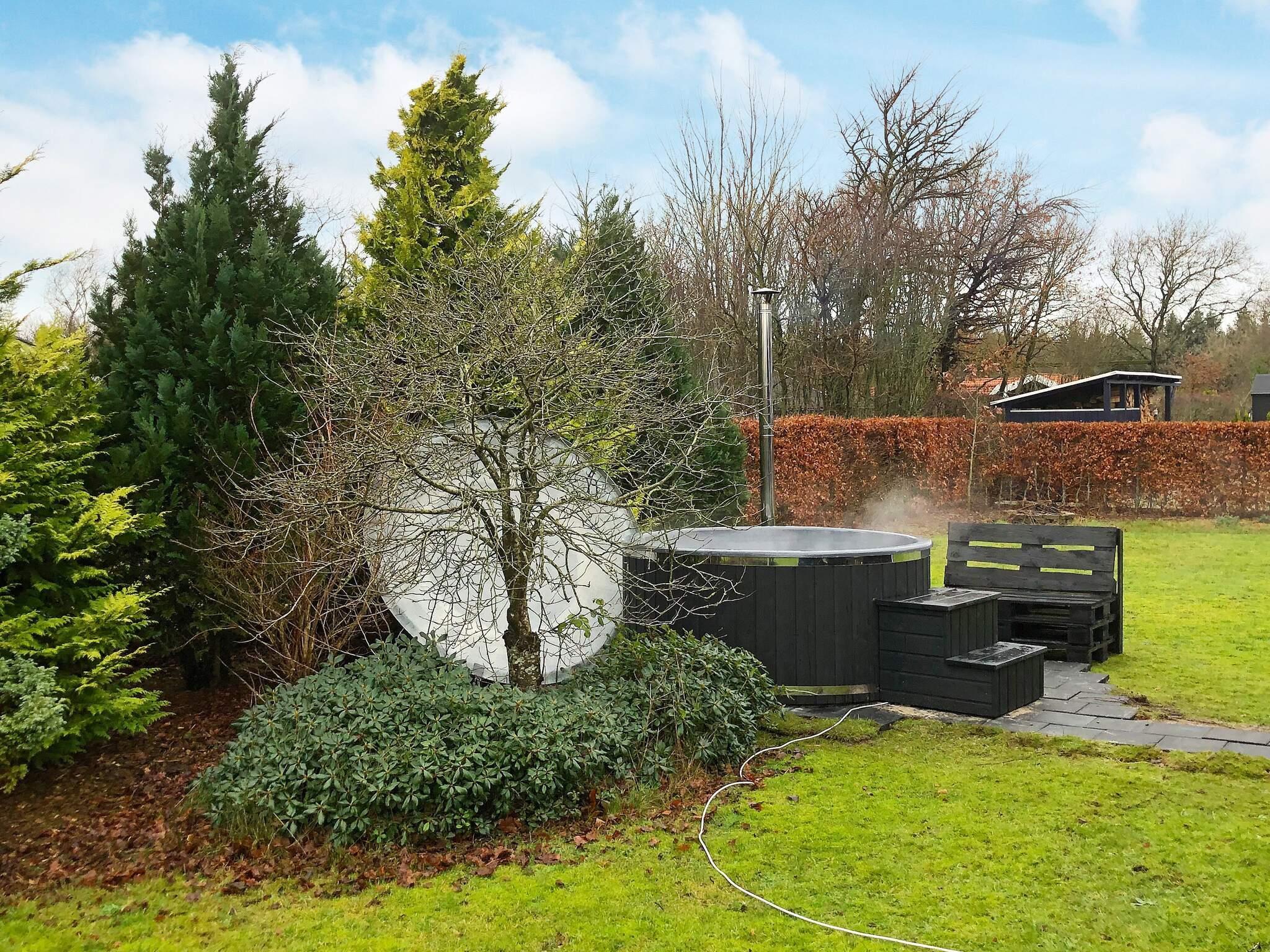 Sommerhuset ligger på en pæn, velholdt grund med græsplæne og terrasse både mod øst, syd og nord. Mod vest er der en overdækket terrasse. I haven er der vildmarksbad med lys og spafunktion/bobler, som kan nydes under åben himmel. Nyd den flotte stjerne himmel, der står klart på vestkysten, hvor der er langt til store byer med lys. Området er ideel til naturelskere. Her er et varieret dyreliv med rådyr, harer, egern og mange fugle.