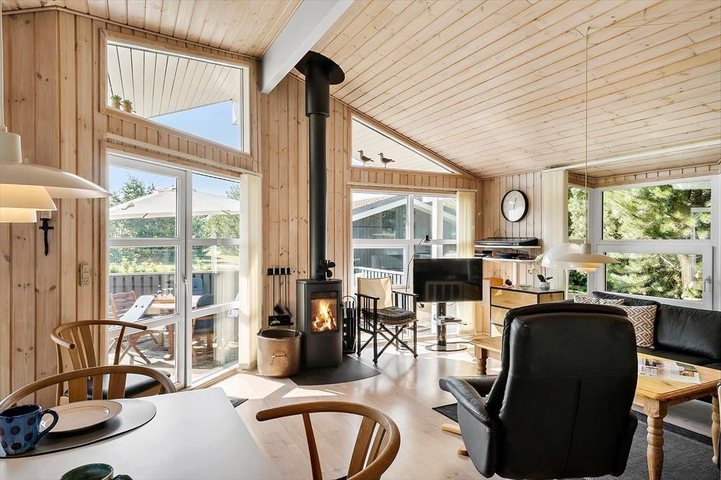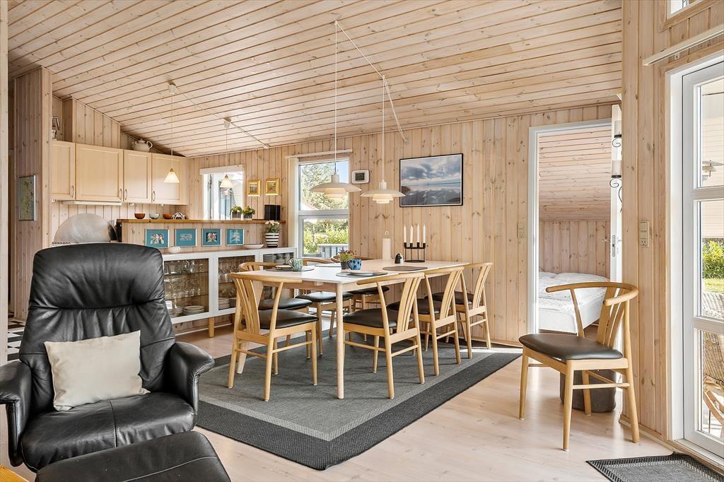 Tag familien med på en uforglemmelig ferie og træd ind i dette lyse og indbydende sommerhus, hvor feriestemningen er i højsædet. Efter en dag fyldt med eventyr og aktiviteter kan I smække benene op i den komfortable sofa, nyde en kold forfriskning eller varme jer med en lækker kop drik. Ønsker I at forkæle jer selv endnu mere, kan I tage et afslappende dyp i det lækre spabad, hvor de varme bobler omfavner kroppen og løsner op for hverdagens stress. For ekstra hygge og varme kan I også slappe af i saunaen og lade ferien virkelig træde i kraft.