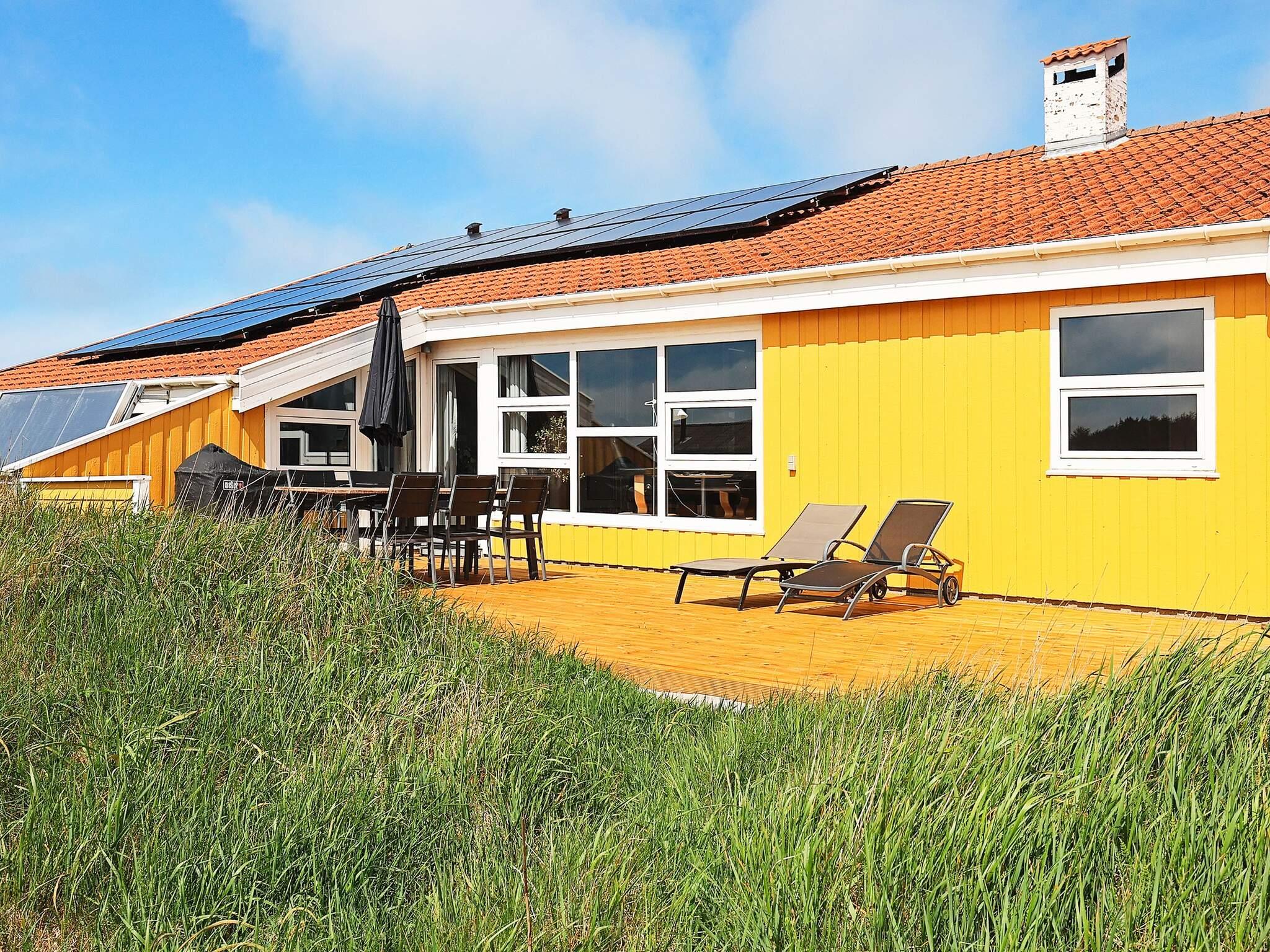 Superferie i et lavenergihus udstyret med solfanger og varmepumpe. Fra bænken på grunden er der flot panoramaudsigt over havet. I stuen kan I nyde udsigten over området og skimte havet. Det 200 m² store hus, der ligger på en 2600 m² naturgrund tæt på vandet, byder på luksus på højeste plan. Udlejes ikke til ungdomsgrupper.