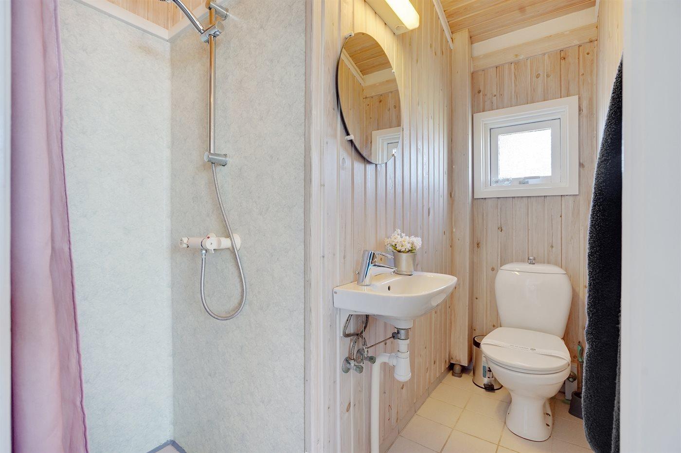 Ferieboligen er beliggende på en 1550 m² stor naturgrund. Der er 500 m til havet. Nærmeste forretning er beliggende i en afstand af 1100 m. Til ferieboligen hører 50 m² terrasseareal. Heraf i alt 50 m² lukket terrasse. Der er redskabsrum. Gynge. Grill til rådighed. Parkering ved ferieboligen.