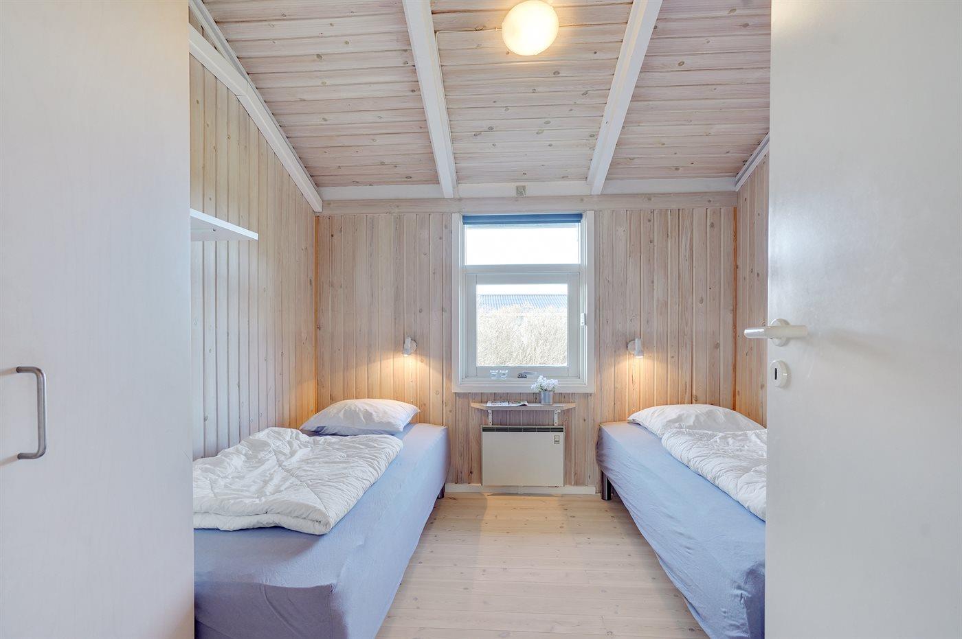 På en dejlig grund for enden af blind vej ligger dette rummelige sommerhus med flot udsigt til indlandsklitterne. Huset ligger i et området med mange naturoplevelser, og er man til aktiviteter, så ligger der et stort, tropisk badeland/aktivitetscenter ca. 900 meter fra huset. Huset er indrettet med hems, og der er mulighed for børnehegn ved brændeovnen. Swimmingpoolen i huset opvarmes af en energibesparende varmepumpe.