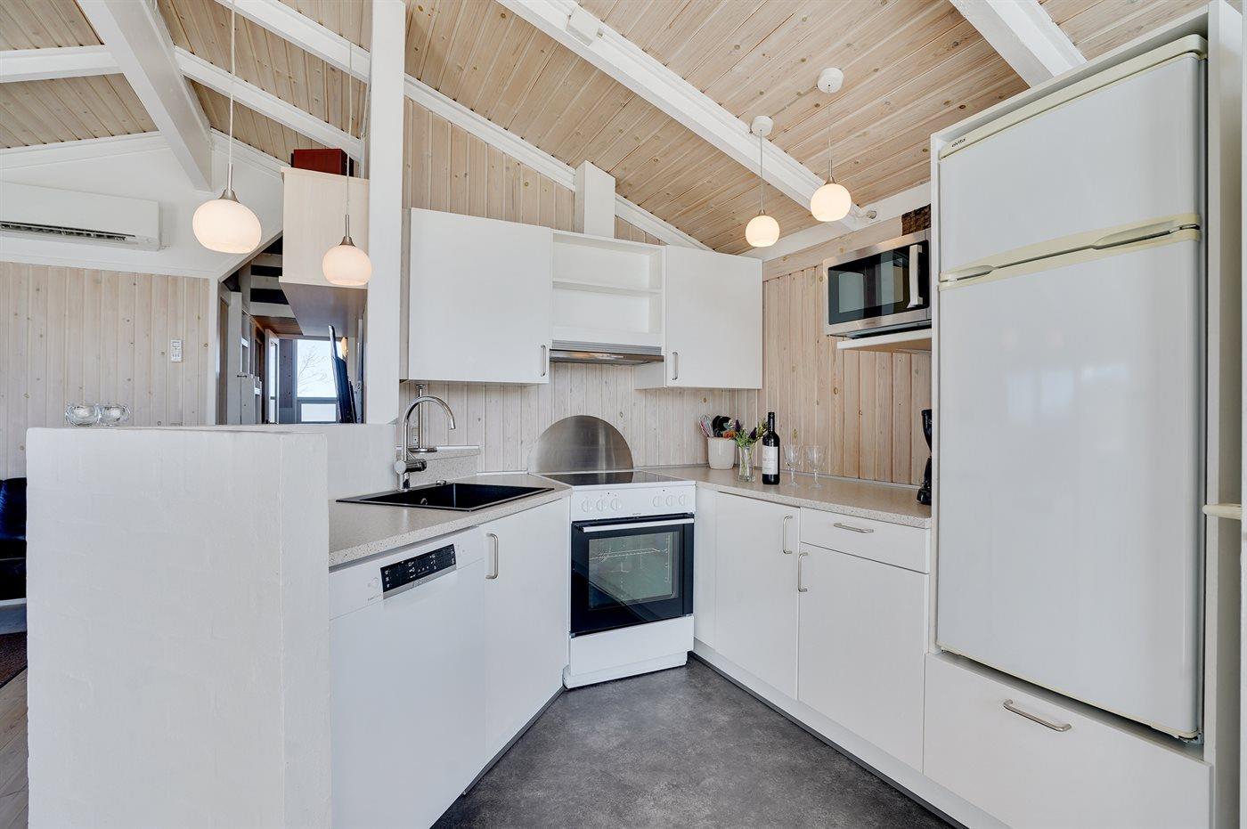 Køkkenet er udstyret med 1 køleskab. Der er 4 keramiske kogeplader, varmluftovn, mikrobølgeovn samt opvaskemaskine.