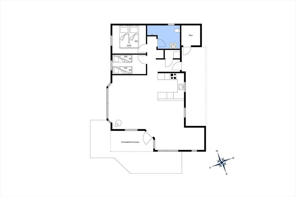 Atmosfæren er lys og rar i alle rum – ikke mindst i stuen, der er udstyret med store vinduespartier, så både solen og naturomgivelserne inviteres indenfor. På klassisk sommerhusmanér er der loft til kip og lys træbeklædning på væggene, og en brændeovn er placeret strategisk lige ved sofaafdelingen, så afslapningsstunderne kan foregå med frit udsyn til flammerne. Et pænt køkken ligger i åben forbindelse med stuen, og så er der for øvrigt en alkove i rummet, hvor I kan fordybe jer i dagens avis, få en middagslur eller ligefrem overnatte. Derudover er der mulighed for at sove på husets to gode værelser, hvoraf det ene er med dobbeltseng og det andet med to enkeltsenge, der kan skubbes sammen til en dobbeltseng. Et badeværelse med bruser og gulvvarme hører også med til planløsningen, og ved entréen er der et lille depotrum med vaskemaskine.