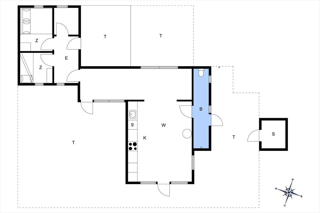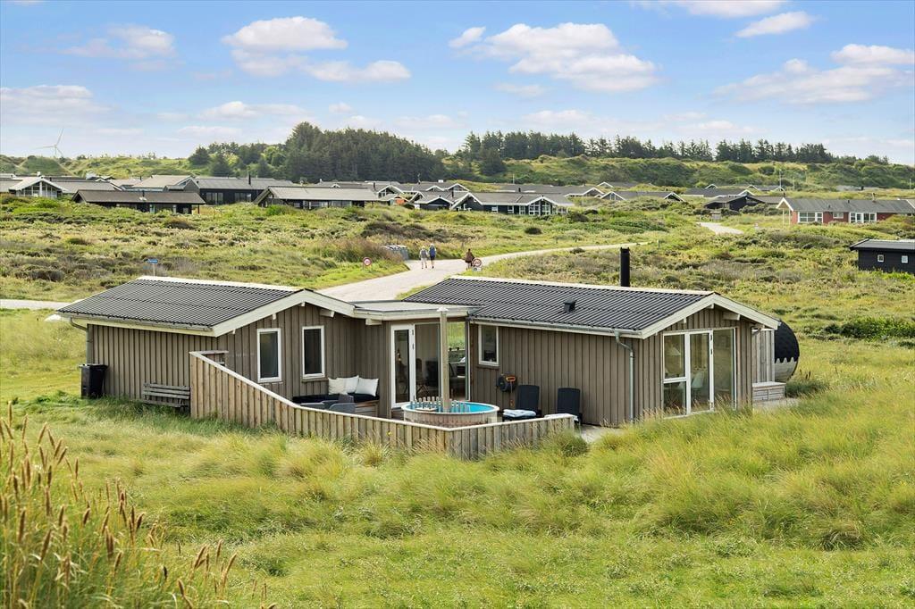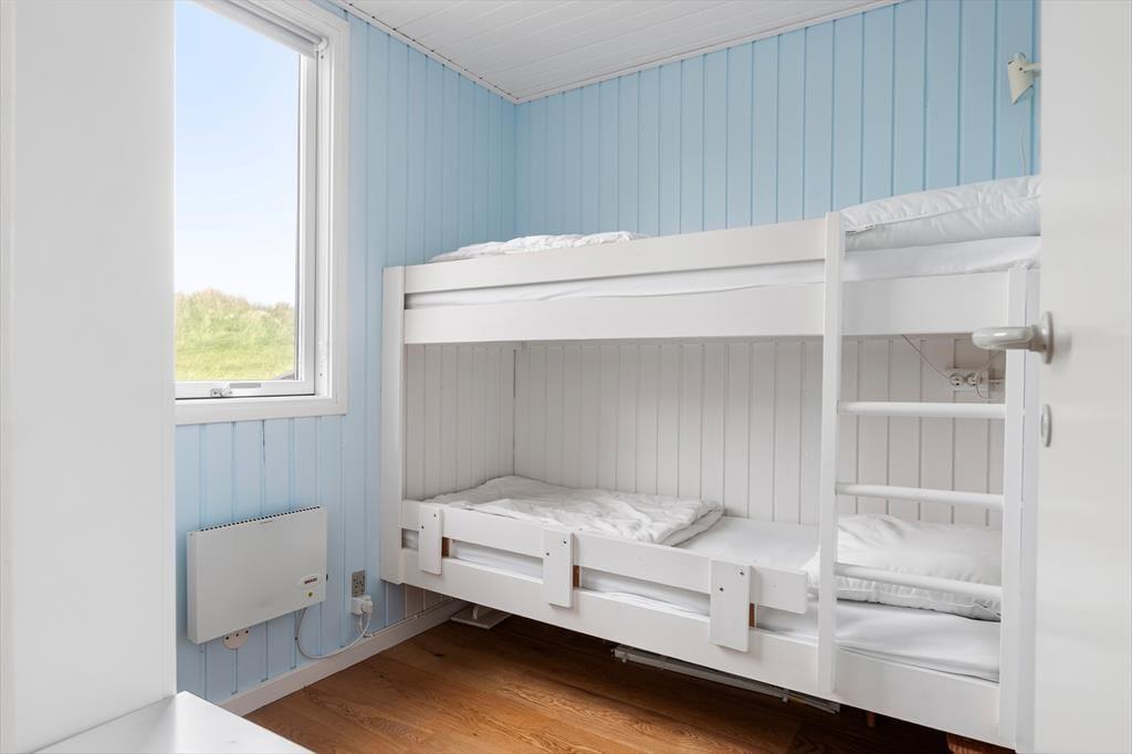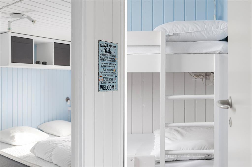 Farvetonerne er lyse, og solen kigger ind gennem husets store vinduer, mens det smukke klitlandskab byder sig til lige udenfor. Omgivelserne er med andre ord med til at skabe en rar og fredfyldt ferieatmosfære, og rummenes pæne og komfortable møblement bidrager ligeledes hertil. Køkkenet har en hyggelig spiseplads og er endda udstyret med en brændeovn til eventuelle kølige aftener, og i stueafdelingen er der rare sofaer og et fladskærms-tv, så underholdningen er sikret. Fra det pæne brusebadeværelse har du direkte adgang til en ugeneret terrasse med sauna, hvis du virkelig skal slappe af, og når det er sengetid, kan du se frem til at sove godt og længe på et af de to værelser. Bemærk, at køjesengene på det ene soveværelse passer bedst til børn, så sommerhuset egner sig godt til en familieferie – eller til nogle dejlige dage med din eneste ene