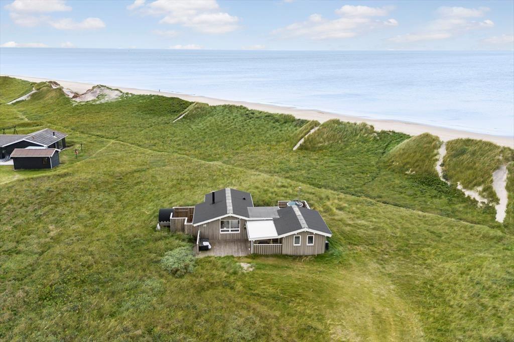 Sommerhusets tøndesauna ligger som del af en helt lukket og ugeneret terrasse, og her er der også udebruser, hvis du vil have et morgenbad i det fri eller få en kold afvaskning efter saunaturen. Vil du fyre op for endnu mere wellness i det fri, venter der et dejligt vildmarksbad på den åbne træterrasse mod nordvest – her kan du slappe af med fri udsigt til klitterne og frisk havluft i næseborene. Der er for øvrigt også en delvist overdækket terrasse på husets sydøstlige side, så alt i alt er det nemt at finde den helt rette opholdsplads uanset tidspunktet på dagen.