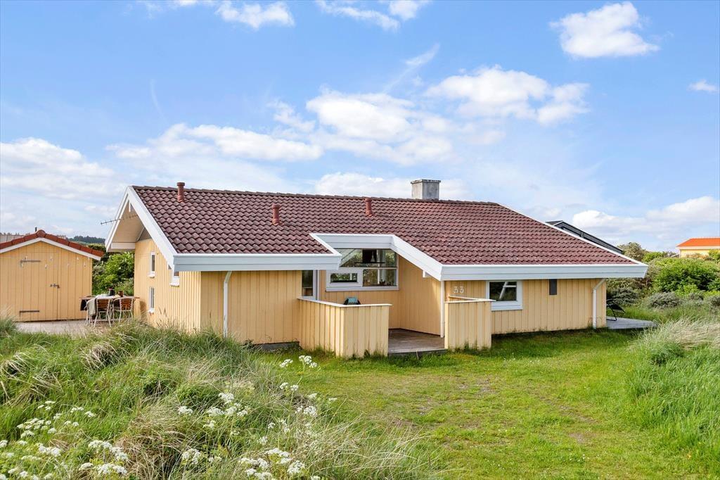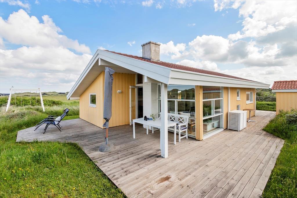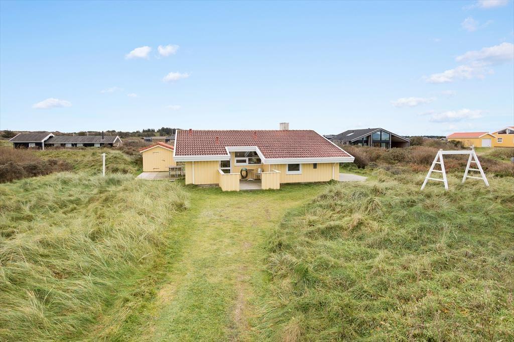 Rundt om sommerhuset venter der flere dejlige solkroge og opholdspladser på terrasserne, så det er nemt at finde det helt rette sted at sidde på alle tider af dagen. Naturgrunden giver dig en skøn og fredfyldt ramme om driverlivet, og mod nord breder det åbne landskab sig, så du kan lade blikket vandre, mens du selv sidder roligt og nyder solen og den friske, salte luft. Om aftenen kan du grille familiens aftensmad, mens børnene gynger og leger på grunden, og når måltidet er spist, kan I blive ude for at nyde den smukke solnedgang over klitterne – hvis ikke I smutter helt ned på stranden for at se den fra første parket.