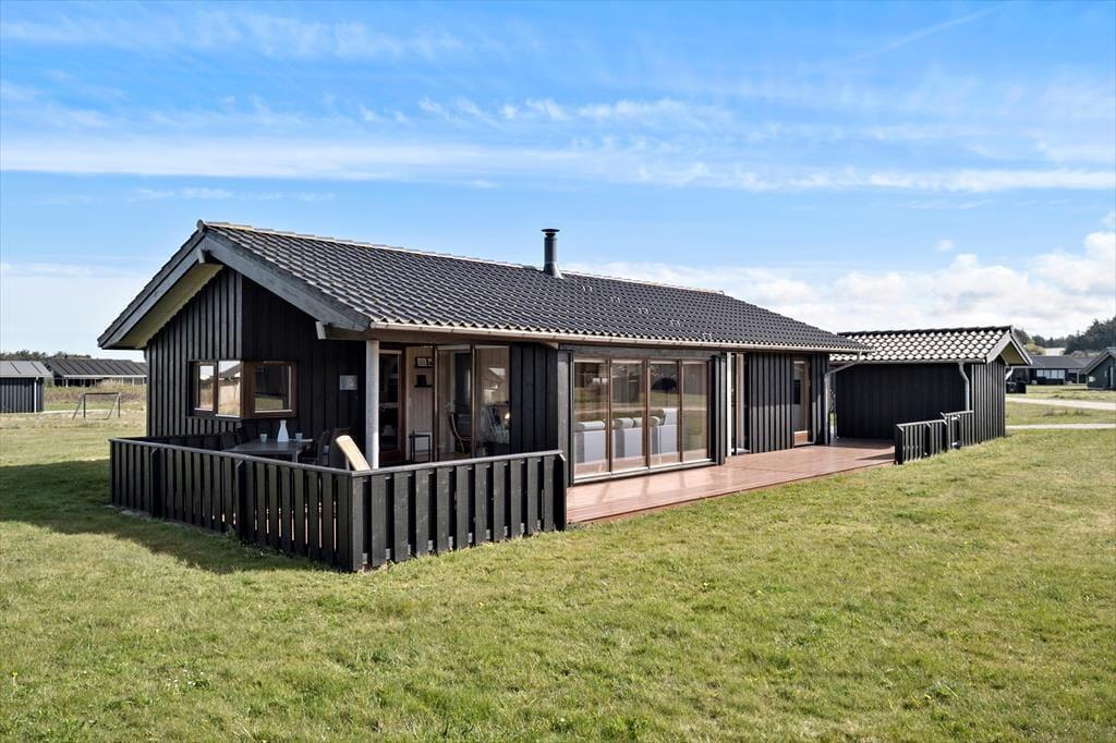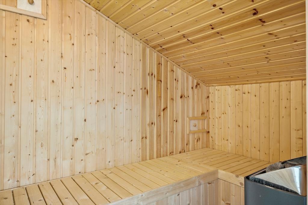 Inden døre i det 94 m2 store kvalitetssommerhus bidrager både små og store detaljer til det gennemført lækre helhedsindtryk – lige fra de flotte trægulve og det nøje udvalgte interiør til loftet, der går helt til kip. De store vinduespartier lukket masser af dagslys ind og sørger for, at I kan se til indlandskrænten, der knejser over det ellers flade kystlandskab. Stue og køkken ligger samlet som et stort og stemningsfuldt opholdsrum, og her har I gode arbejdsforhold, når der skal kokkereres samt dejlige rammer om både middage og sofahygge. De tre soveværelser er alle med gode senge og god skabsplads, og på det største af de to badeværelser er det muligt at slappe af i saunaen og få et velfortjent spabad.
