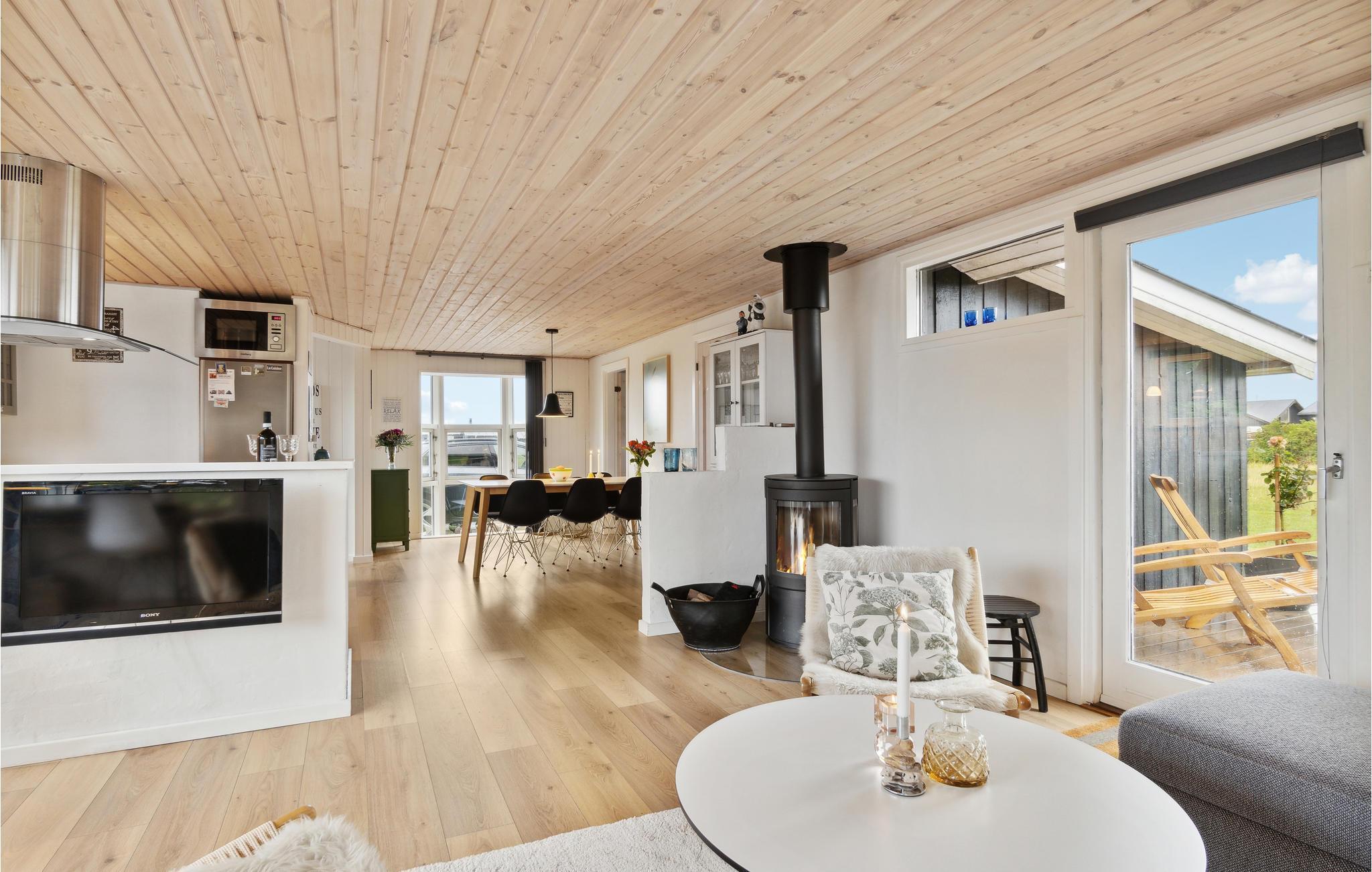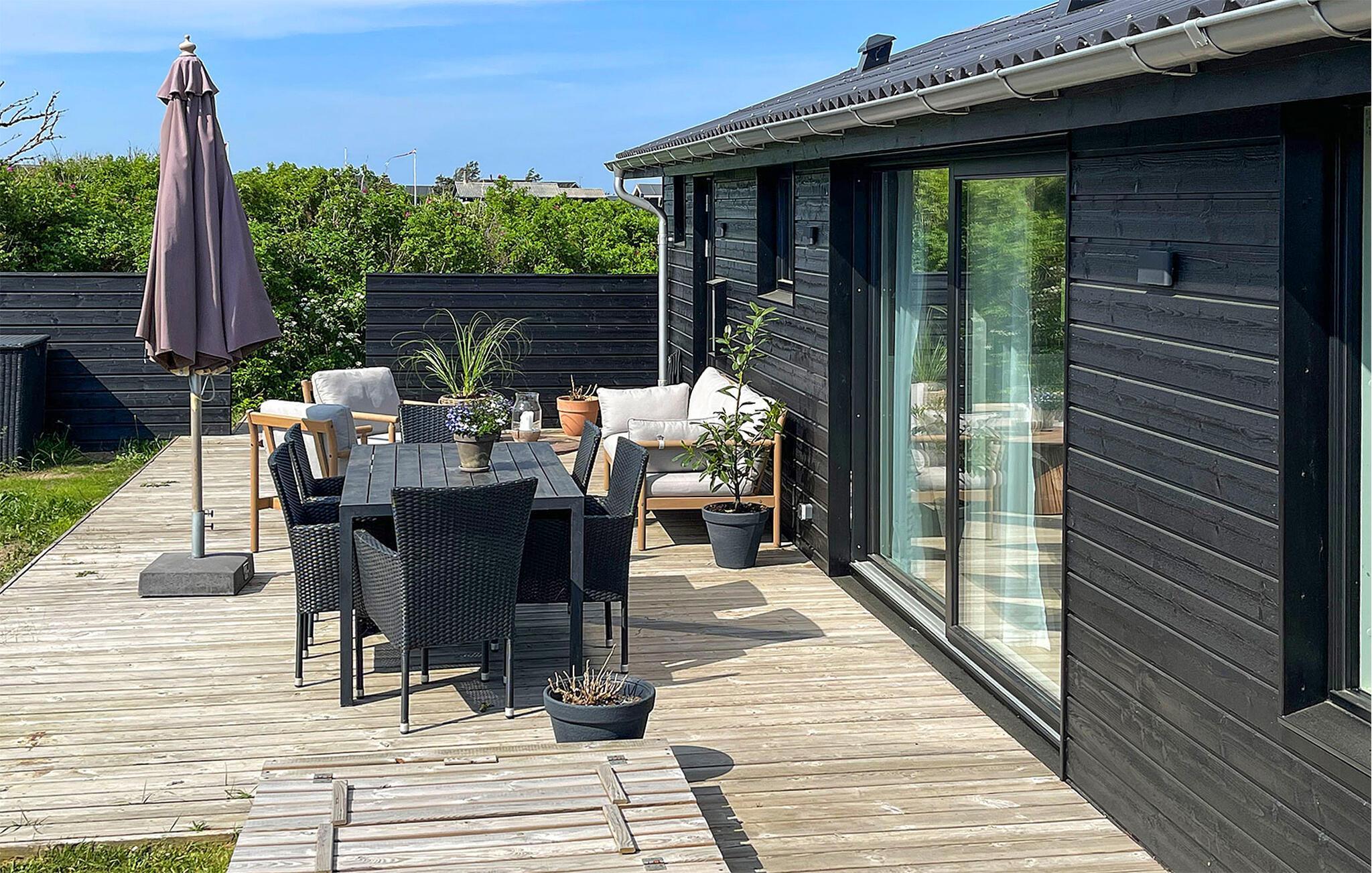 Hyggeligt feriehus i Nørlev med 200 m til Vesterhavet og stor terrasse til afslapning.