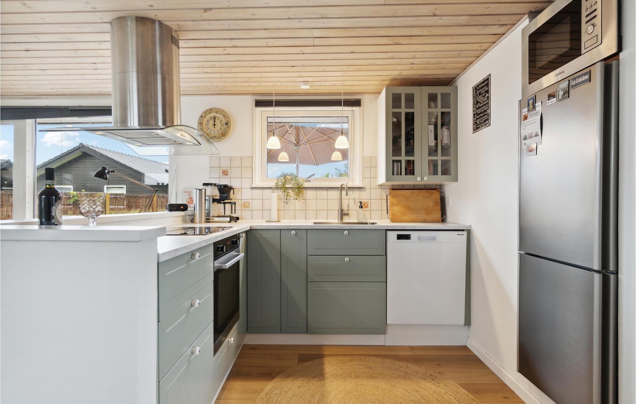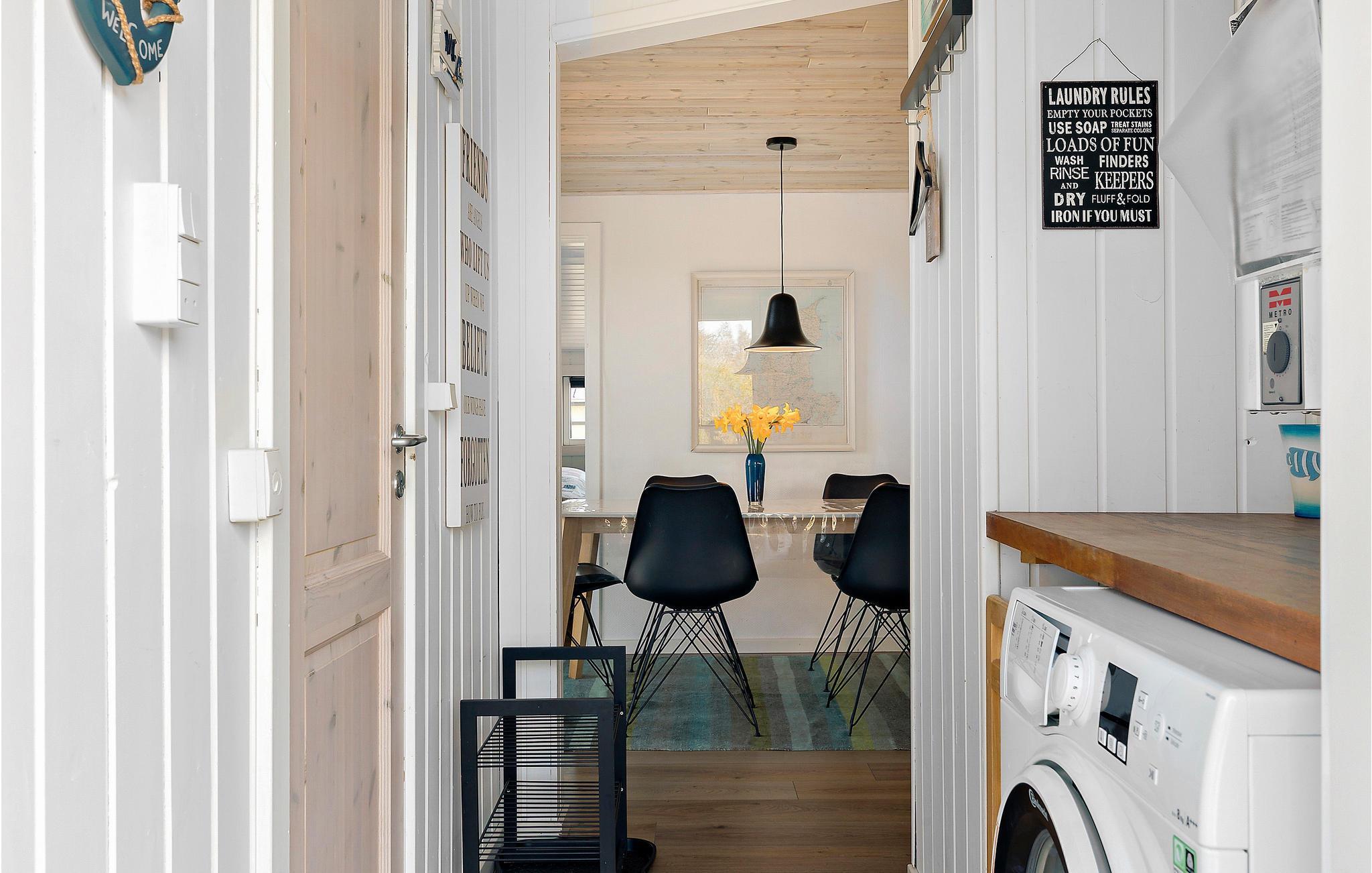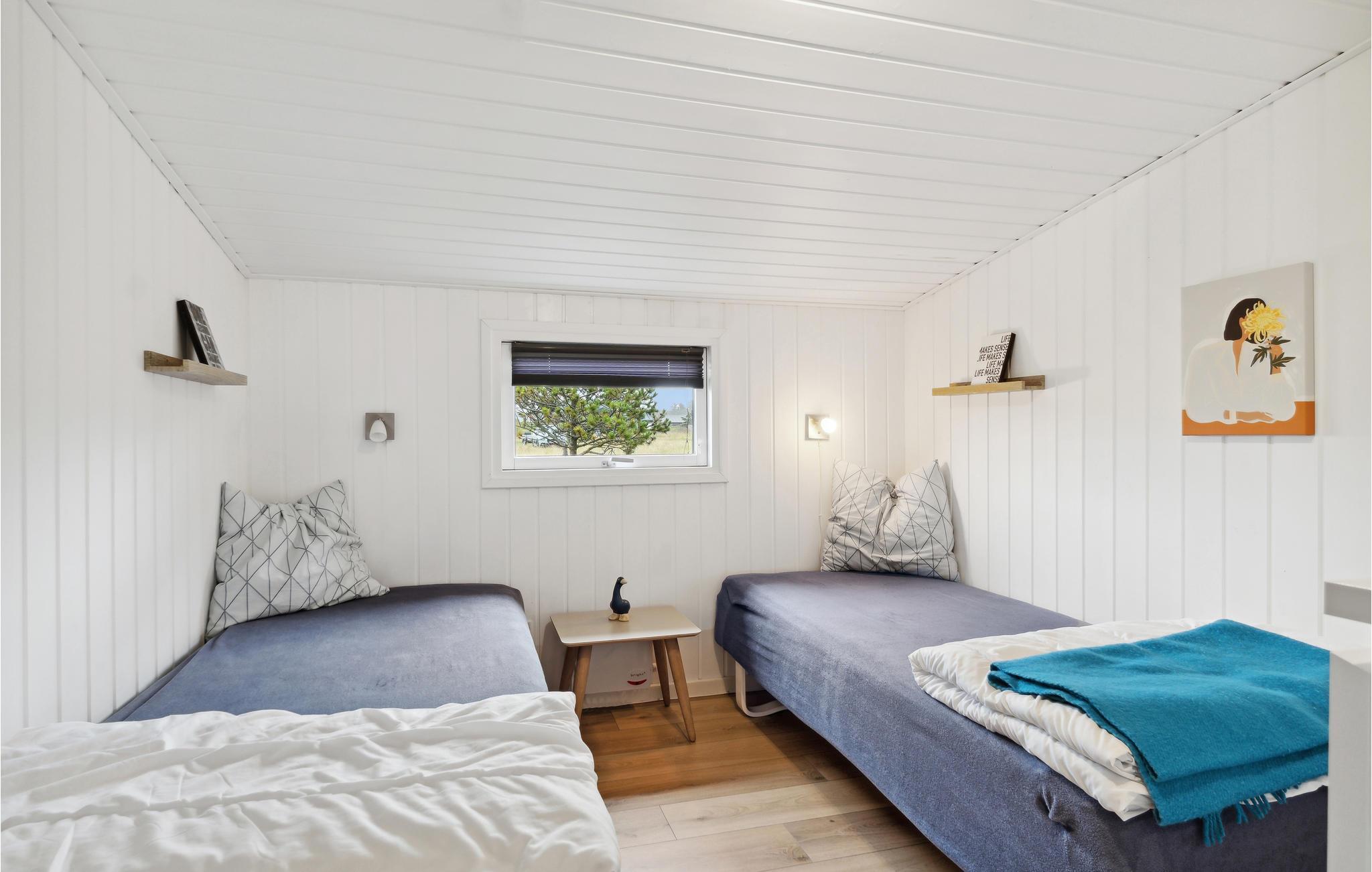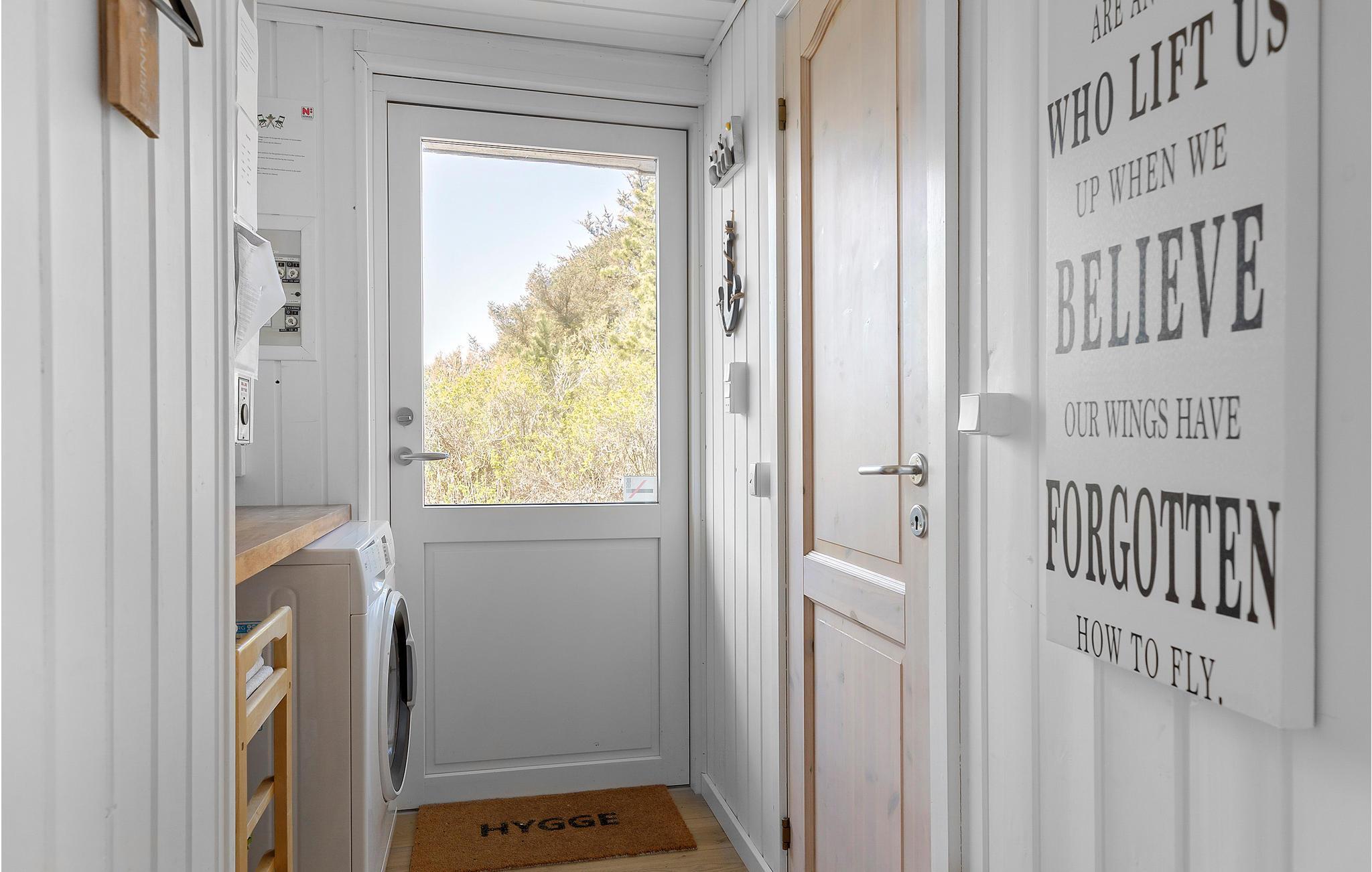 Huset byder på to gode soverum, det ene med dobbeltseng og det andet med to enkeltsenge. De to sidste sovepladser, finder I i stuen på sovesofaen. Dertil er der et lille badeværelse, et åbent køkken ifm. stuen. Strækker du dig på tæer i stuen, kan du skimte havet mod vest.