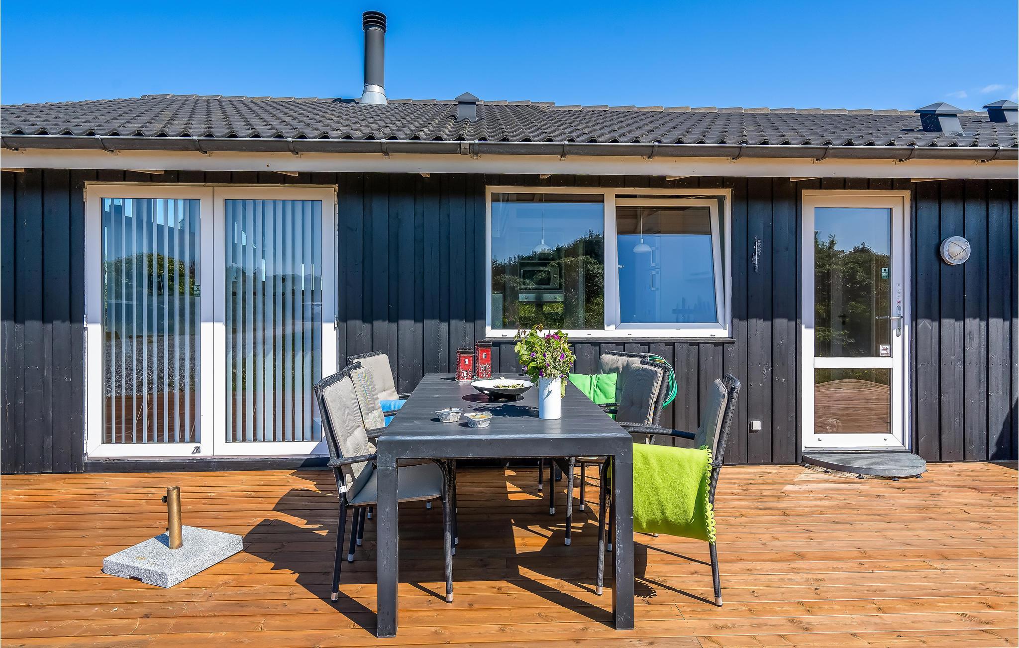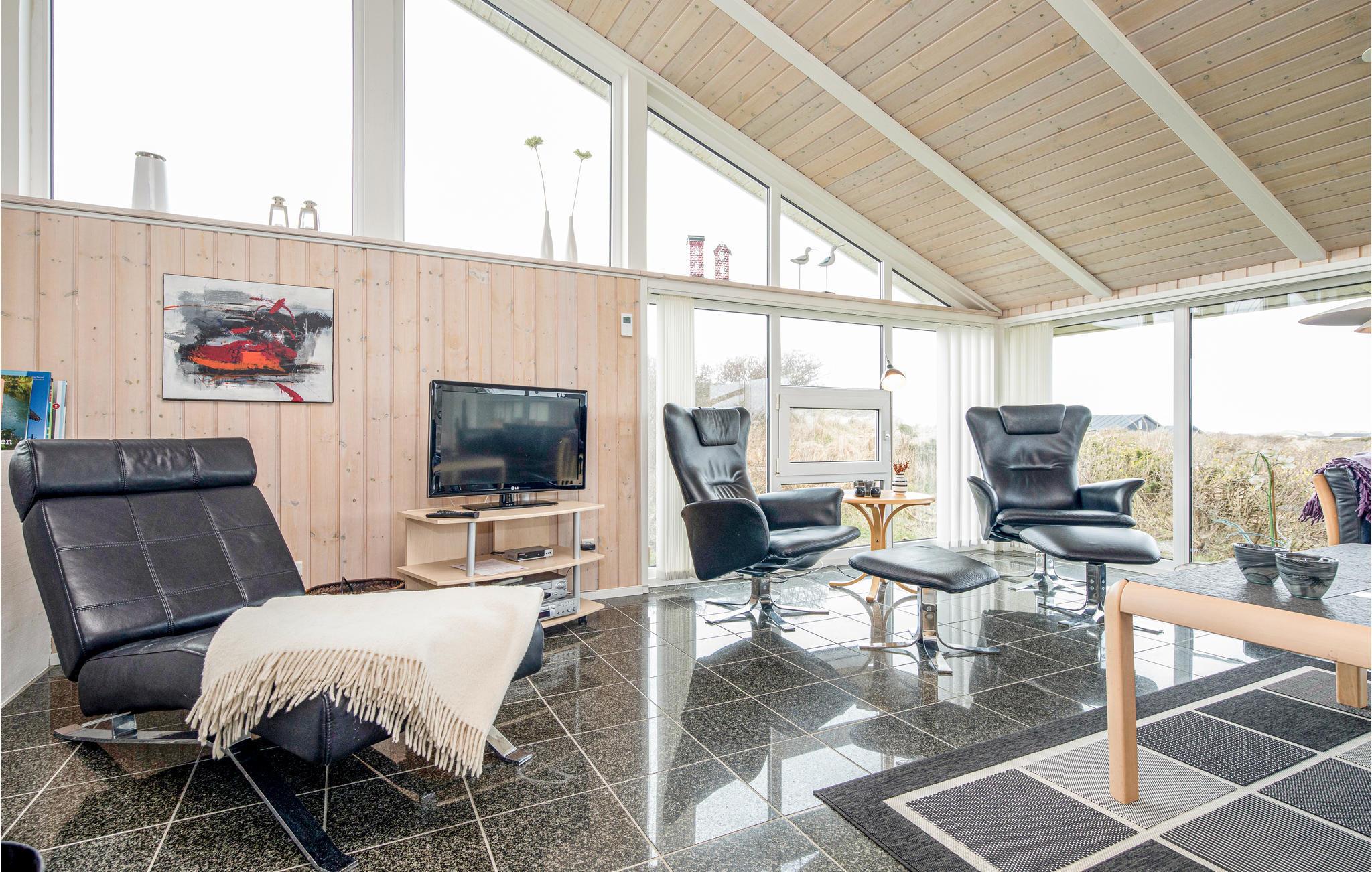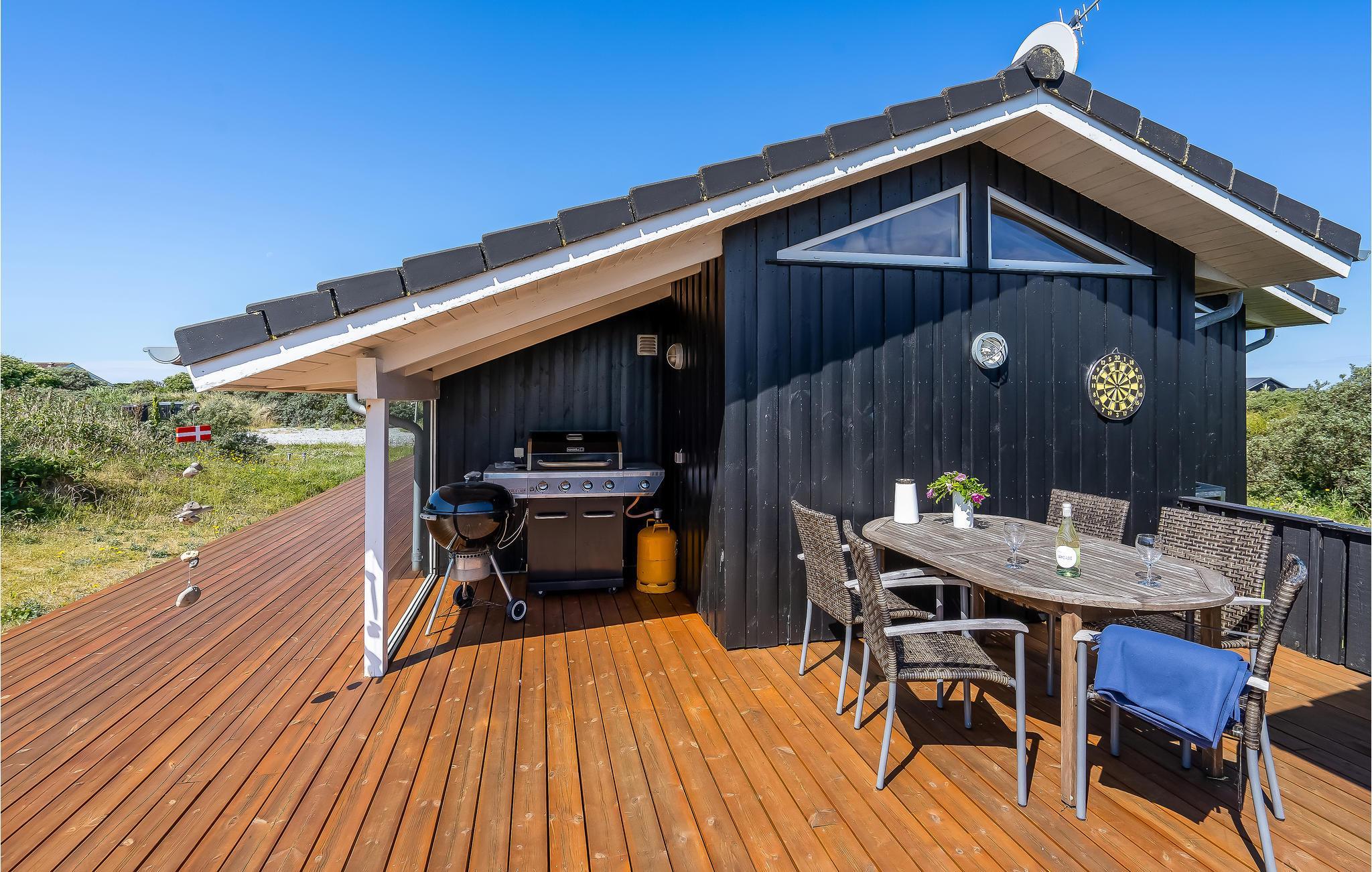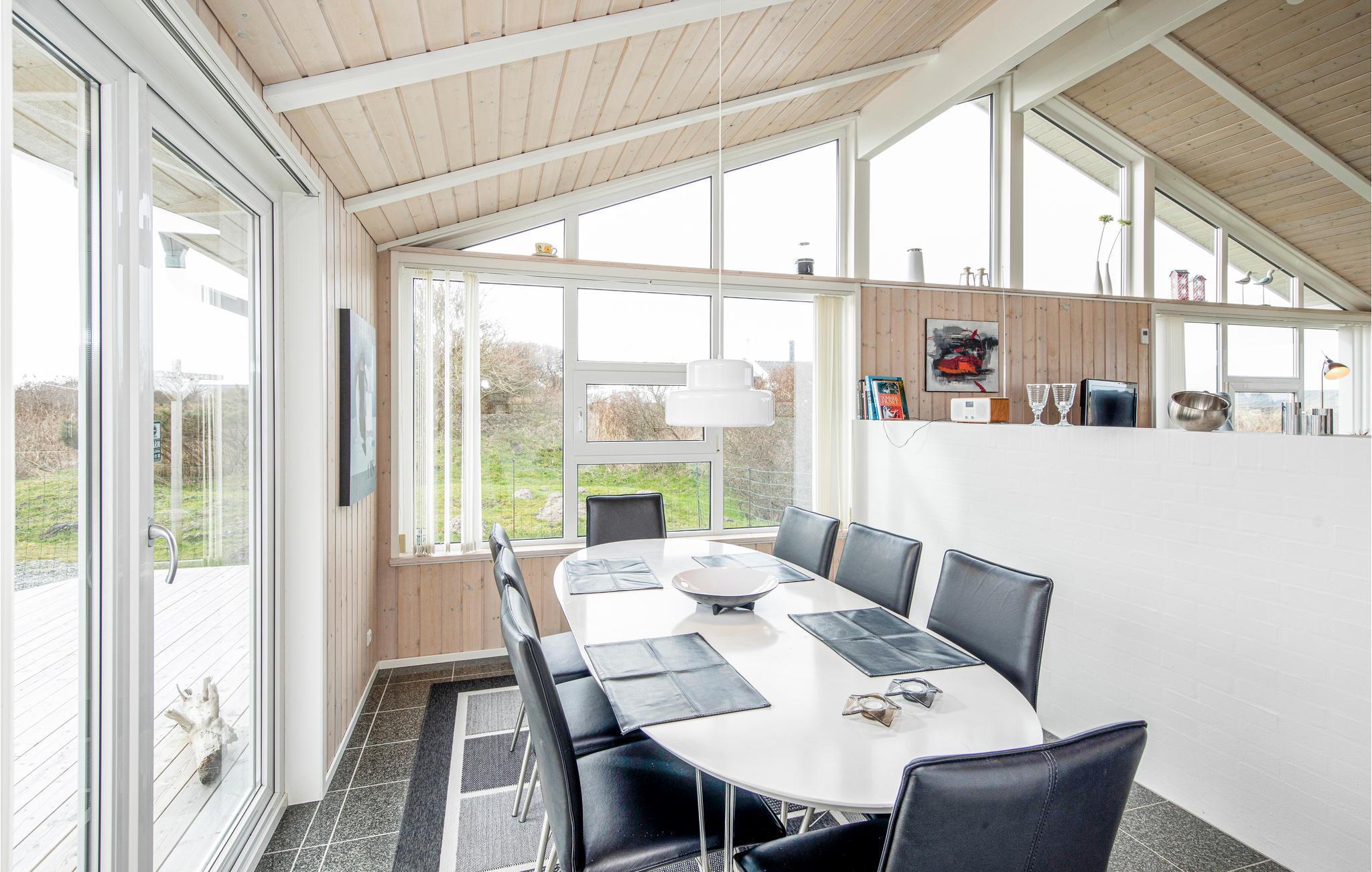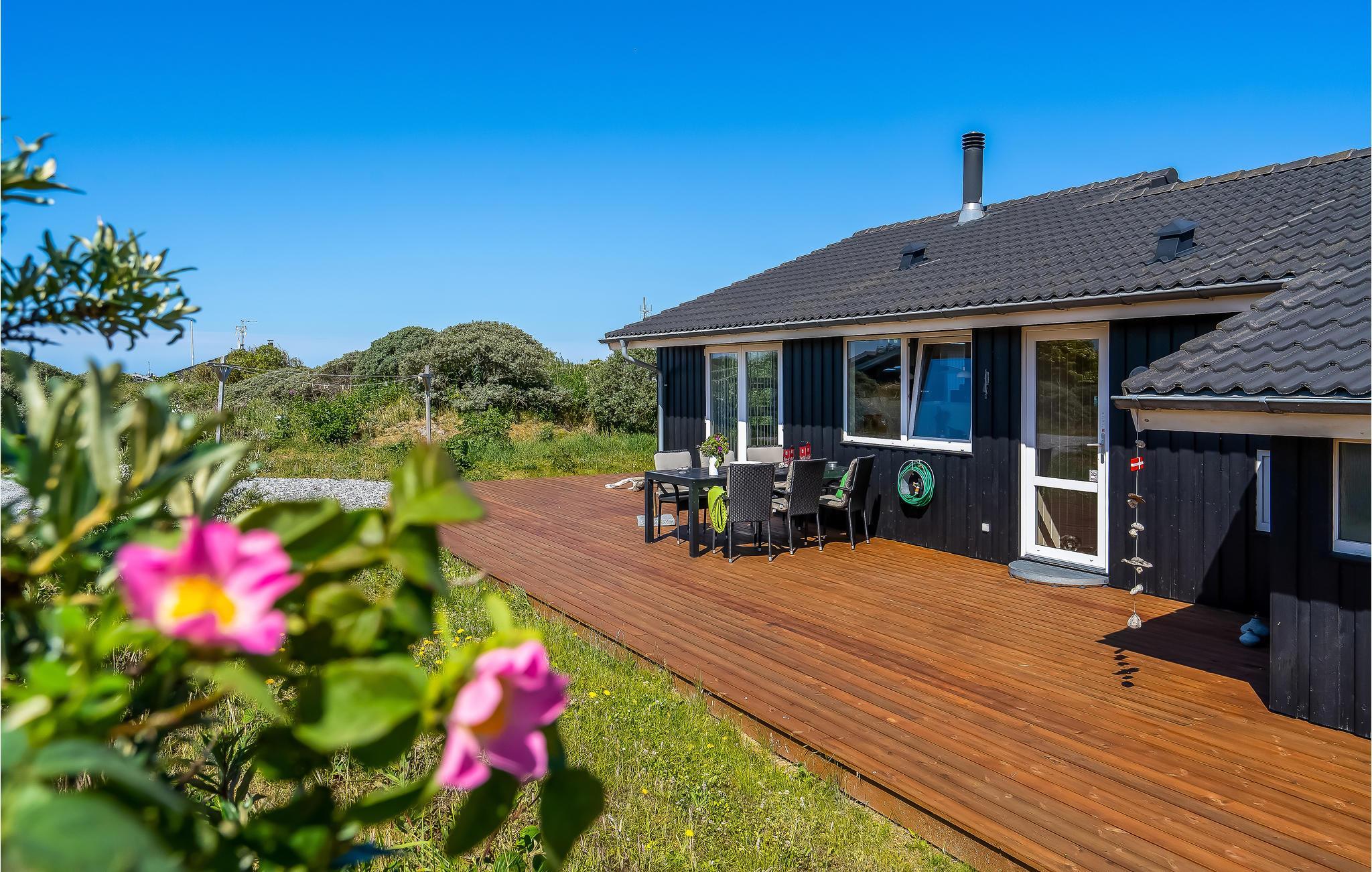 I det pragtfulde Nørlev med den specielle fauna og det kuperede terræn, ligger dette sommerhus få minutters gang fra det skønne Vesterhav. Huset ligger for enden af vejen, så der er ingen forbigående trafik, og ingen tætte naboer, så det ligger pænt ugenert. Huset er opført i gode materialer og stilsikkert. Huset er lækkert indrettet, og har store panoramavinduer i bl.a. den hævede opholdstue, hvorfra I har en flot udsigt. Der er en særskilt spiseafdeling i åben forbindelse med det veludstyrede køkken. Der er store solterrasser mod øst, syd og vest. En virkelig perle for de gæster som søger luksus i ferien. Huset ligger ikke langt fra Skallerup Seaside Resort.