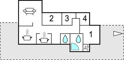 Badeværelse (nr. 1) - WC. Varmt og koldt vand. Bruser