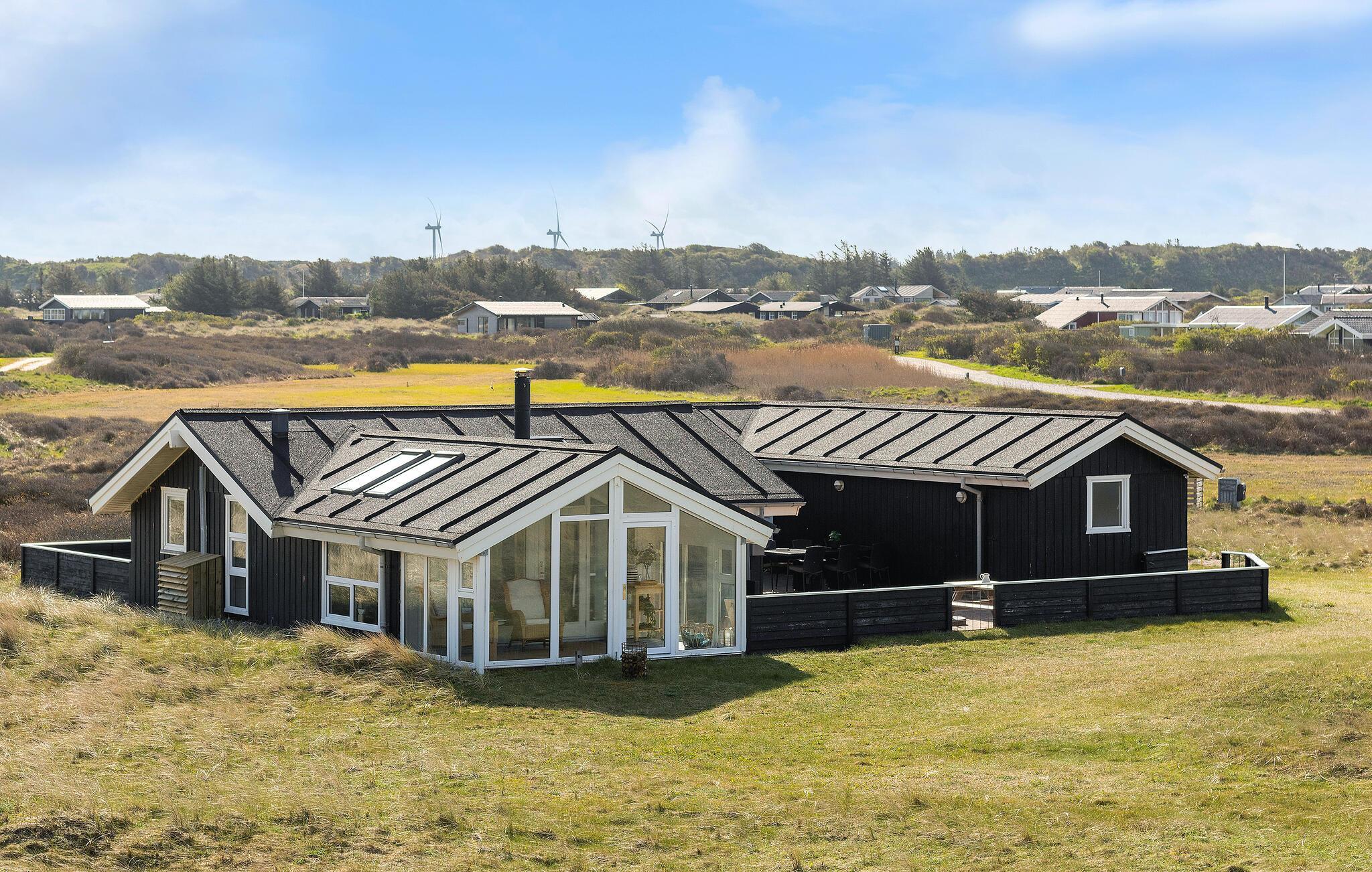 Moderne feriehus ved Nørlev Strand med wellness, udsigt til klitter og kun 80 meter til havet.