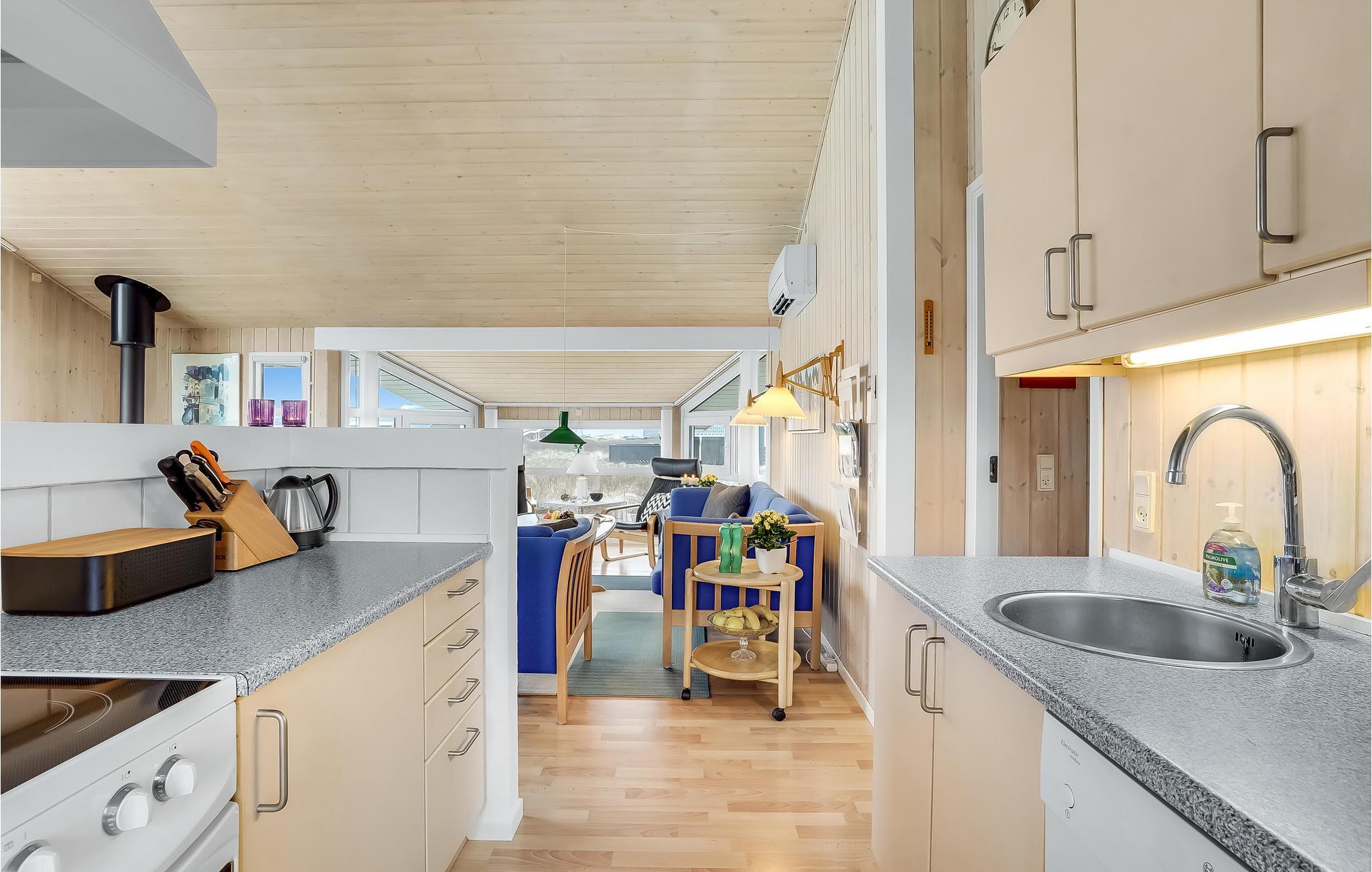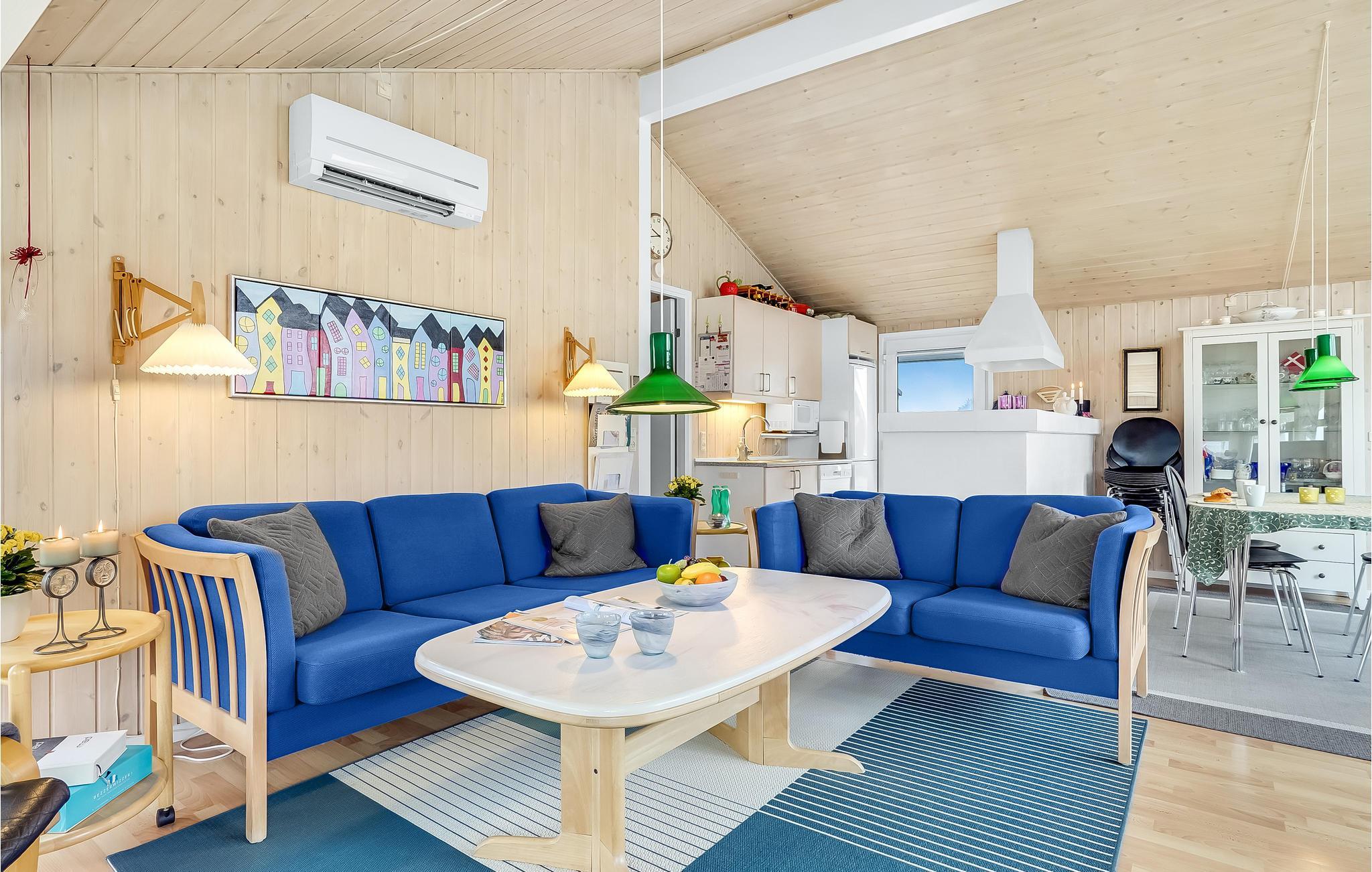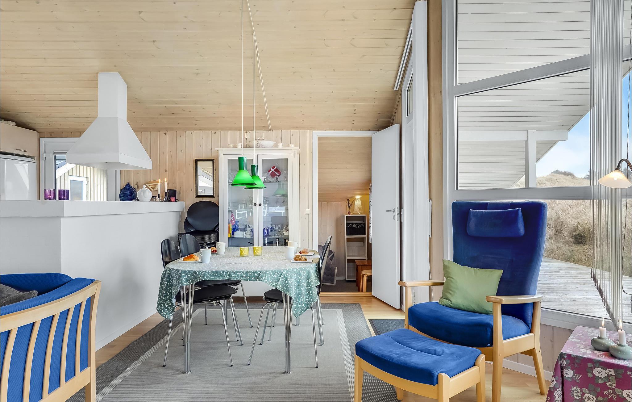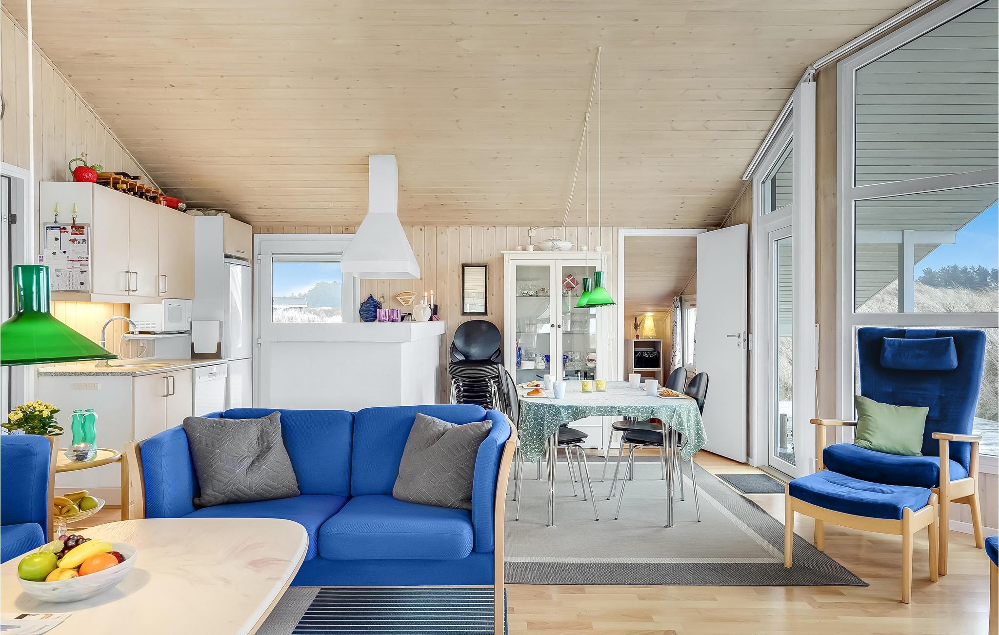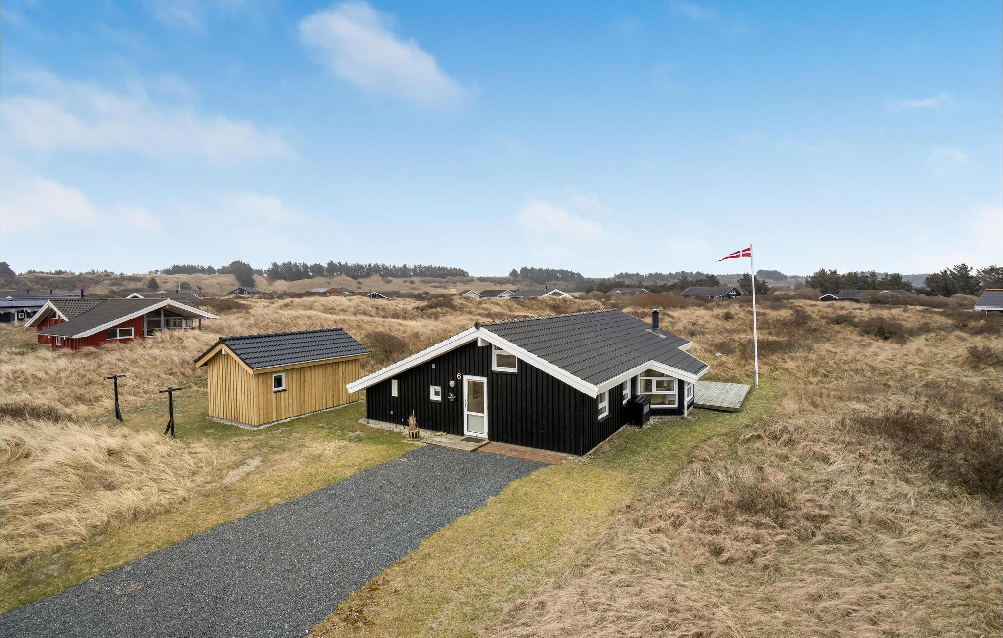 På en skøn klitgrund få minutters gang fra Vesterhavet og sandstranden ligger dette rummelige feriehus. Det er lyst indrettet med en hyggelig opholdsstue med loft til kip, trægulve og dejlige møbler. Det åbne og lyse køkken er fuldt udstyret med hjælpemidler. Udenfor, og med adgang fra stuen ligger en overdækket og åben træterrasse med udsigt til åbne arealer. Ca. 2 km fra huset ligger Skallerup Klit Feriecenter, som blandt andet er indrettet med tropisk vandland, restaurant og indkøbsmuligheder.
