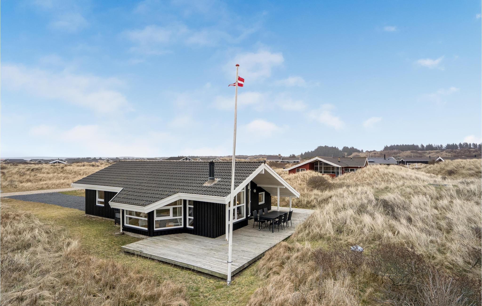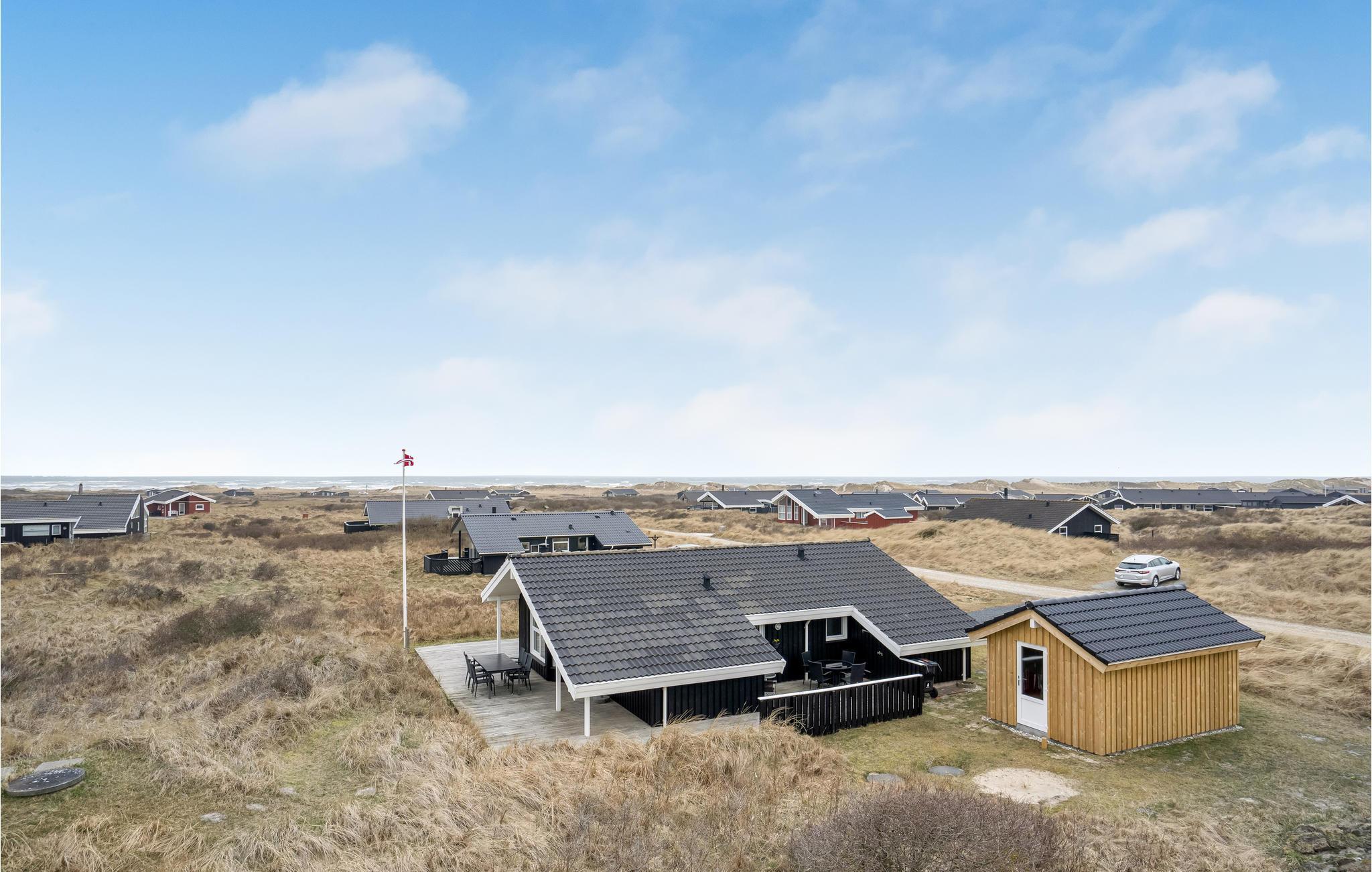 Rummeligt feriehus ved Vesterhavet med sauna, spabad og skøn terrasse på klitgrund.