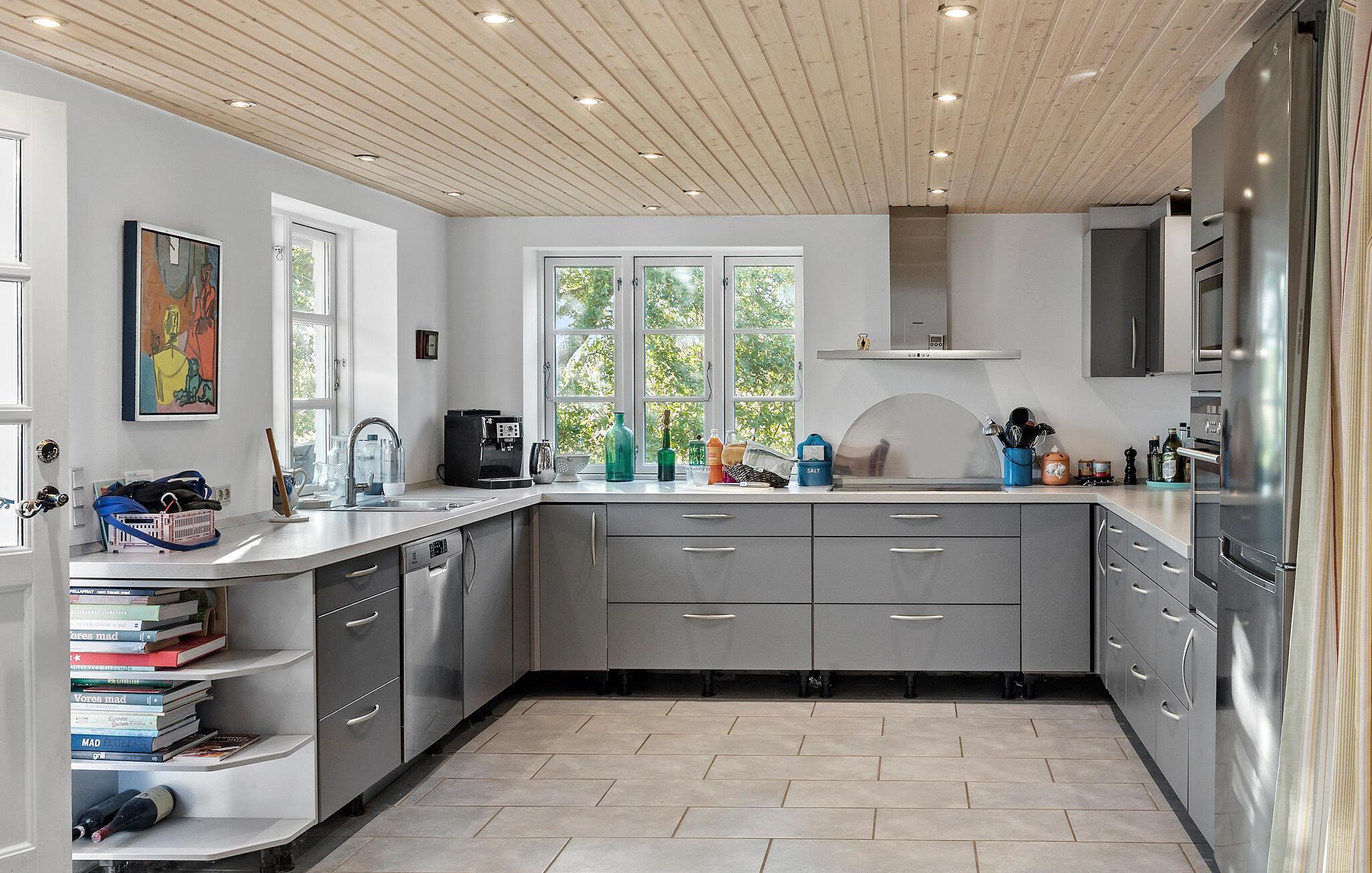 På en lun dag kan I tænde op i grillen og sætte jer ud på terrassen, som er flot indrammet af den grønne have.
