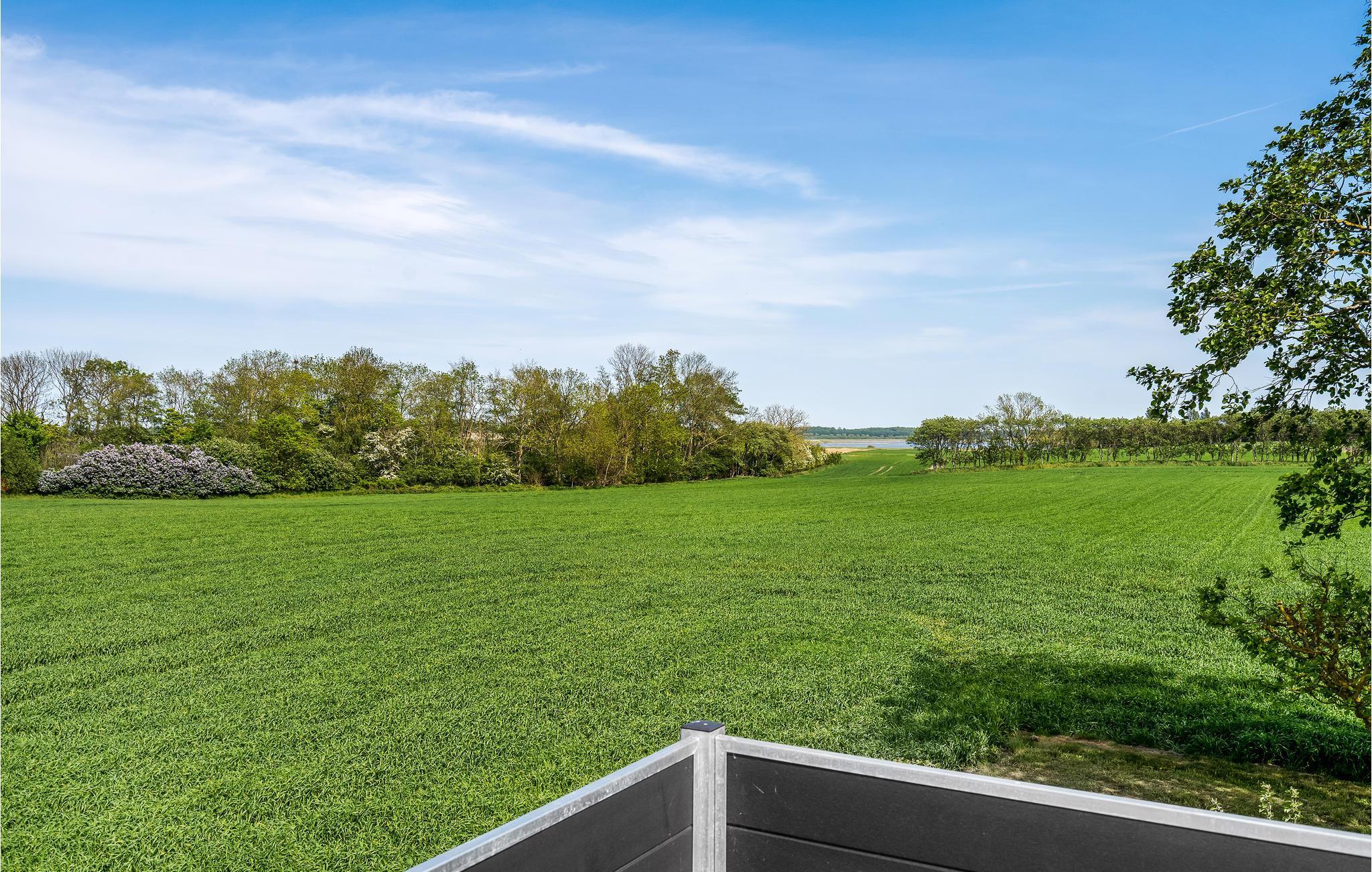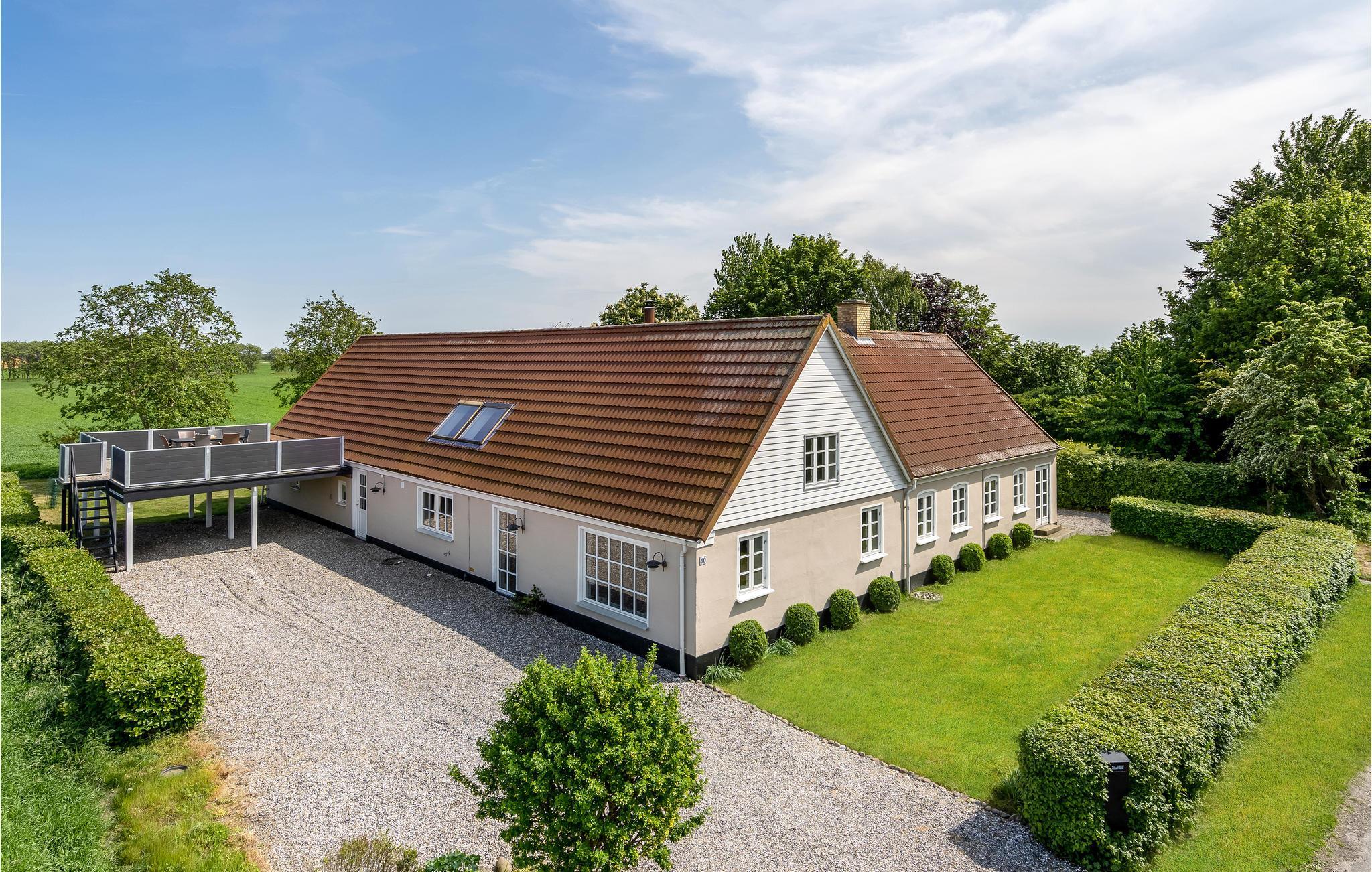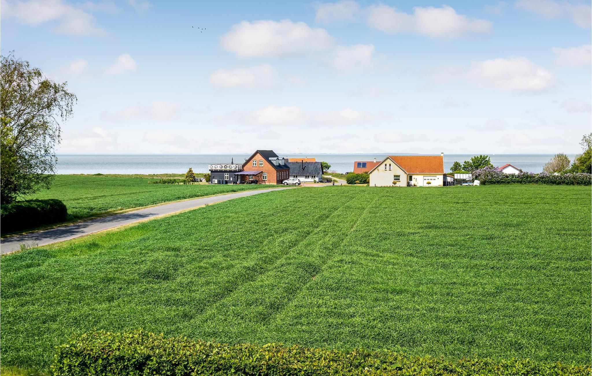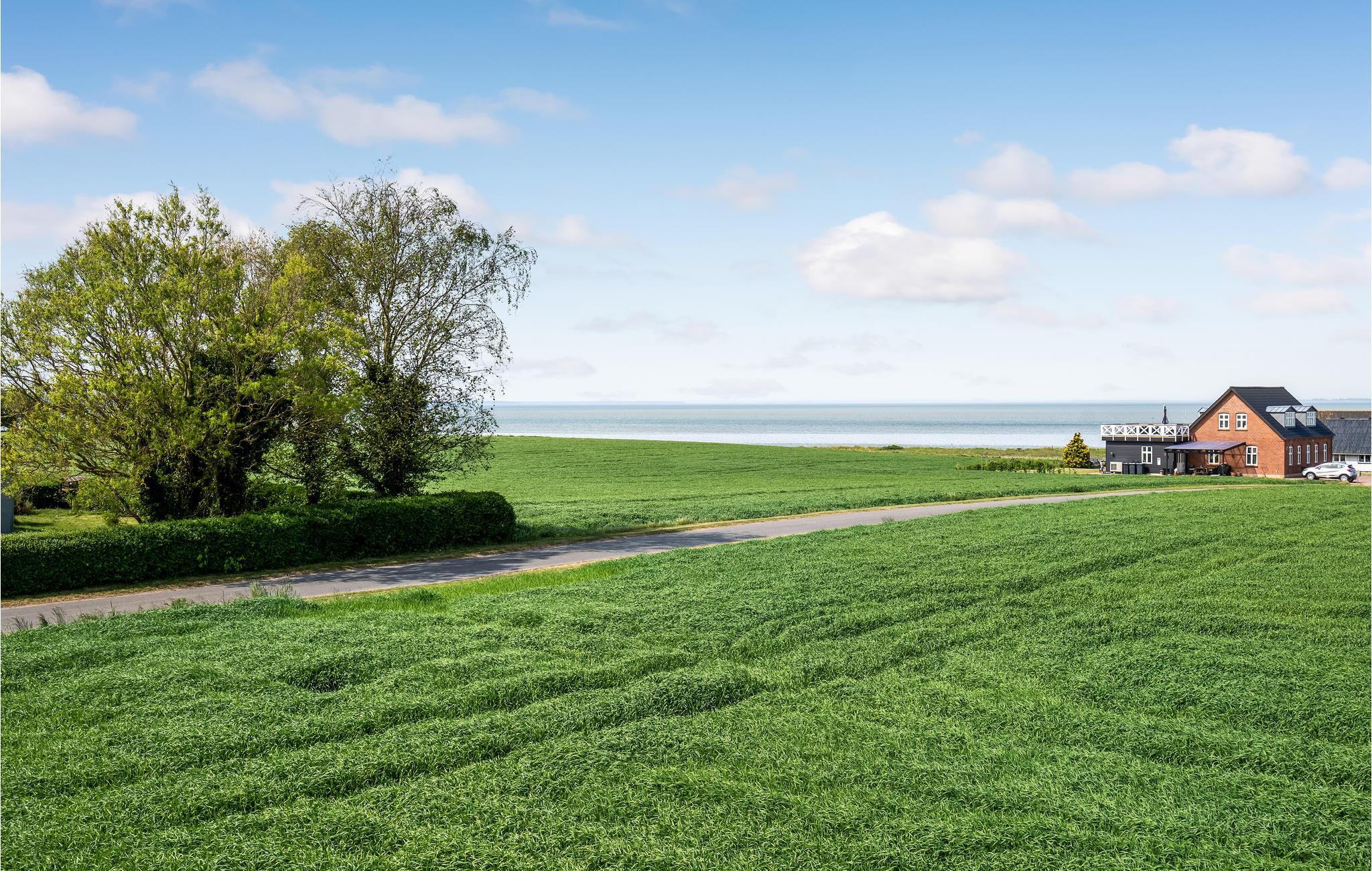 Stort feriehus ved Nørreby Strand med aktivitetsrum og smuk udsigt over landskab og vand.