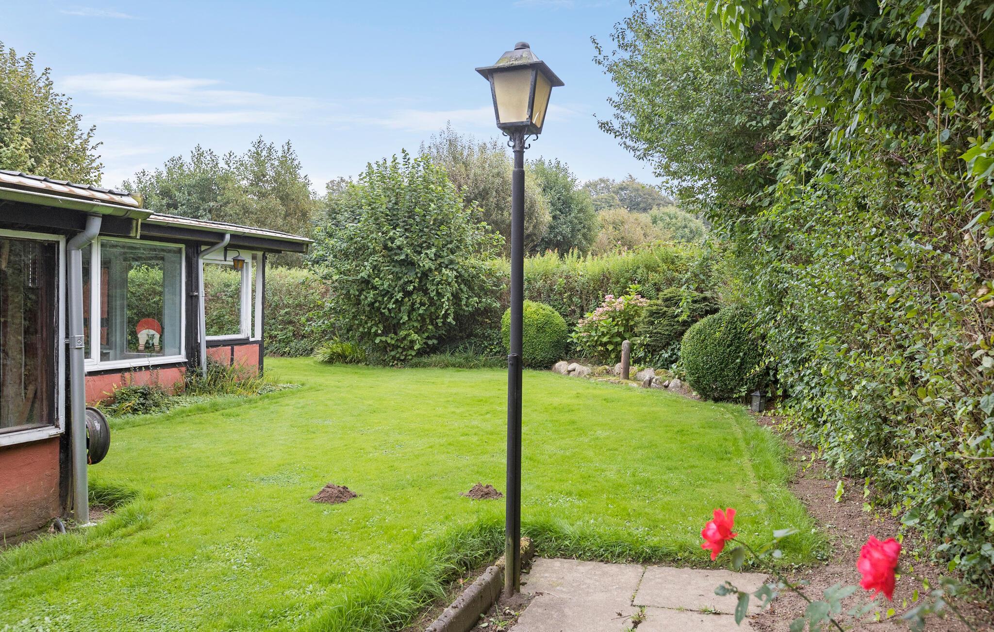 Med til huset hører en flot anlagt have. Her kan børnene snuppe et spil bold på græsplænen, mens I tænder op og gør klar til den store grillmiddag. Trænger I til at slappe ekstra af oven på dagens program, kan I læne jer tilbage i vildmarksbadet, mens aftenen går på hæld.