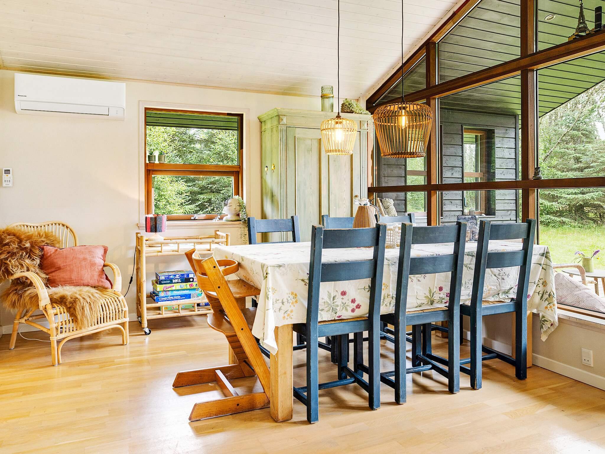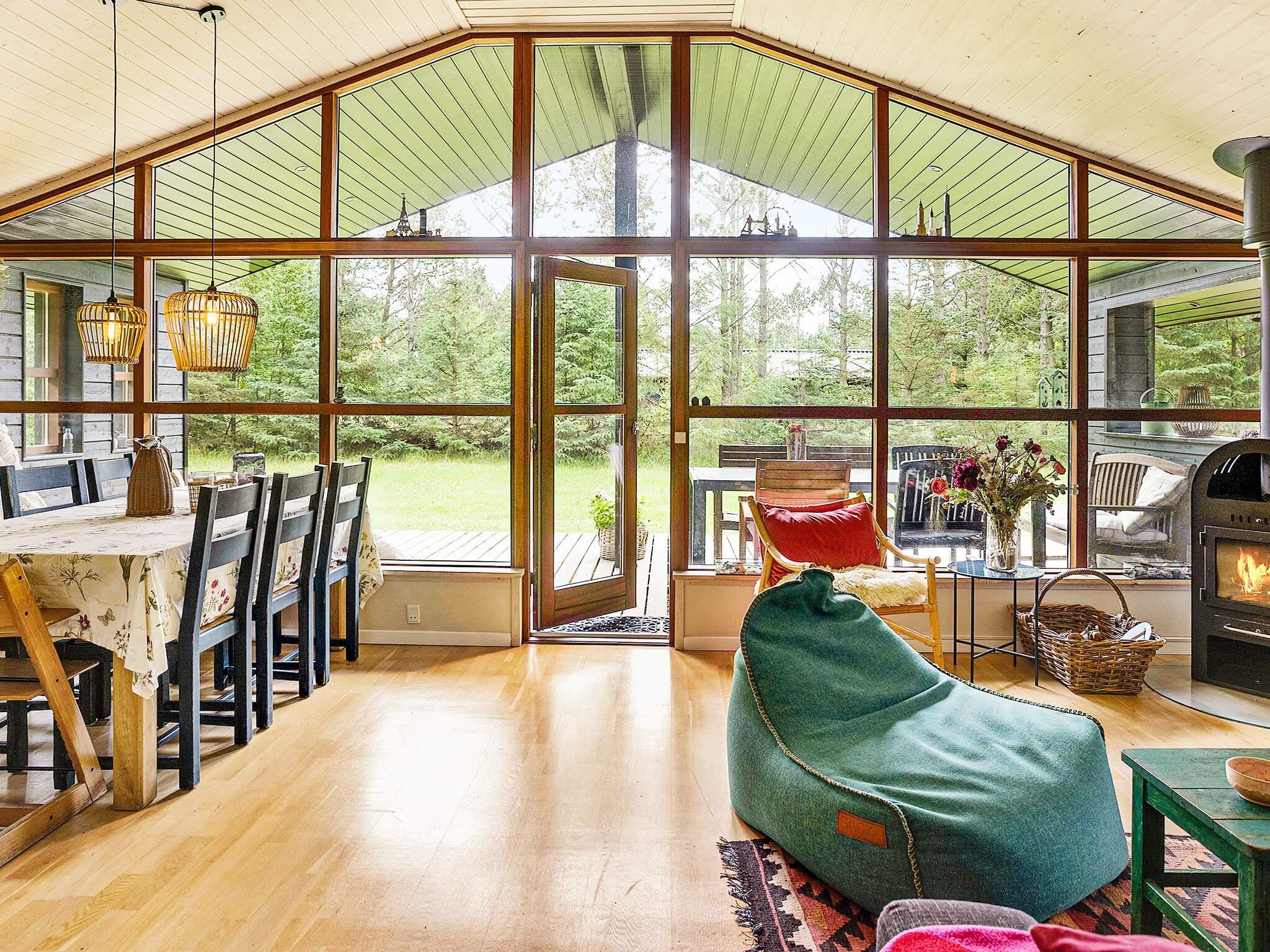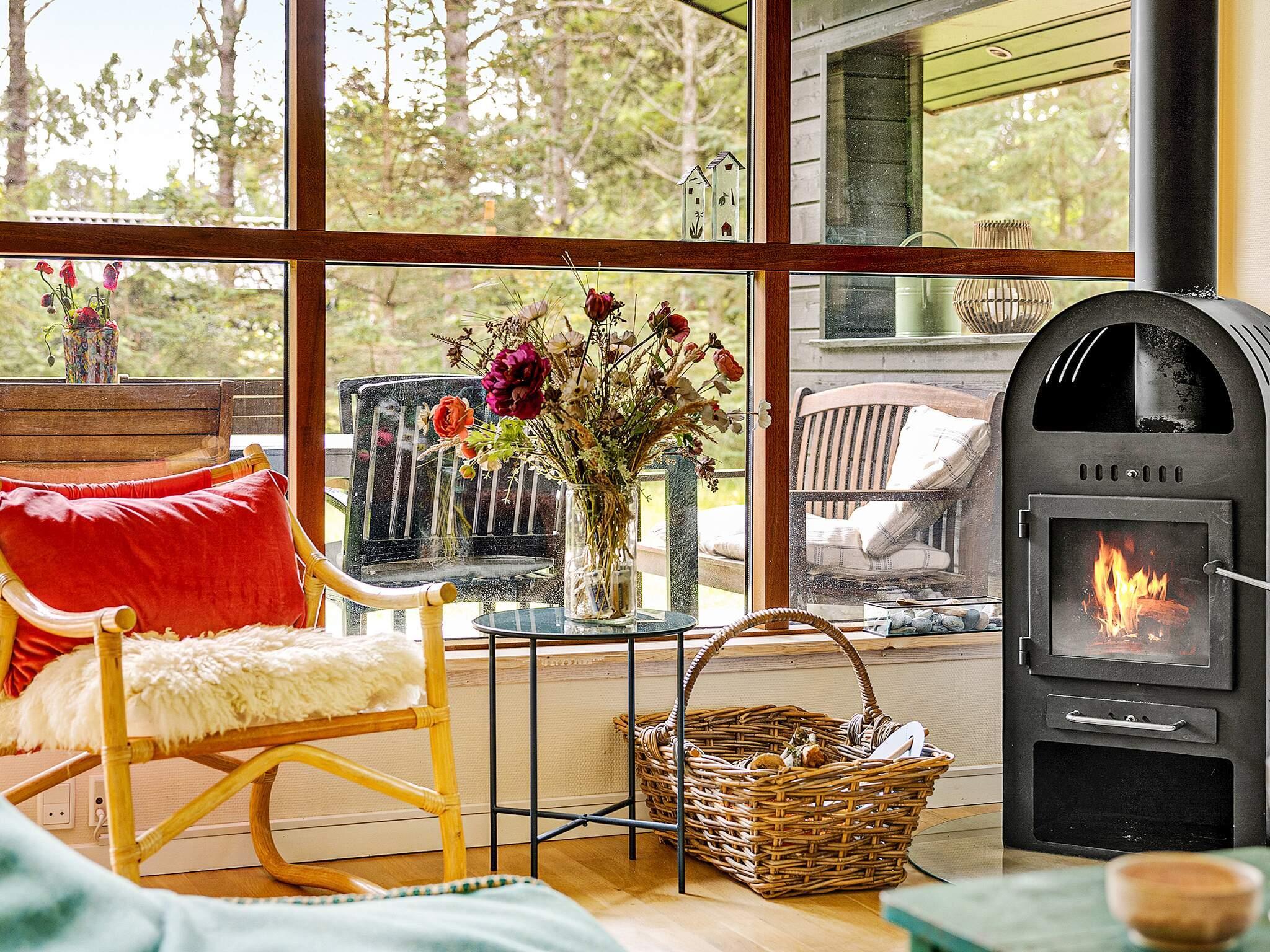 Dette dejlige sommerhus byder på de ideelle rammer for en fantastisk ferie med familie eller venner og er ideel til 6 personer. Indenfor finder du moderne møbler, højt til loftet og masser af lys. De store vinduespartier giver godt lysindfald og udsigt til træer og buske på naturgrunden. Huset består af badeværelse, tre gode soveværelser, lille hems, entre med vaskemaskine samt køkken og stue. Opholdsstuen, der består af køkken og stue i åbent plan, er et stort rum med højt til loftet, der giver god plads, når man vil samles om spisebordet. Eller du kan slappe af i sofaen med en god bog eller film og tænde brændeovnen for hurtigt at varme op på en kold aften. Terrasserne omkring huset byder på masser af læ, skygge og mulighed for at bevæge sig med solen. Der er også en stor overdækket terrasse. Sommerhuset er desuden udstyret med en luft-til-luft varmepumpe, som sikrer minimale varmeudgifter. Huset har +50 GB WIFI og Chromecast til TV.