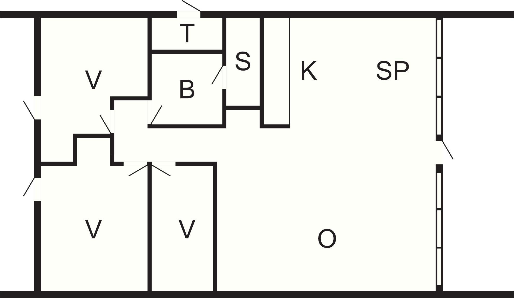 3 Soveværelser: (1DS)+(2S)+(1DS)
