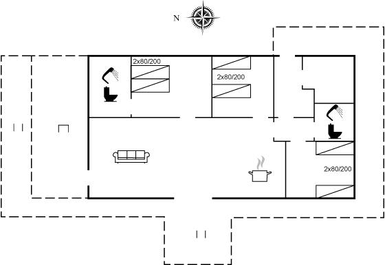 Der er i alt 3 soveværelser. Sovepladserne fordeler sig på: 2 sovepladser i dobbeltseng. 4 sovepladser i enkeltsenge.
