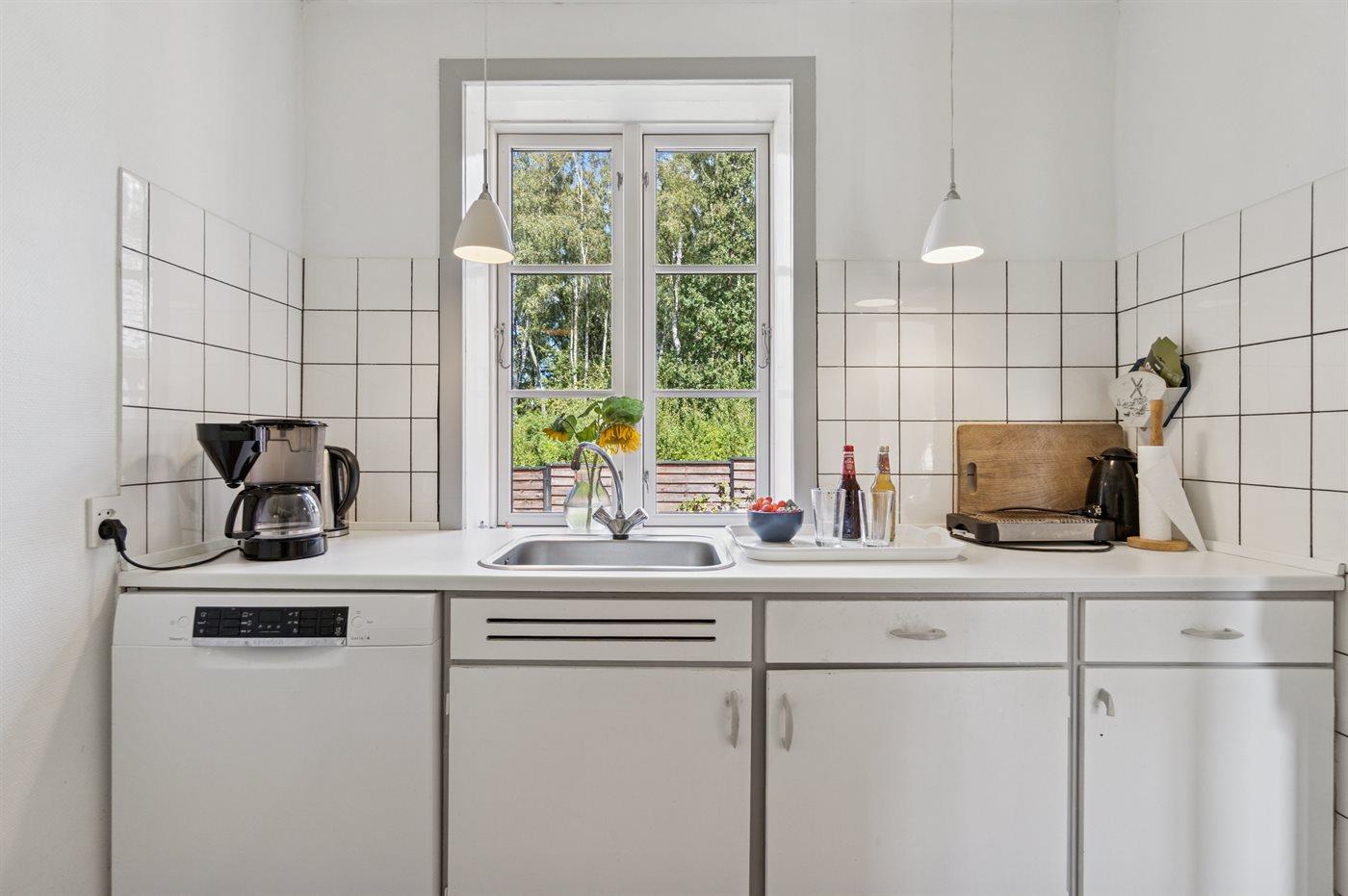 Køkkenet er udstyret med 1 køleskab. Der er 4 keramiske kogeplader, varmluftovn, mikrobølgeovn samt opvaskemaskine.