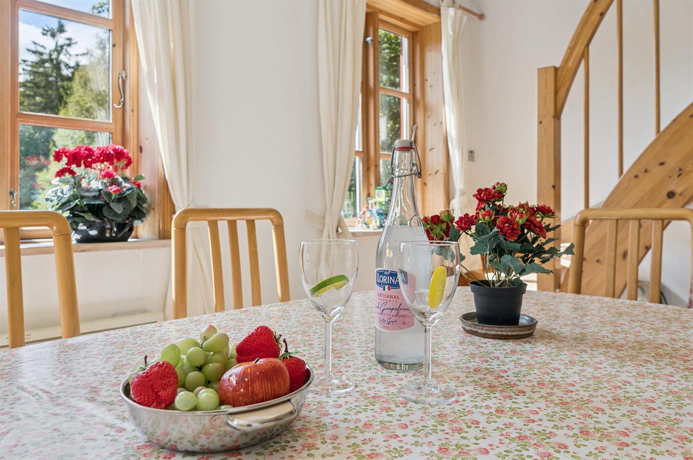 Huset er i to plan, og der er indrettet nyere soveafdeling i annekset på den anden side af gårdspladsen. Ønsker man fred og ro, så er dette huset, der jo nok ligger for sig selv, men alligevel ikke langt fra hverken Årsdal eller Svaneke.