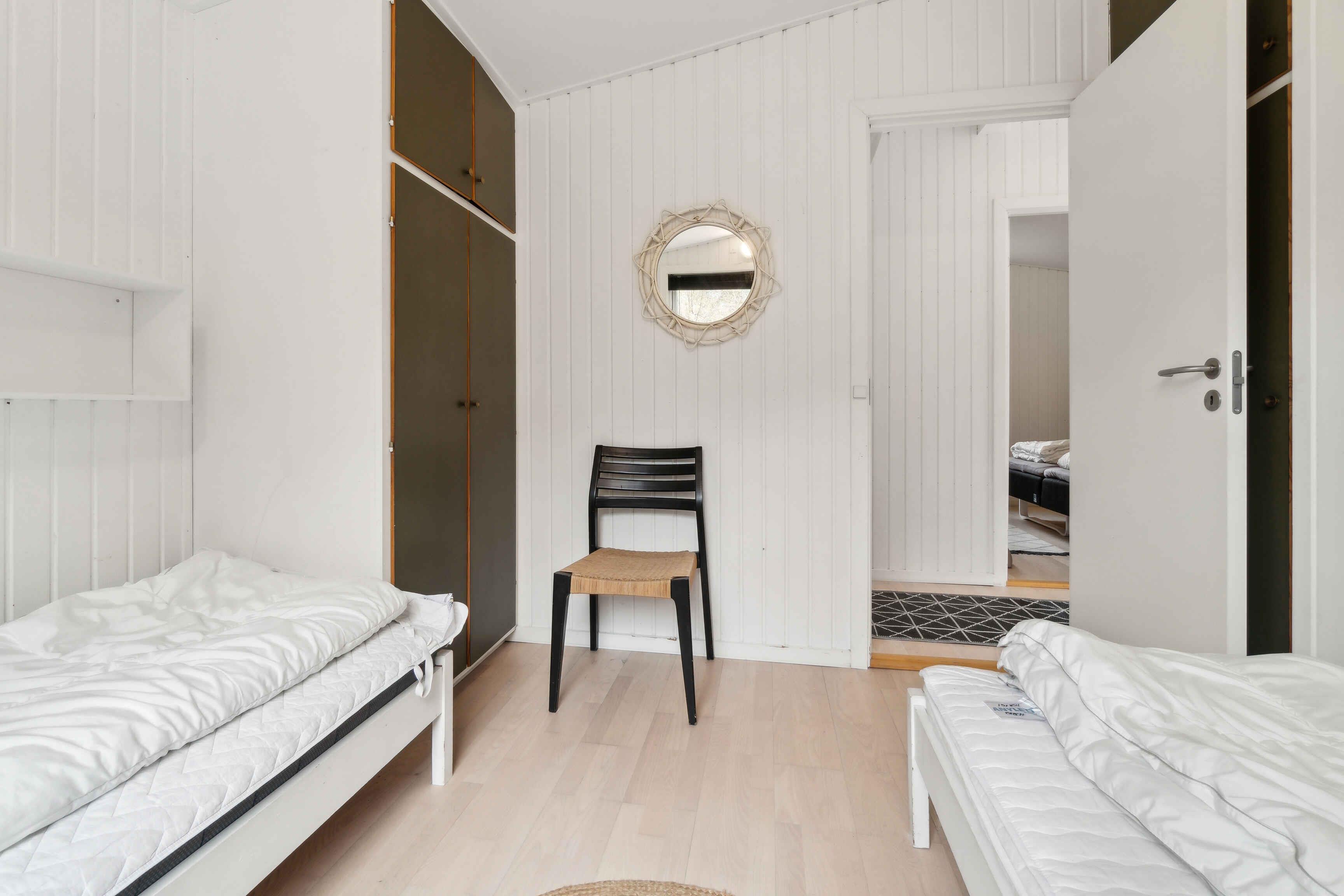 Dette sommerhus på 89 m² er en ideel base for en ferie i naturskønne omgivelser. Huset er 2 delt, med en opholdsafdeling og en soveafdeling. Huset har tre soveværelser med plads til op til seks personer. Kun 150 meter væk ligger kysten. Her kan I nyde stranden, gå lange ture eller tage en forfriskende dukkert i det klare vand. Huset ligger fredeligt, men stadig tæt på aktiviteter og oplevelser. Det er perfekt til dem, der ønsker ro, men også nem adgang til det omkringliggende område. Indretningen er funktionel med en varmepumpe og internet, der sikrer et behageligt ophold året rundt. Brændeovnen tilføjer hygge på kølige aftener. Køkkenet er veludstyret og ligger i åben forbindelse med stuen. Her er en spiseplads og sofagruppe, hvor familien kan samles til måltider og afslapning. Området omkring sommerhuset byder på smuk natur med stier til vandring og cykling. Stranden er oplagt til afslapning, leg og vandsport for hele familien. I nærområdet findes hyggelige spisesteder, lokale specialbutikker og gode indkøbsmuligheder. Om sommeren er der livlige markeder og kulturelle arrangementer. Dette sommerhus kombinerer fredelige omgivelser med nærhed til naturen og spændende aktiviteter. Perfekt for jer, der søger en afslappende ferie ved vandet.