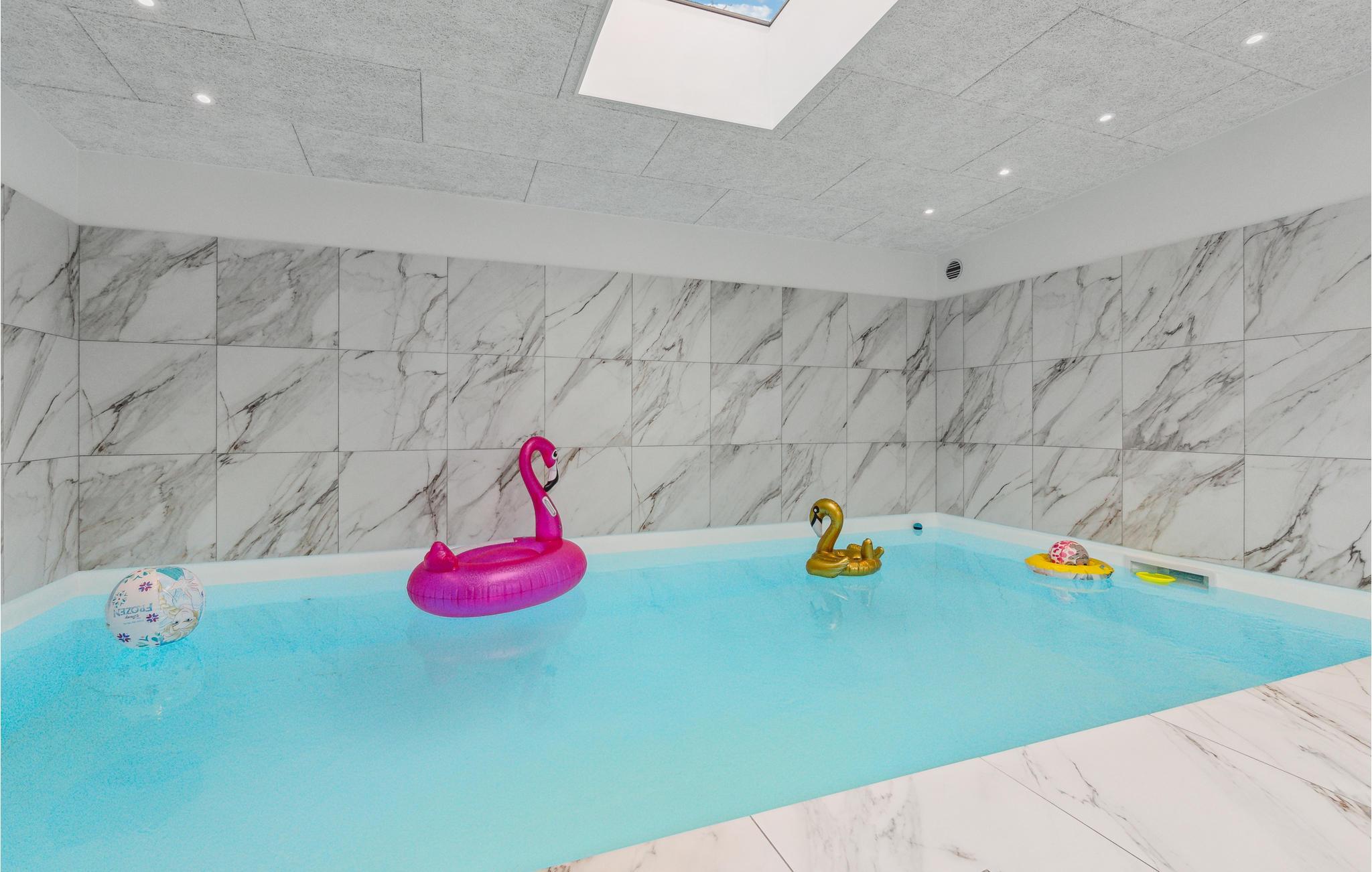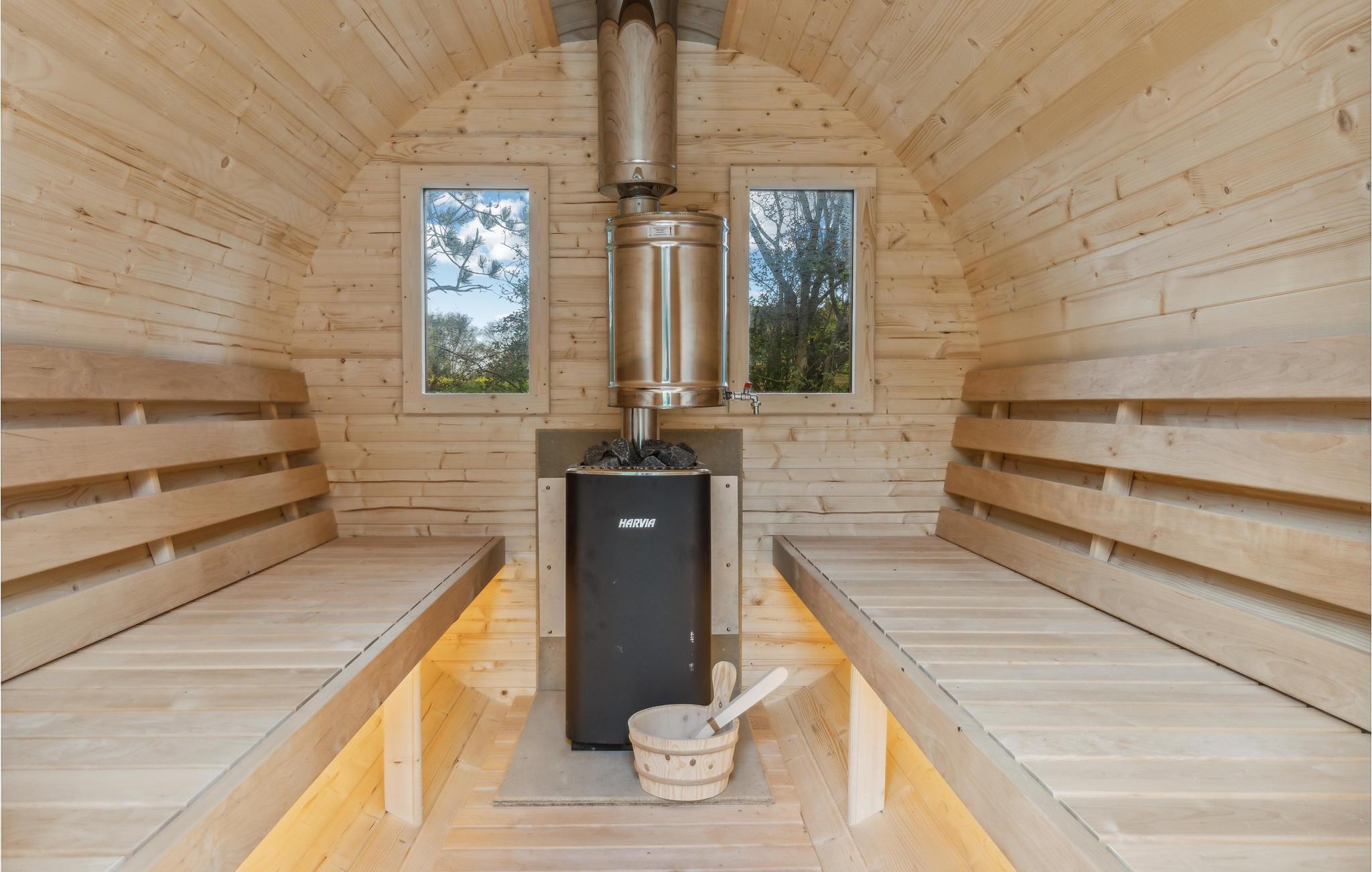 Her finder I alt, hvad I har brug for til en behagelig ferie. Tag hele familien med og flyt ind i dette store feriehus. Her kan I alle finde ro og glemme hverdagens bekymringer. Efter en lang dag med oplevelser er det herligt at vende tilbage til feriehuset og snuppe et dyp i poolen, hvor der er separat børnepool til de mindste. I den indbydende stue med moderne køkken kan I tilberede jeres ferieretter sammen og nyde dem ved spisebordet. Den overdækkede terrasse er også perfekt til dette formål. Dæk op til morgenmaden udenfor, mens børnene leger på græsplænen, klatrer en tur op i legetårnet eller springer om kap på trampolinen. Hvis I overvejer en fællesaktivitet, er der plads til hele familien i tøndesaunaen, så her kan I samles og nyde en rolig stund oven på dagens program.