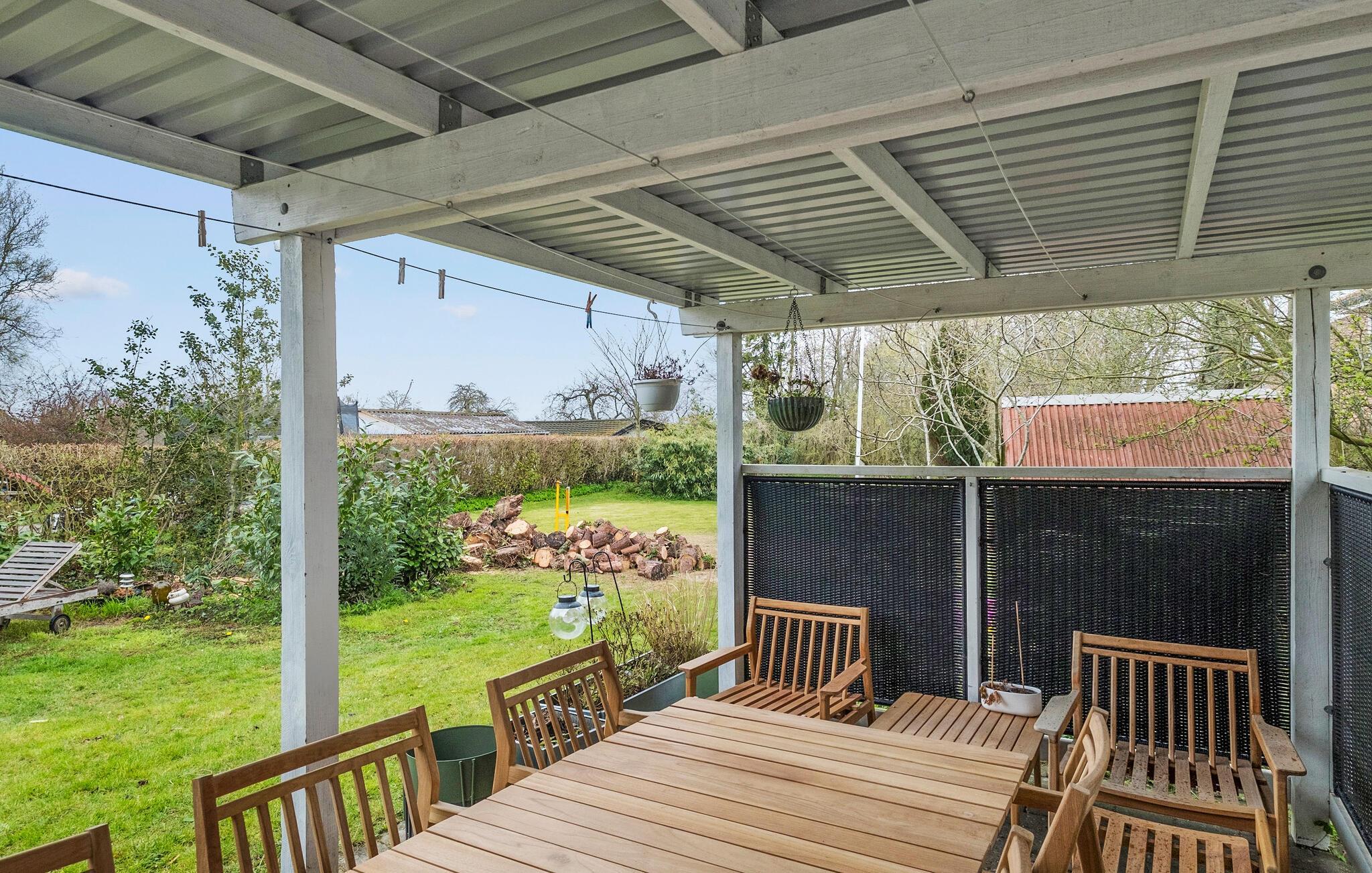 Oplev det smukke udendørsområde med dets mangfoldige muligheder for afslapning. Den overdækkede terrasse med komfortable træmøbler lægger op til selskabelige timer i den friske luft. Afslut dagen med en hyggelig grillaften eller slap af på en af ??liggestolene i den store have. Børn har masser af plads at lege, mens I kan slappe af midt i naturen.