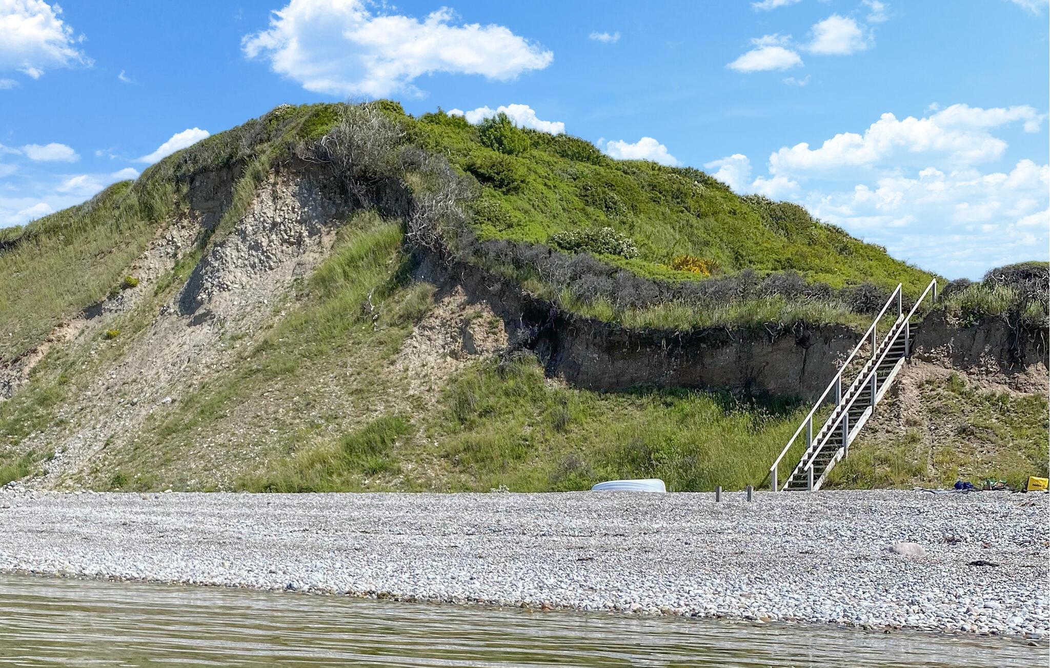 Velkommen i første række til vandet med fri havudsigt fra terrassen og stuerne, som vender mod vest. Her får I en helt særlig mulighed for at bo midt i Nordsamsøs smukke natur med en fantastisk udsigt over havet. Huset ligger for enden af en blind vej, langt fra nærmeste naboer - midt i den frie og vilde natur, hvor roen og freden kan nydes uforstyrret. Grunden går helt ned til vandet med egen sti og trappe direkte til stranden.
