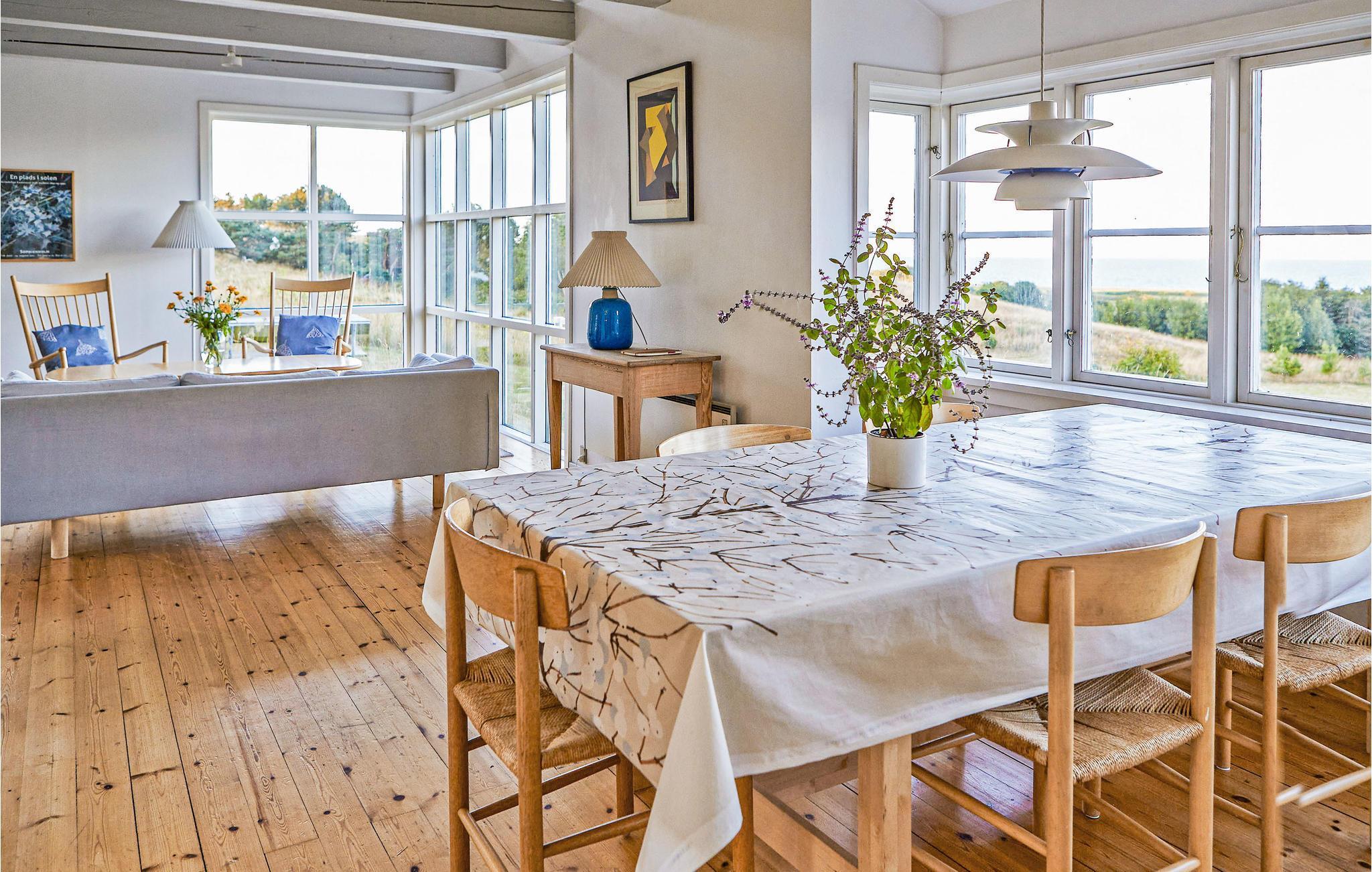 Huset byder jer velkommen på Nordøen og giver jer det ideelle sted til en afslappende ferie med masser af ro. Husets hyggelige indretning, synlige loftsbjælker og ikke mindst de stilfulde træmøbler skaber en varm og behagelig atmosfære. Hele familien vil hurtigt føle sig hjemme her, da der er mange hyggekroge i huset, bl.a. på det åbne loft. Efter en aktiv feriedag kan I lade roen sænke sig i stuen, smække benene op og nyde den vidunderlige udsigt over havet og de fredede Nordby Bakker, der omgiver huset. På kølige aftener kan I varme jer med en kop te foran brændeovnen. Tilbring mange skønne timer på den grønne naturgrund, mens I drikker jeres morgenkaffe foran huset og lader jer inspirere af havudsigten og naturens ro.