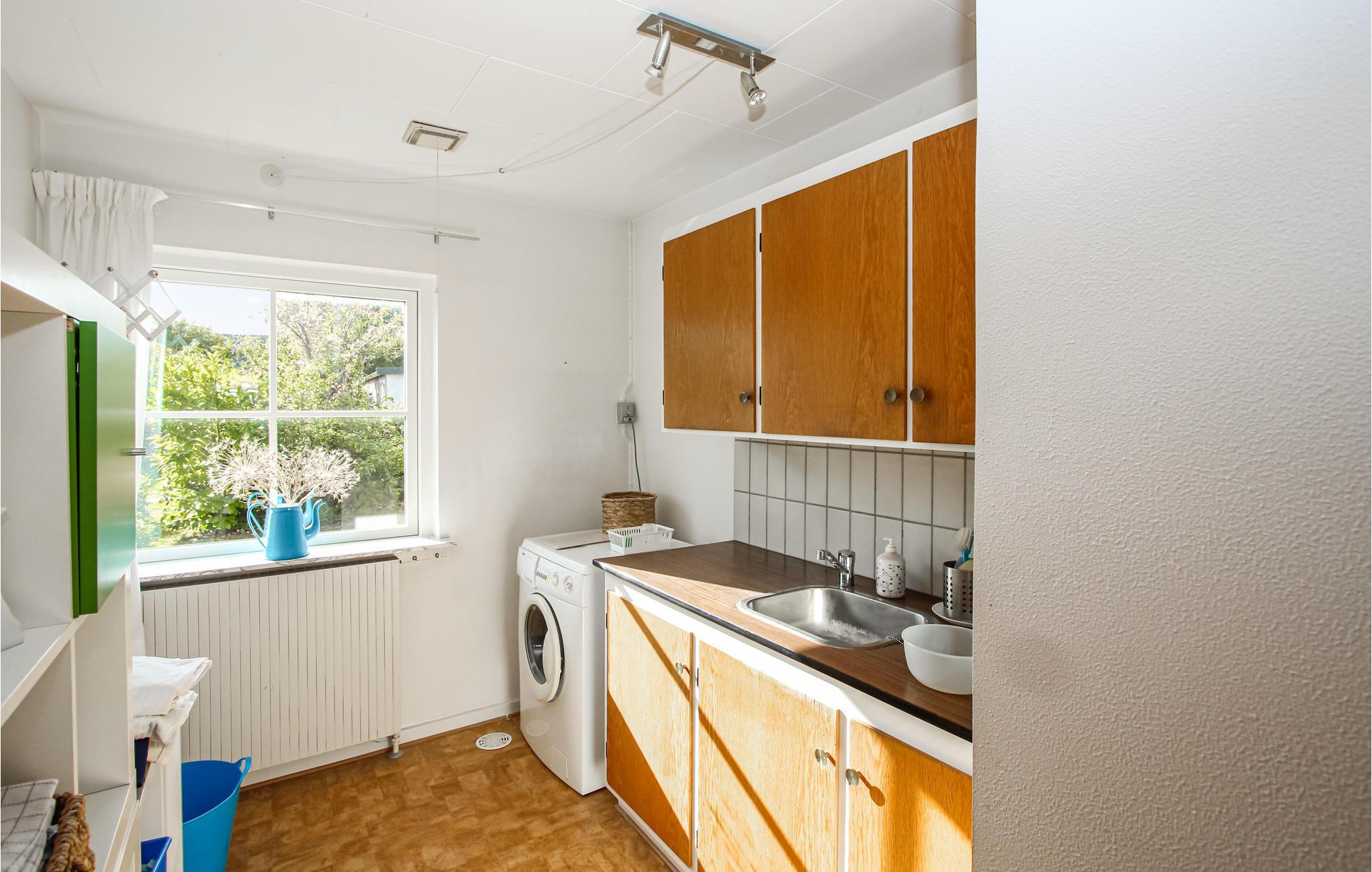 Det solide hus byder gæsterne velkommen omgivet af en smuk have og er en lille oase af afslapning med sine hyggeligt indrettede værelser. Tilbring dejlige eftermiddage og aftener i de komfortable sofaer i stuen, som indbyder til en lang række spil, snak og hyggelige stunder sammen. Herfra kan I gå ud i haven med en kop kaffe og slappe af ved det lille bord. Brug ferieboligen som en hyggelig base for spændende udflugter på øen.