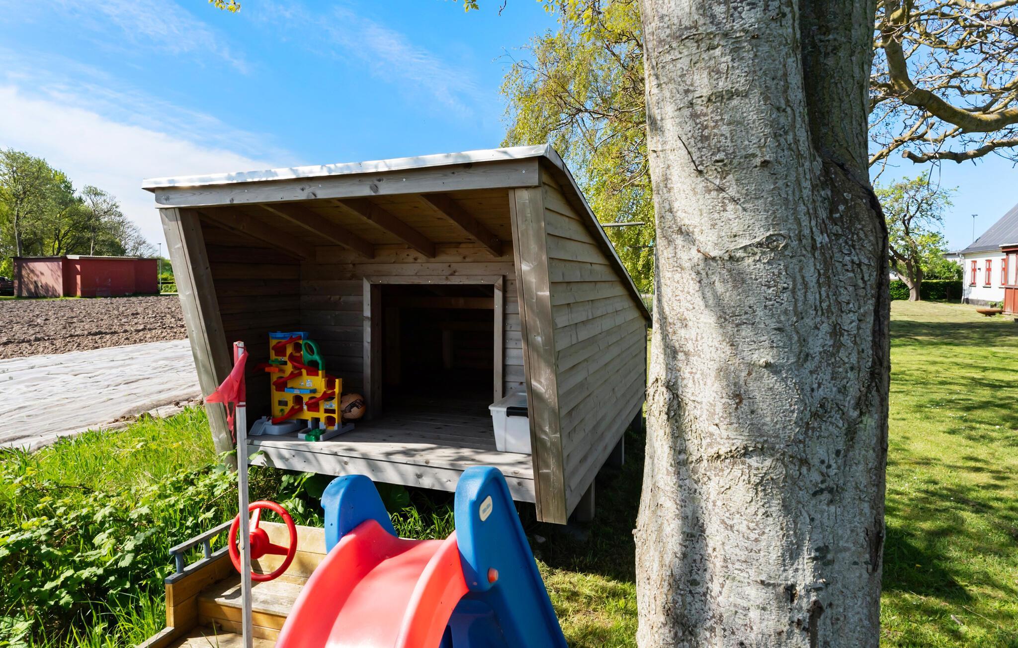 Nyd solen på terrassen, eller hyg jer i den beskyttede udestue. Lad jeres børn lege i den store have, gynge eller udforske trampolinen. En lille shelterhytte byder på plads til leg, gemmelege eller en pause i skyggen. Udnyt den fredelige beliggenhed til fælles måltider under åben himmel eller morgenmad under de gamle træer.