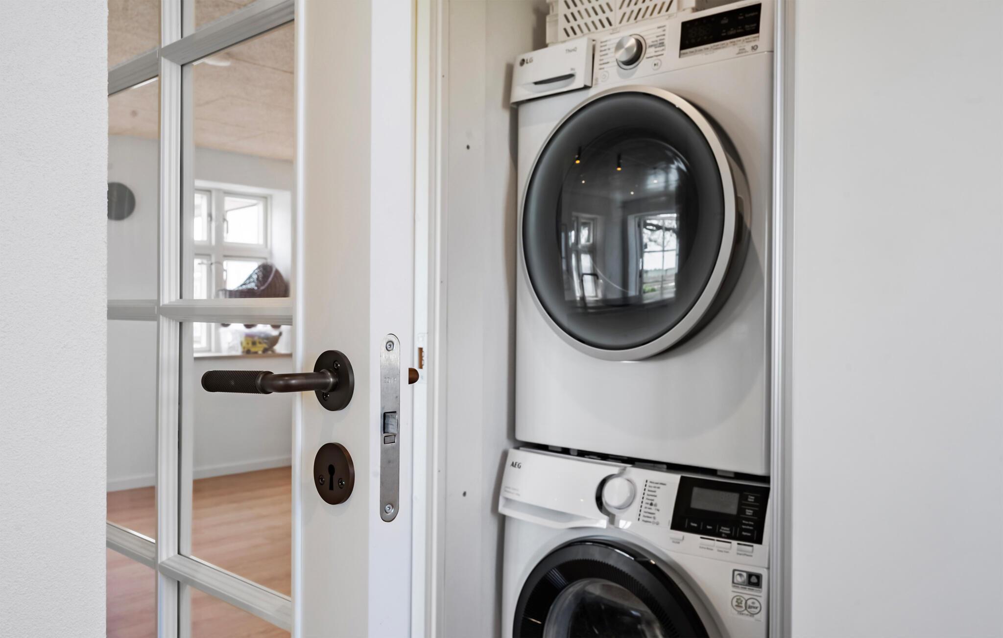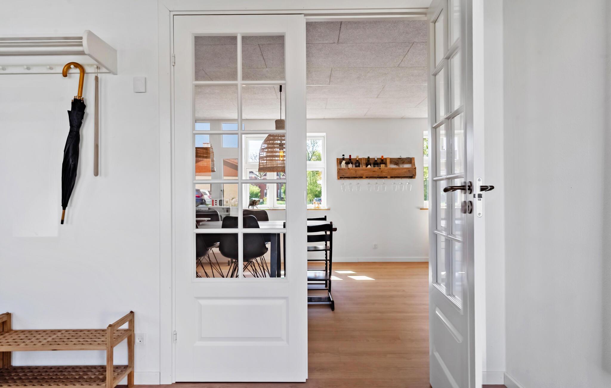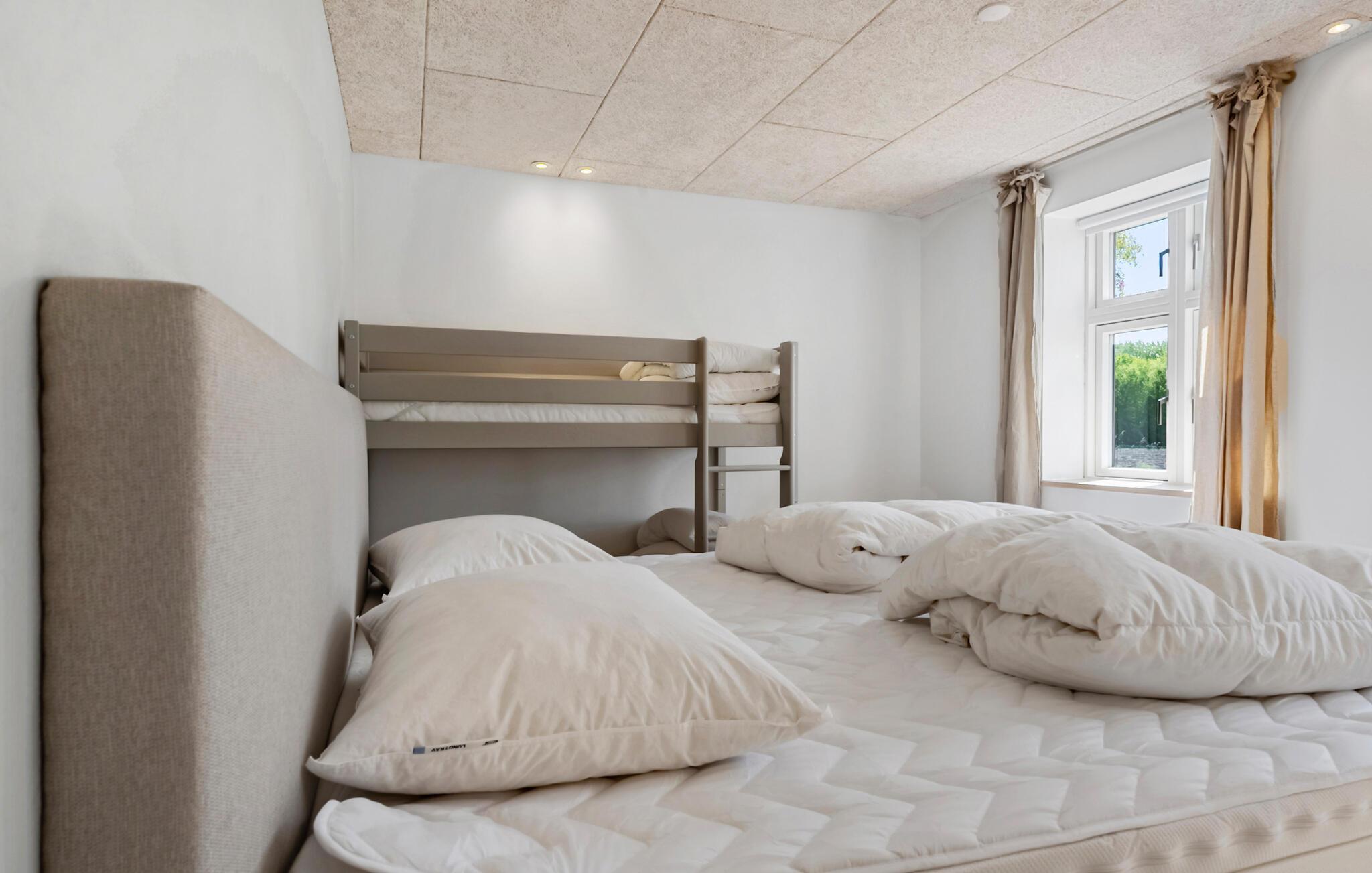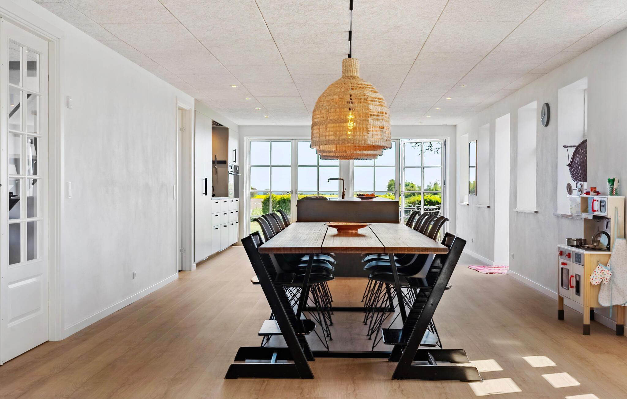 Tilbring rolige dage i dette rummelige feriehus, der omgivet af åbne marker byder på en lys og venlig atmosfære. Træd ind i det store, åbne opholdsrum, der er stilfuldt indrettet. Slap af på den hyggelige hjørnesofa, eller saml jer omkring det lange spisebord. Lad blikket glide ud i naturen gennem gulv-til-loft-vinduerne, mens I laver mad i det moderne køkken med central kogeø. Værelserne er møbleret med kvalitetsmøbler og giver med deres rummelighed gode muligheder for både fælles samvær og rolige stunder alene.