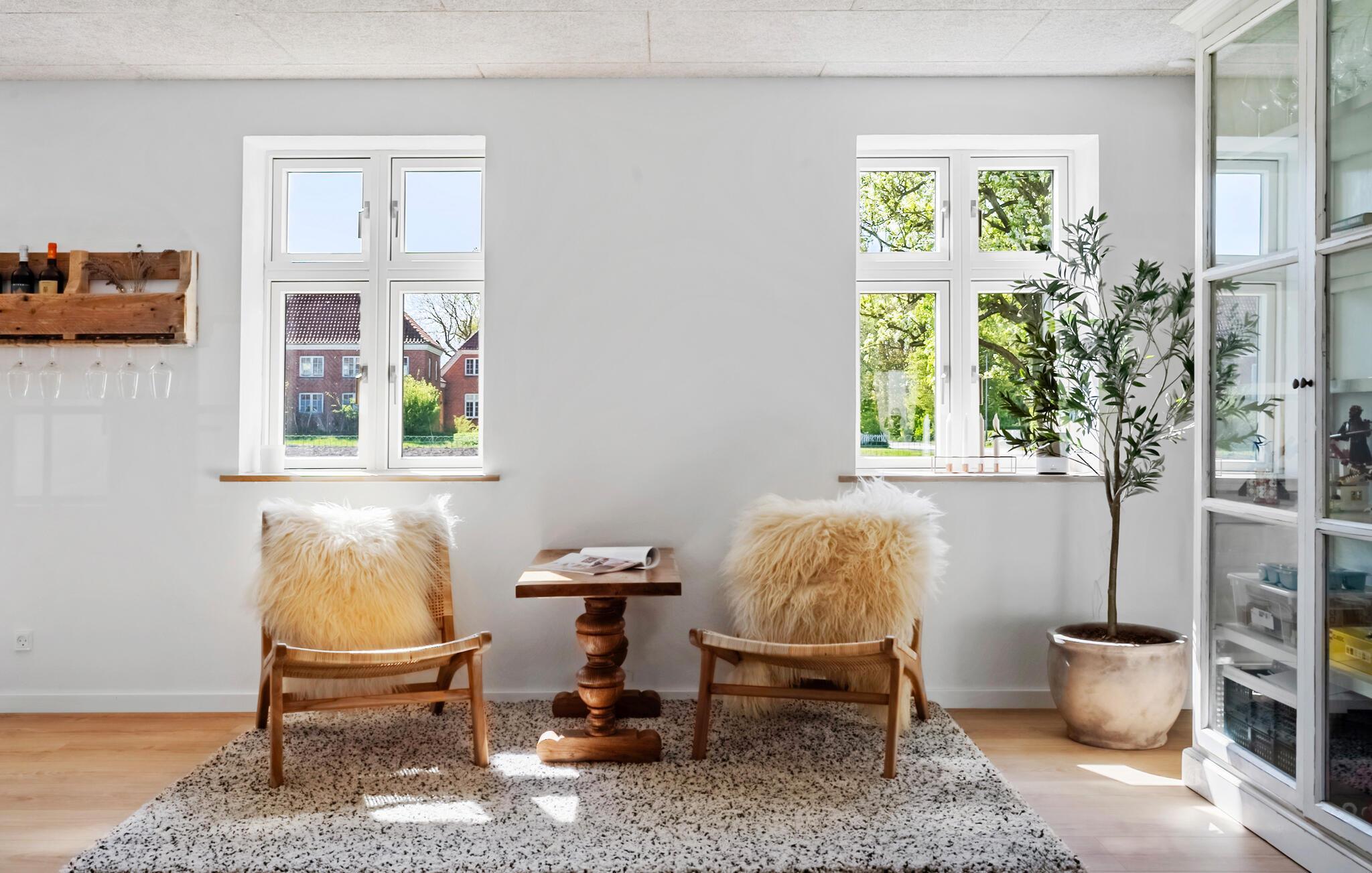 Flot renoveret landhus på Samsø med udsigt, stor have, terrasse og moderne faciliteter til en afslappende ferie.