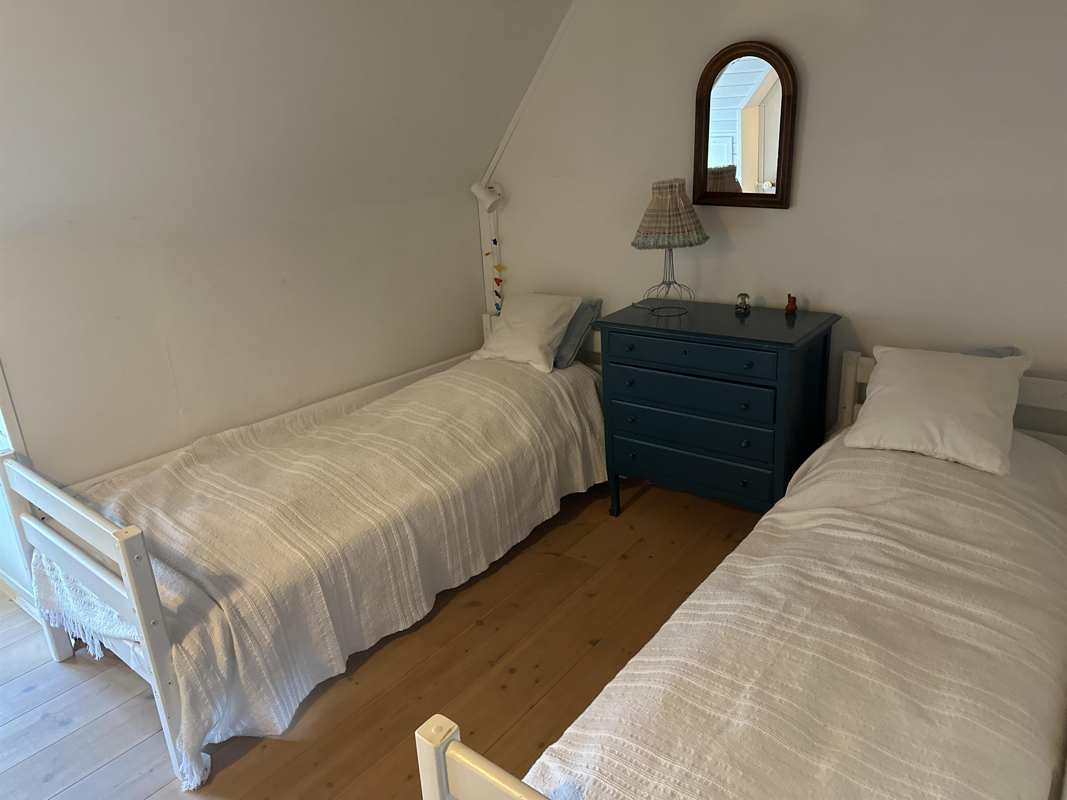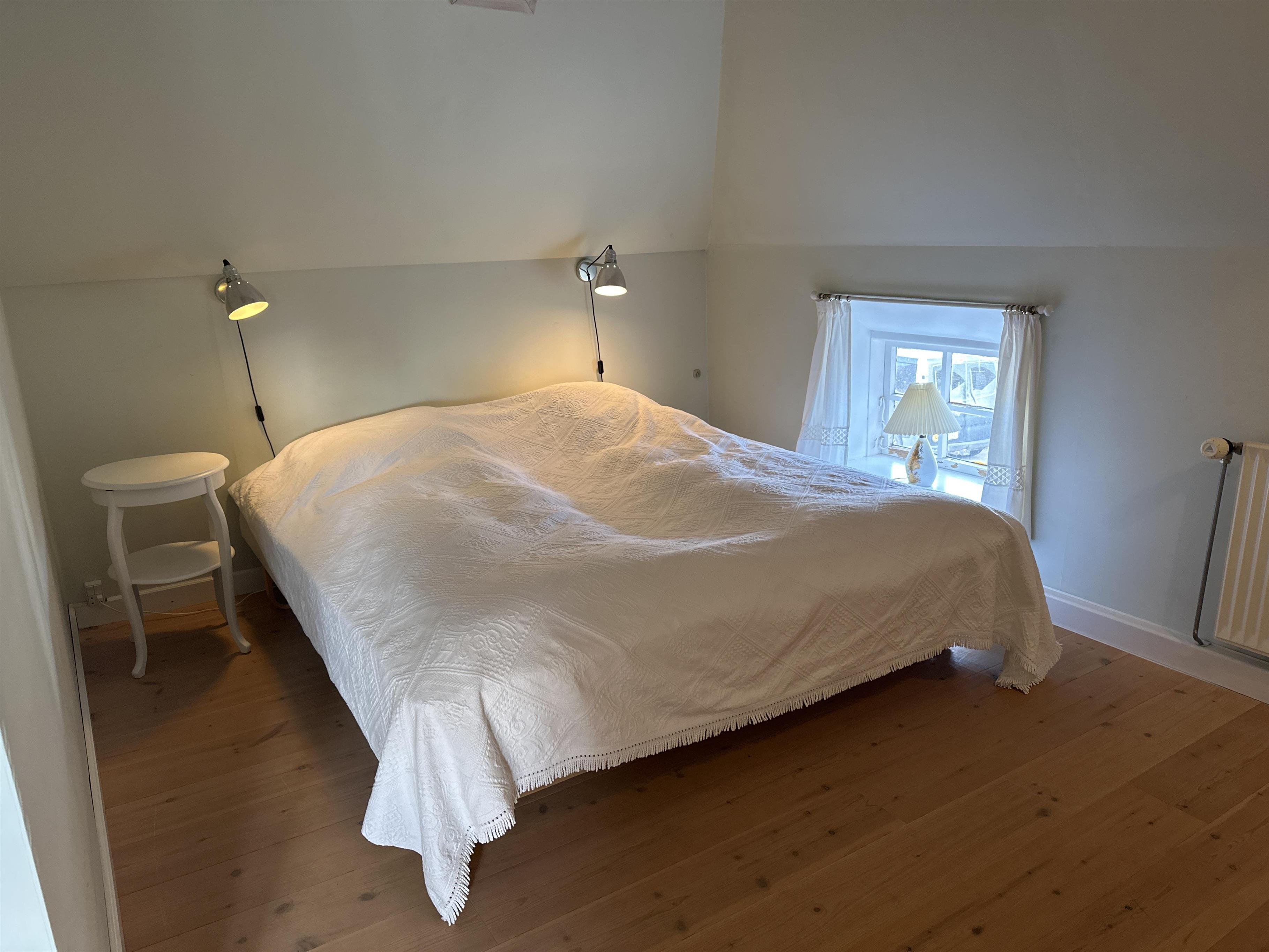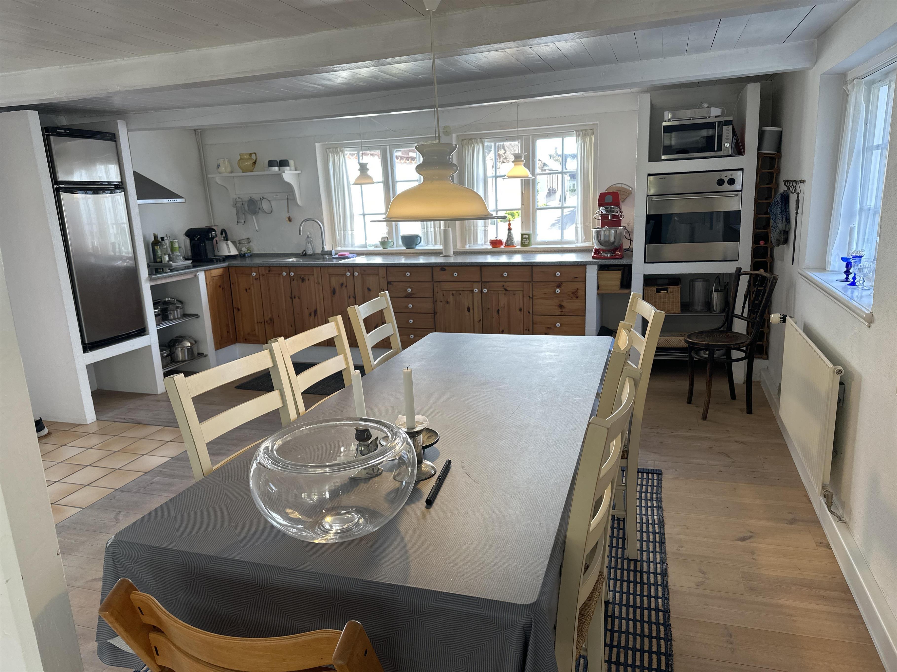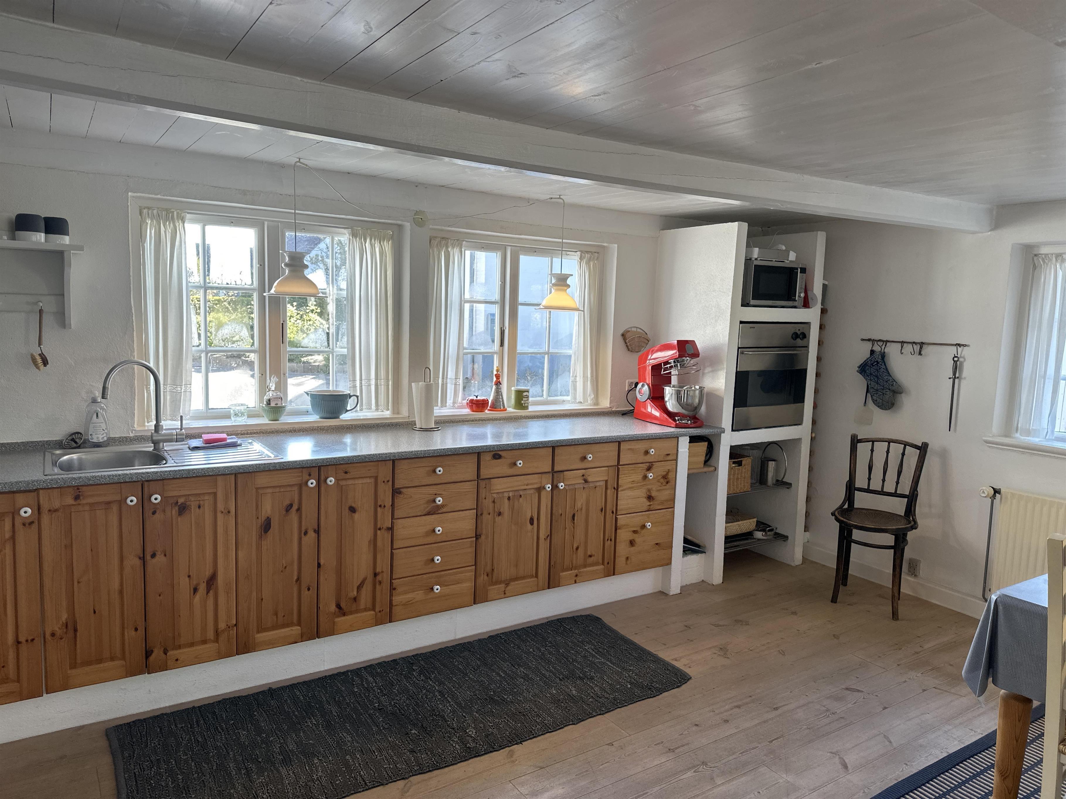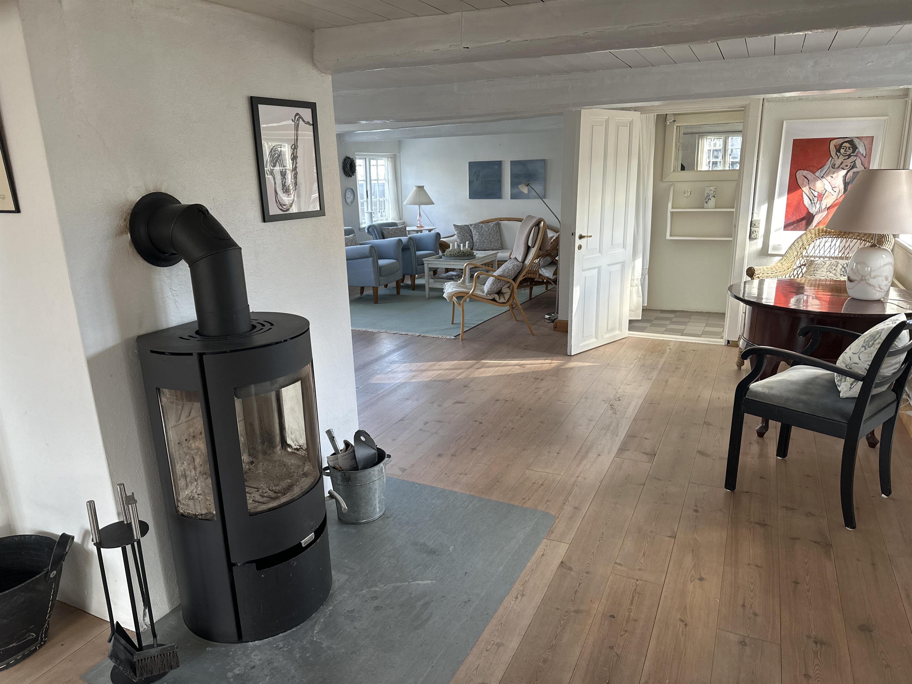 Boligen byder på et stort og lyst køkkenalrum med spiseplads og et hyggeligt sofahjørne med brændeovn – perfekt til afslapning. Her finder du også et badeværelse med brusekabine. På førstesalen er der 4 soveværelser: 3 med dobbeltsenge og et værelse med 2 enkeltsenge i børnestørrelse.