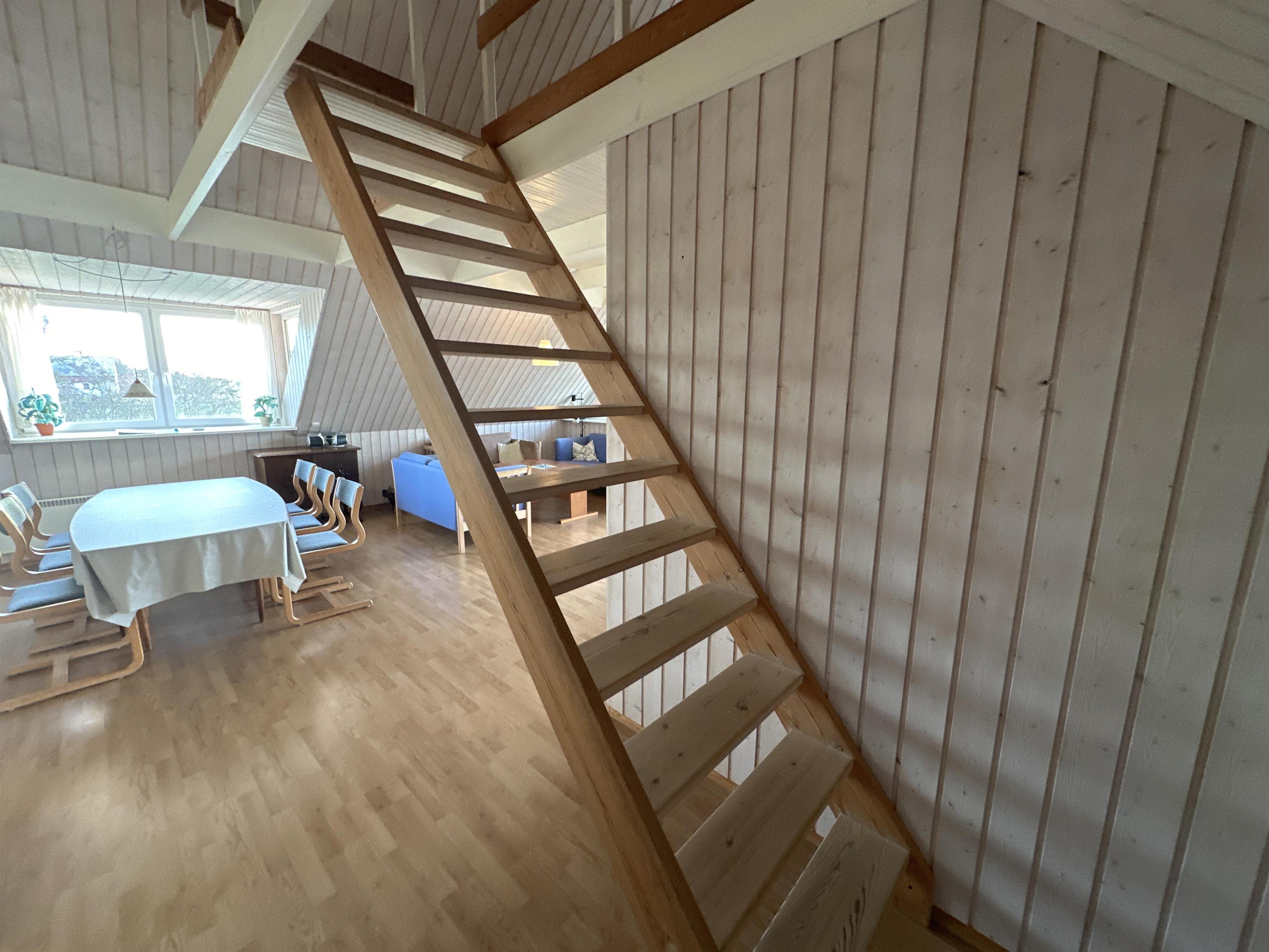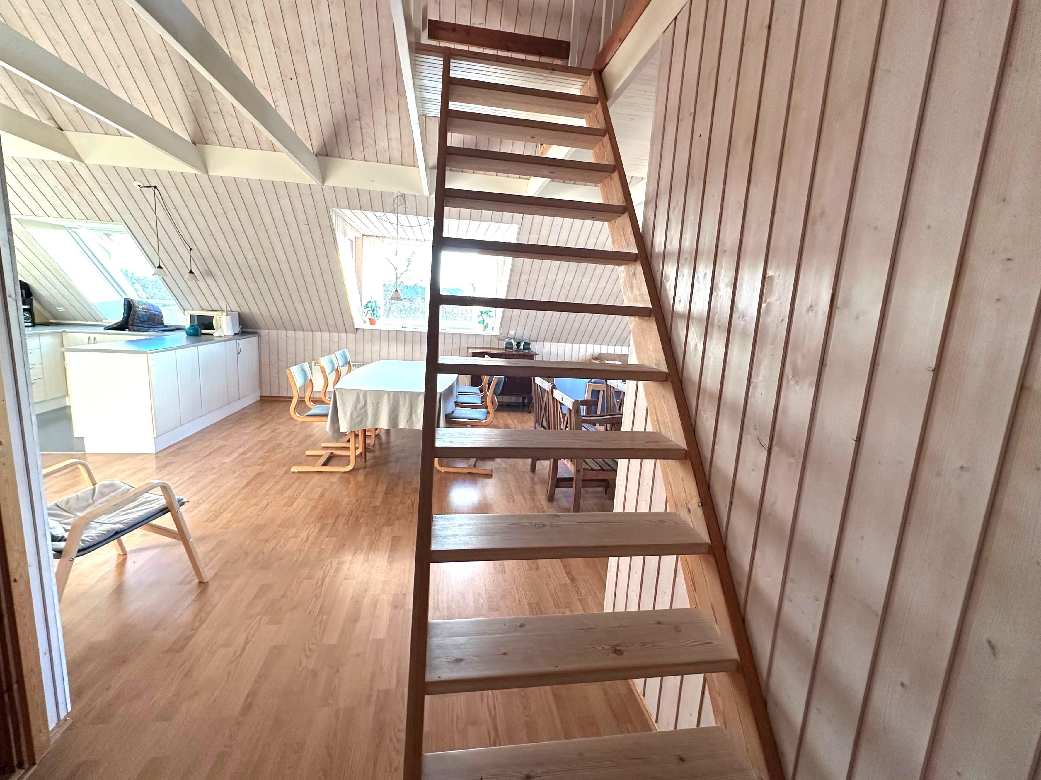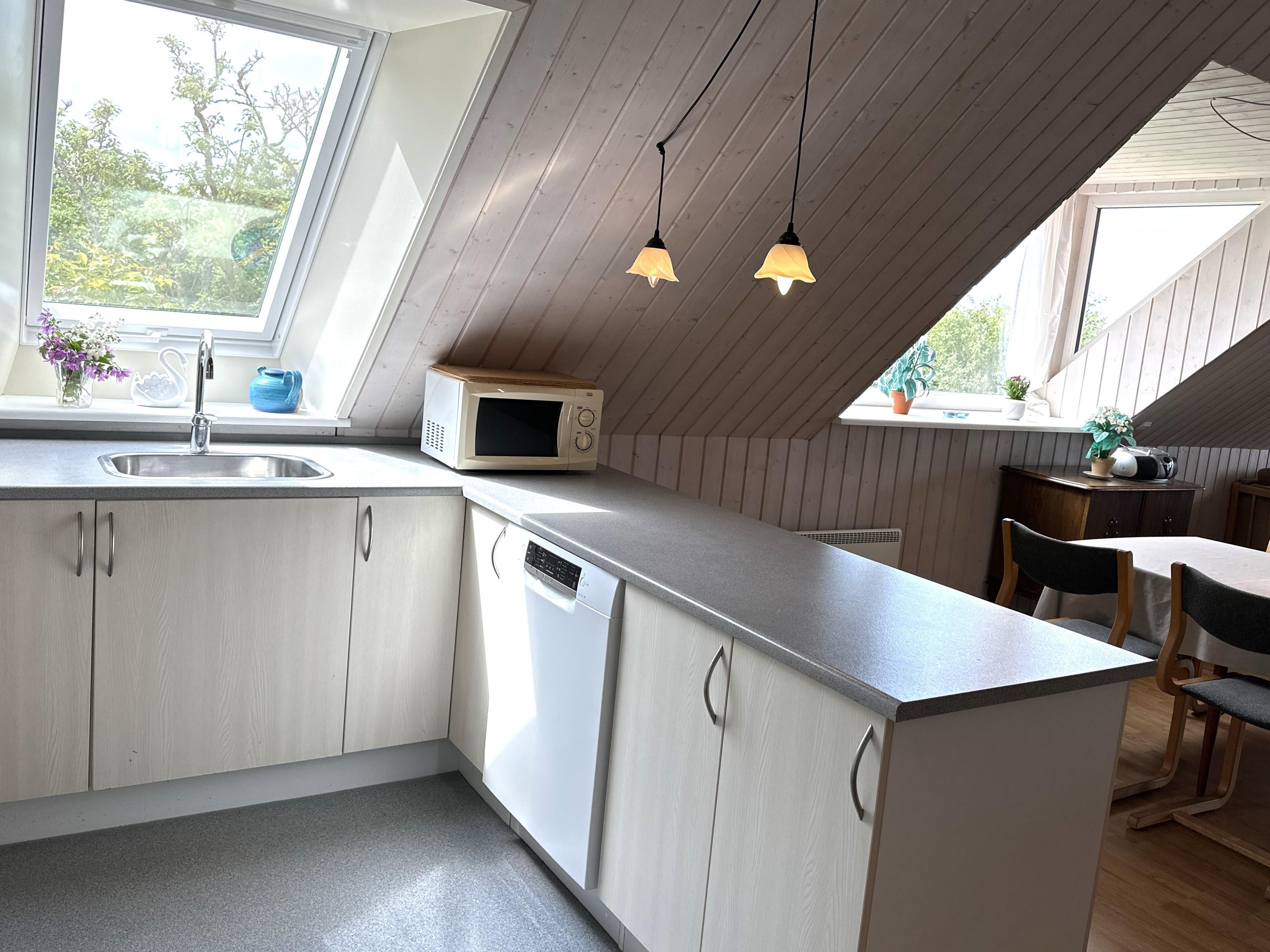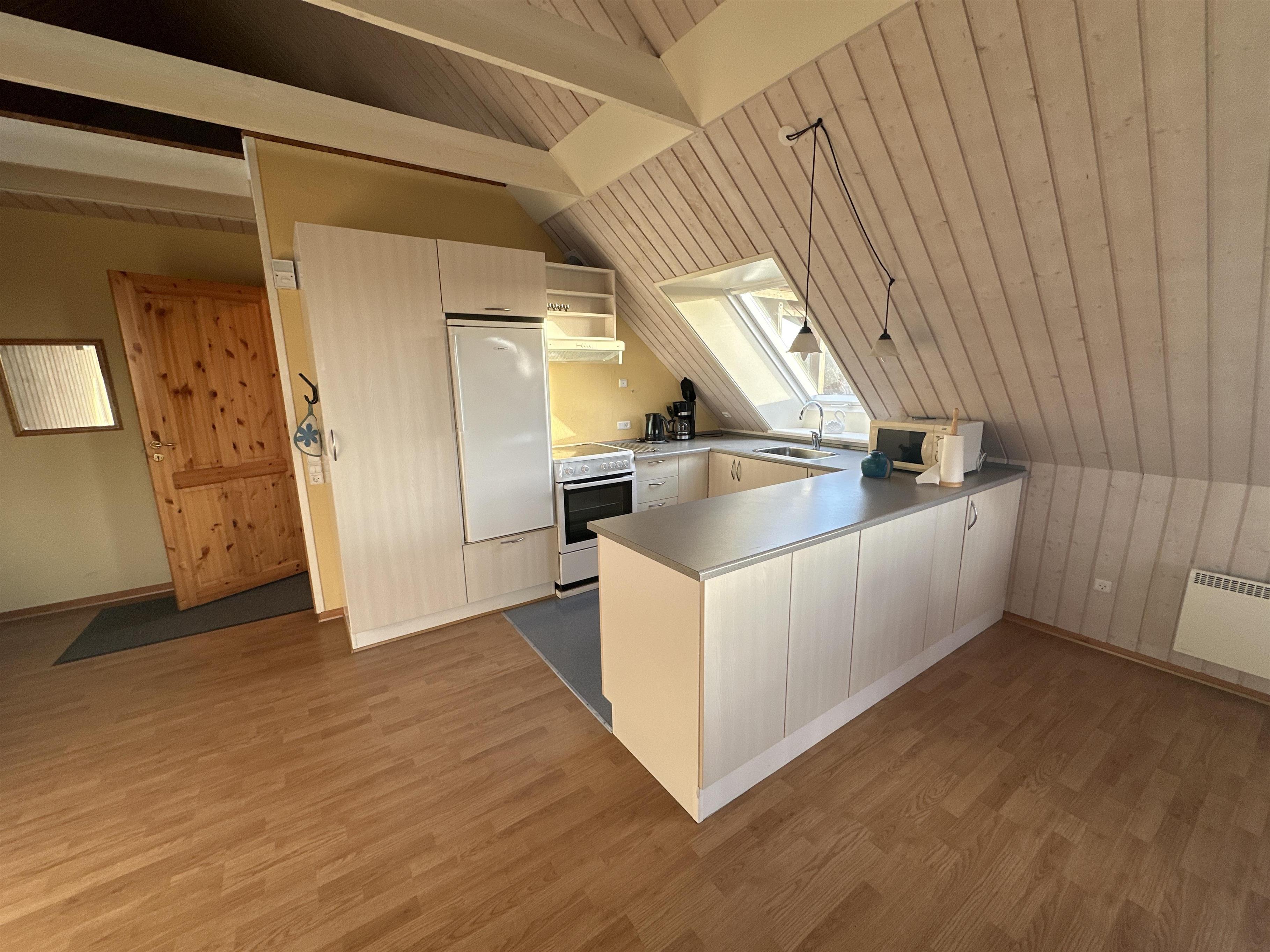 Velkommen til en dejlig, lys og komfortabelt indrettet lejlighed med loft til kip, der giver en åben og rummelig atmosfære. Den åbne køkken/alrumløsning er både funktionel og indbydende, med en spiseplads til hyggelige måltider og et sofahjørne, hvor I kan slappe af efter en oplevelsesrig dag. Lejligheden har to hyggelige soveværelser, begge med dobbeltsenge, samt en charmerende hems i stuen med to ekstra sovepladser, der giver plads til flere gæster. Badeværelset er indrettet med både brusekabine, spabad og sauna, så I kan forkæle jer selv og lade op til flere eventyr.