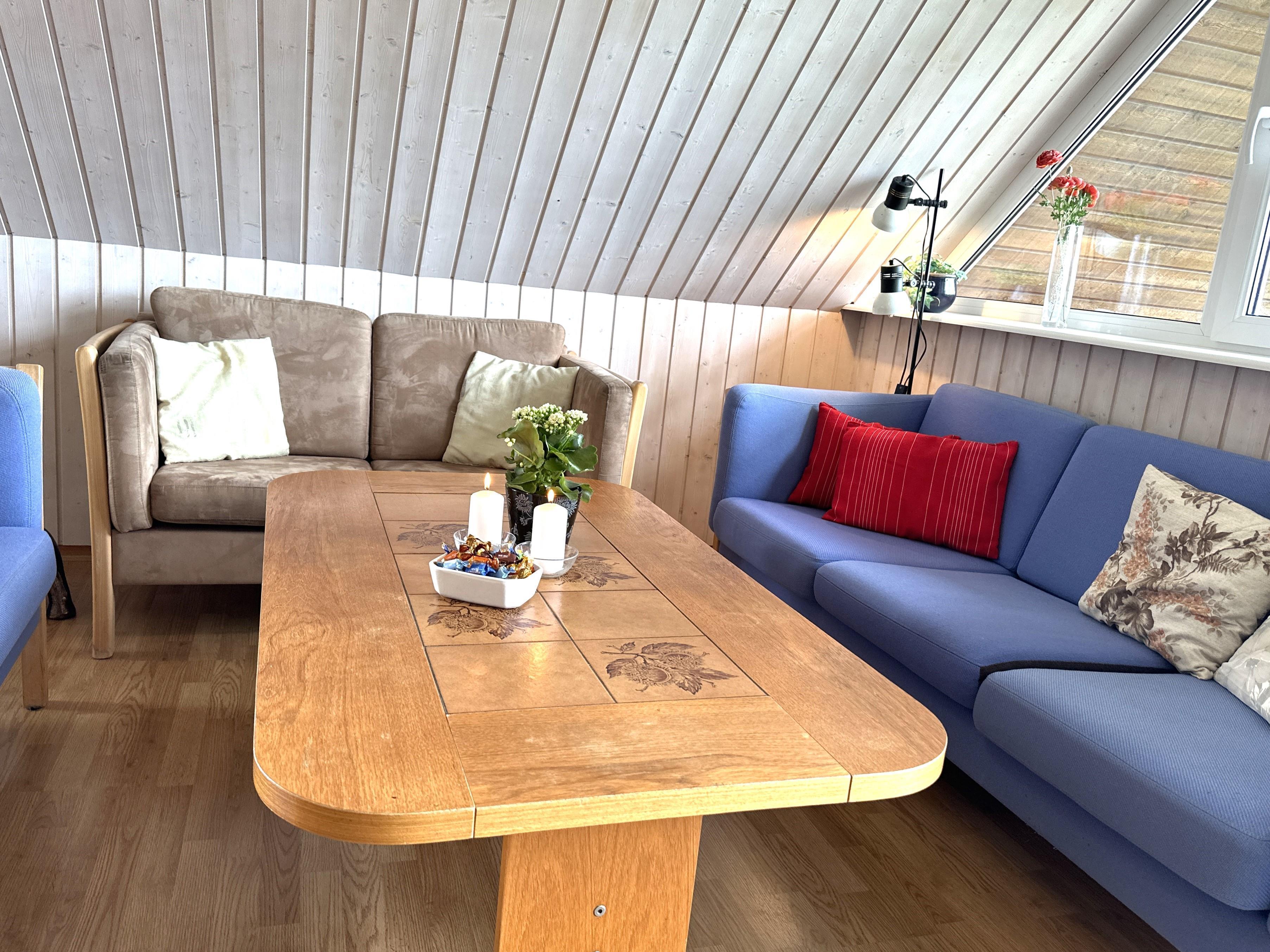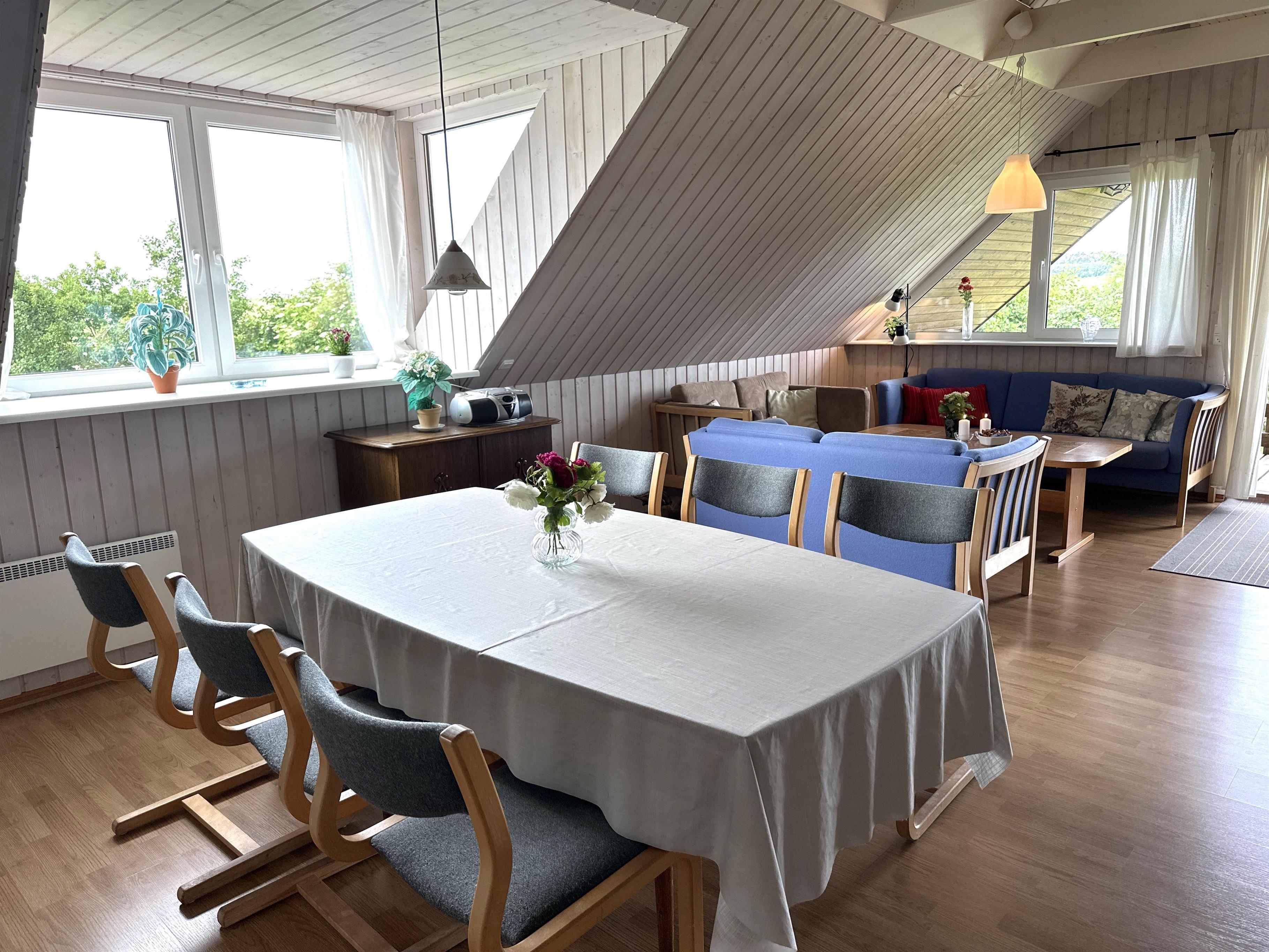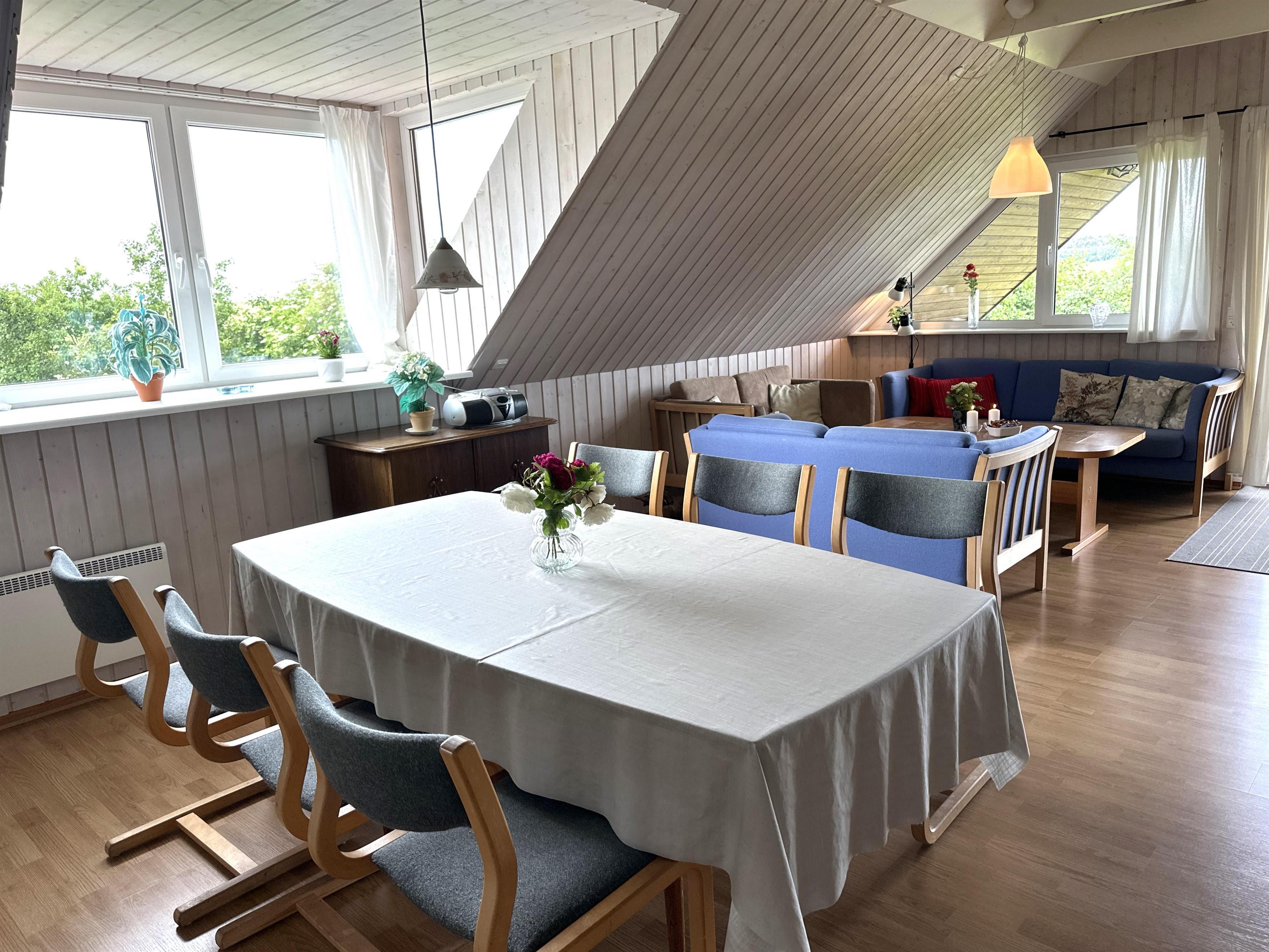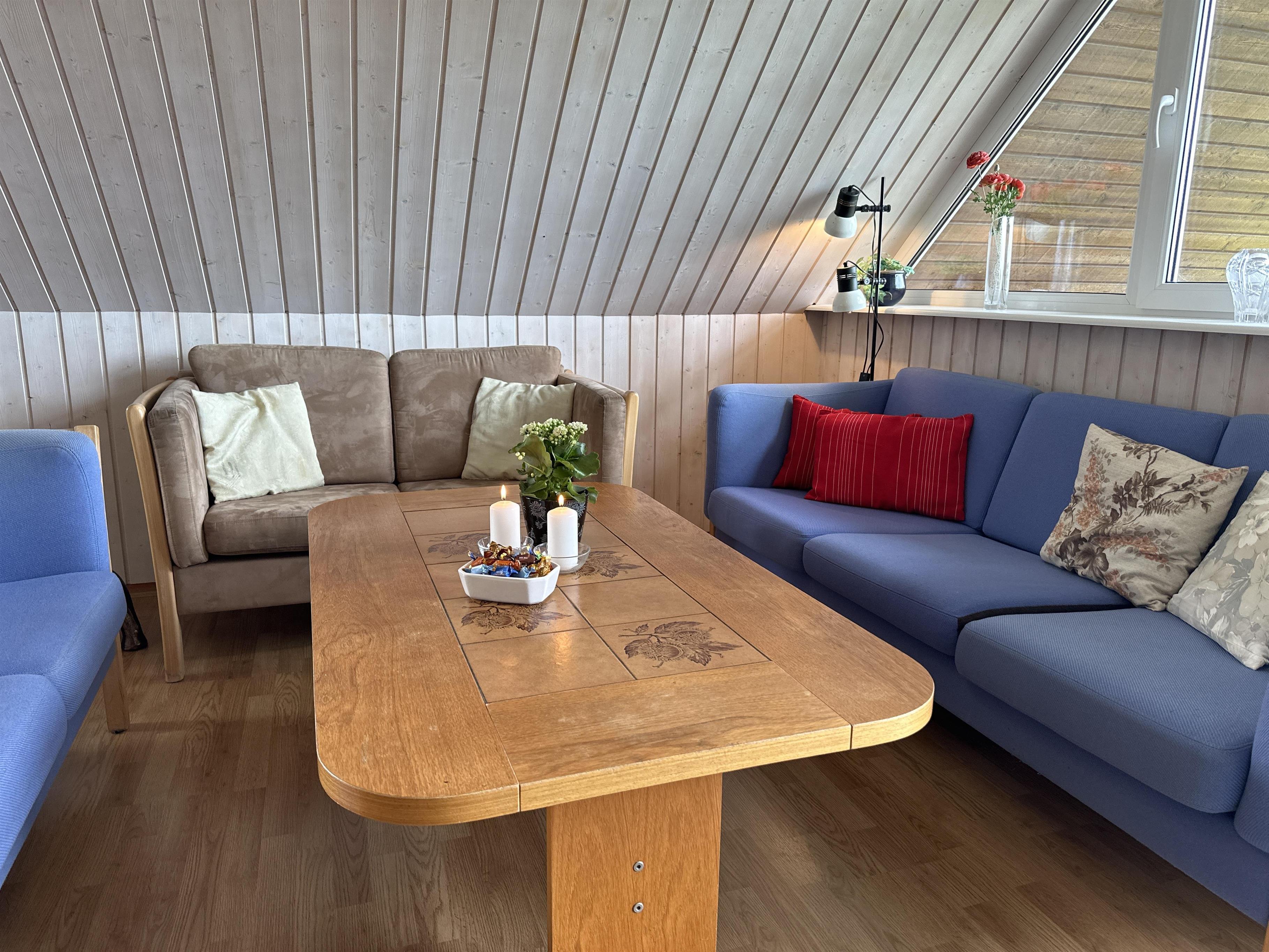 Velkommen til en dejlig, lys og komfortabelt indrettet lejlighed med loft til kip, der giver en åben og rummelig atmosfære. Den åbne køkken/alrumløsning er både funktionel og indbydende, med en spiseplads til hyggelige måltider og et sofahjørne, hvor I kan slappe af efter en oplevelsesrig dag. Lejligheden har to hyggelige soveværelser, begge med dobbeltsenge, samt en charmerende hems i stuen med to ekstra sovepladser, der giver plads til flere gæster. Badeværelset er indrettet med både brusekabine, spabad og sauna, så I kan forkæle jer selv og lade op til flere eventyr.