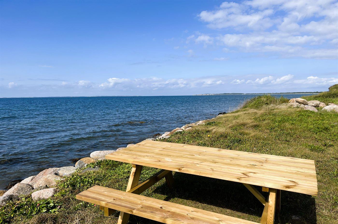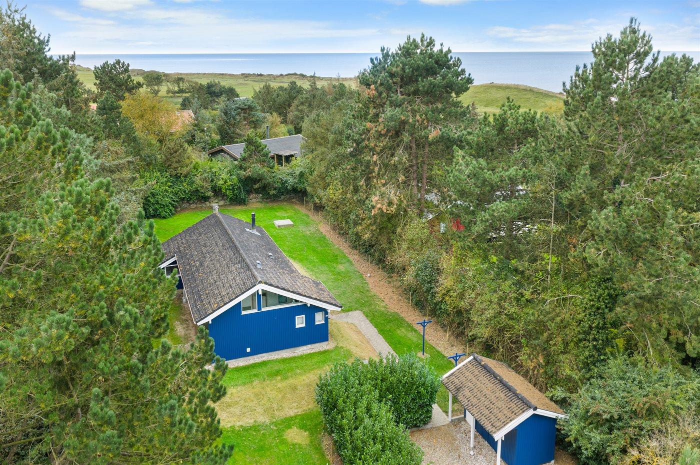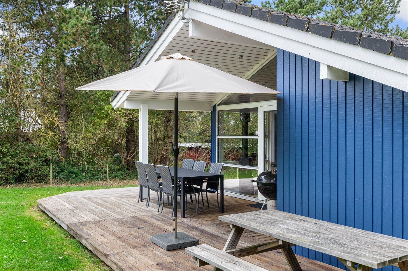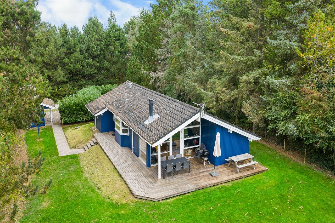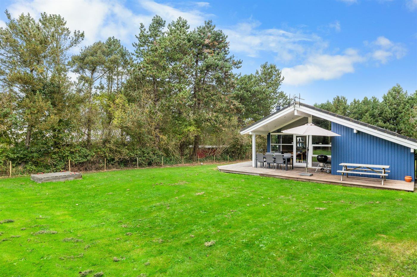 Ferieboligen er beliggende på en 1211 m² stor havegrund. Grunden er indhegnet. Der er 190 m til havet. Der er en badebro i nærheden. Nærmeste forretning er beliggende i en afstand af 5200 m. Der er en golfbane i en afstand af 5000 m. Til ferieboligen hører åbent terrasseareal. Desuden er der overdækket terrasse. Sandkasse. Der ligger en legeplads i en afstand af 200 m. Grill til rådighed. Parkering ved ferieboligen.