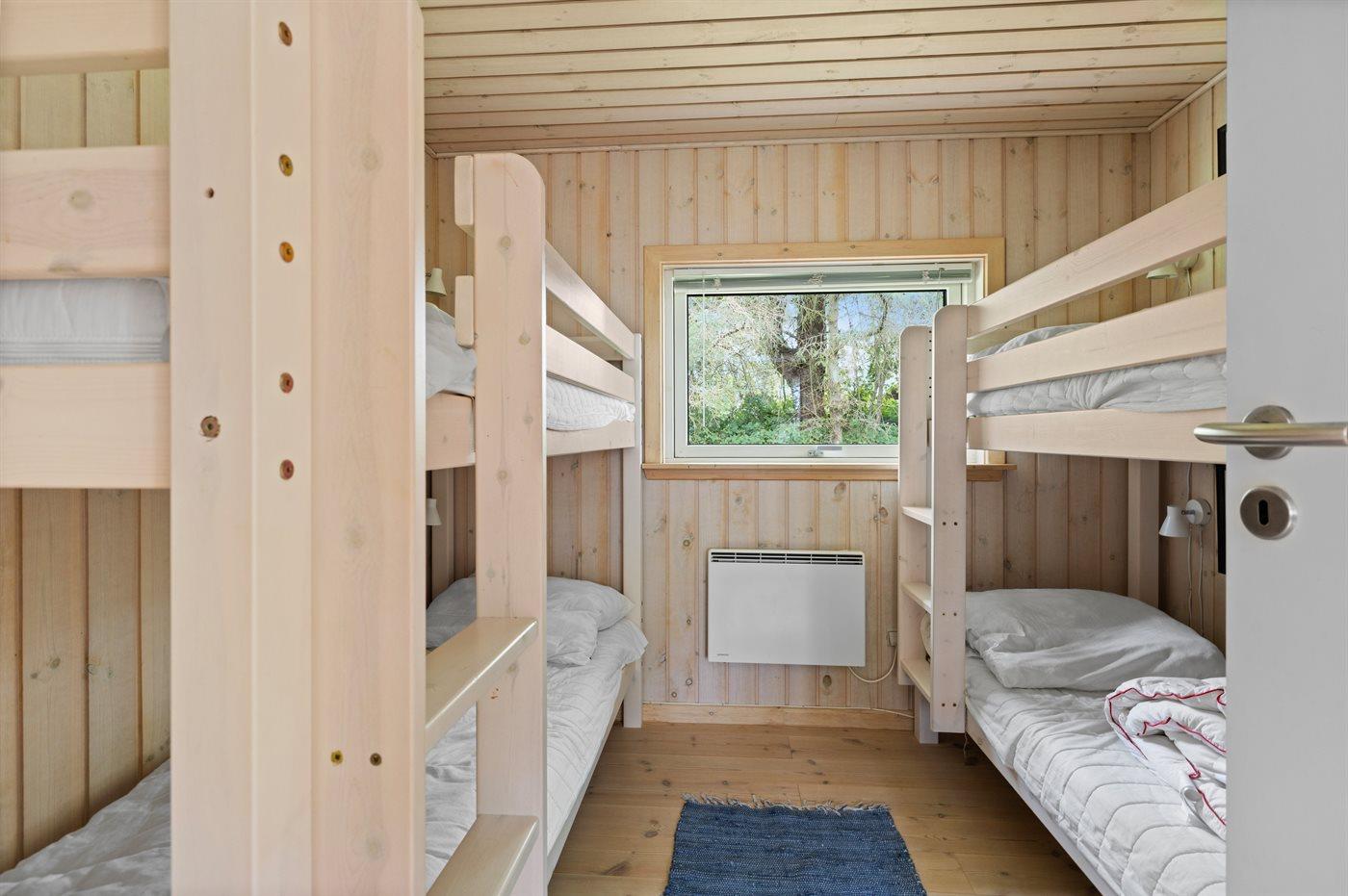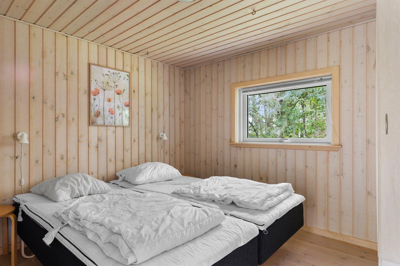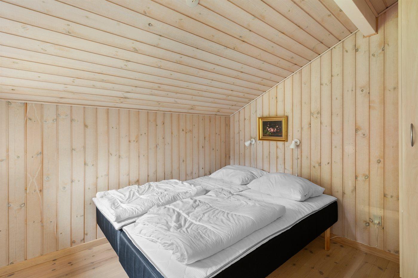 Der er i alt 3 soveværelser. Sovepladserne fordeler sig på: 6 sovepladser i dobbeltsenge. 4 sovepladser i køjesenge. 2 af disse sovepladser befinder sig på husets hems. Derudover er der 1 stk. barneseng.