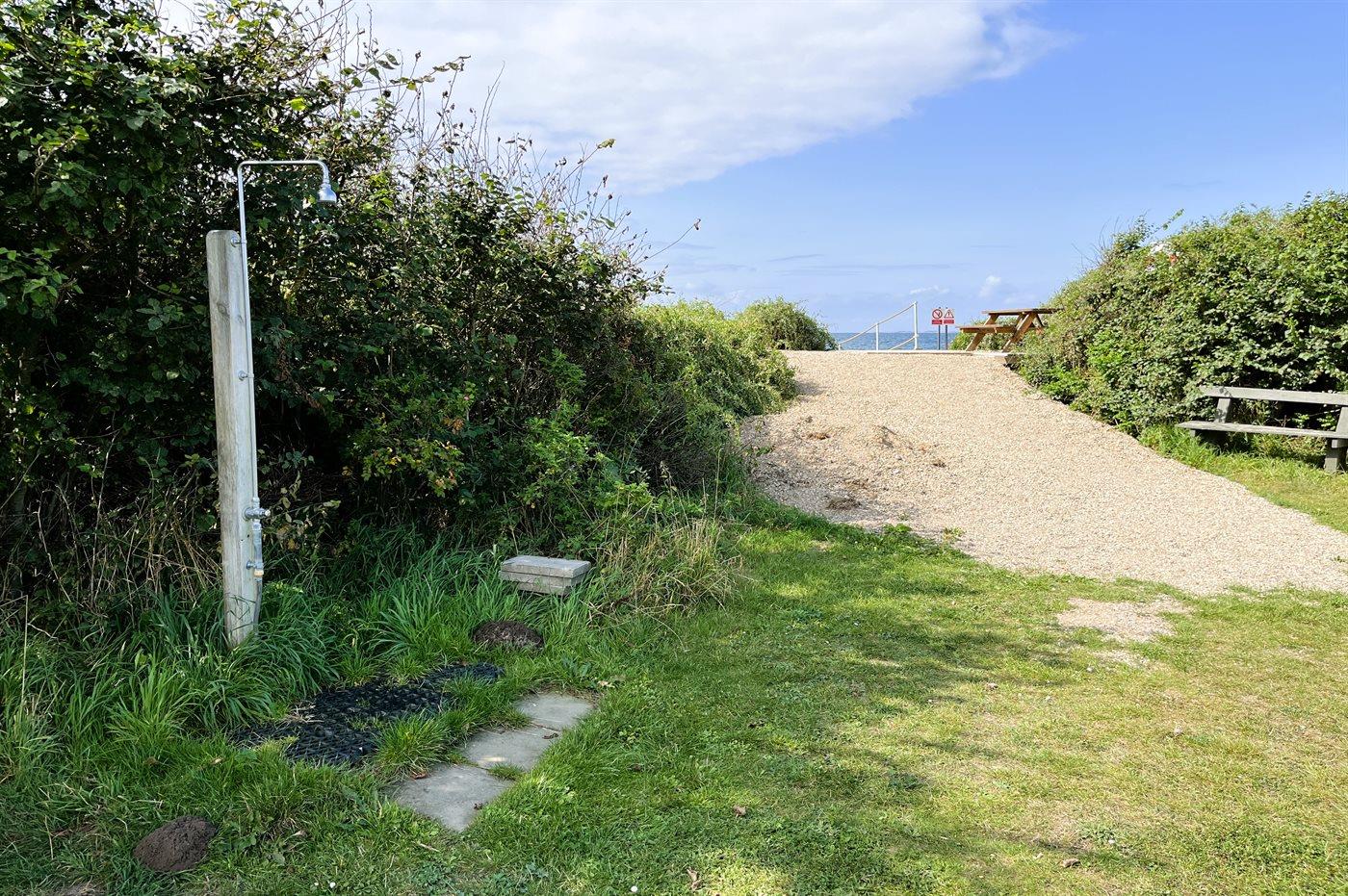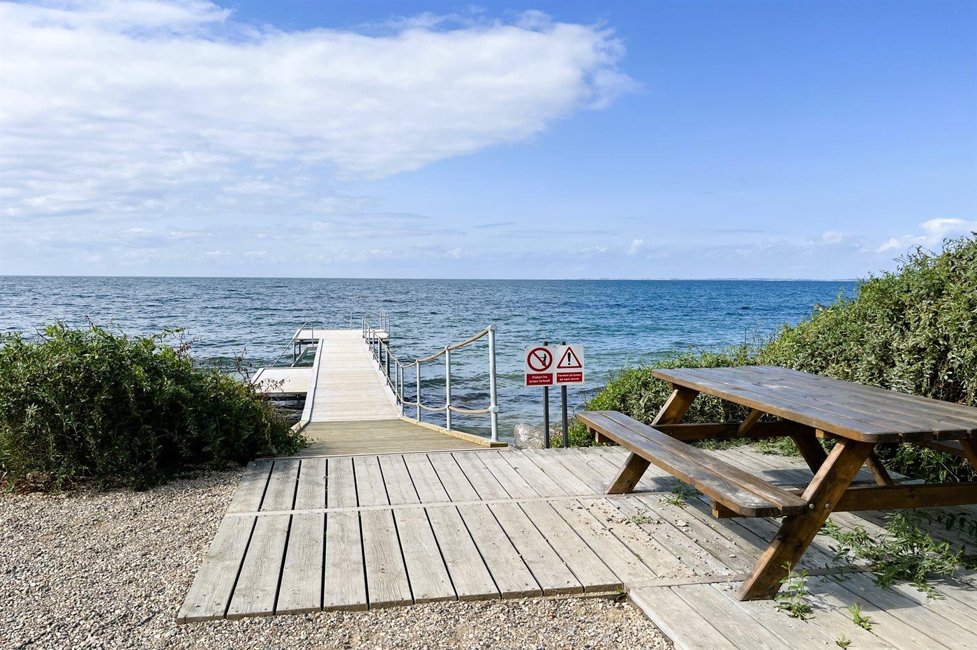 Under 100 m fra huset ligger der fællesområde med bl.a. krolfbane, legeplads m.m. Ved stranden er der opsat helårs badebro og der er i sommerperioden bruser ved vandet.