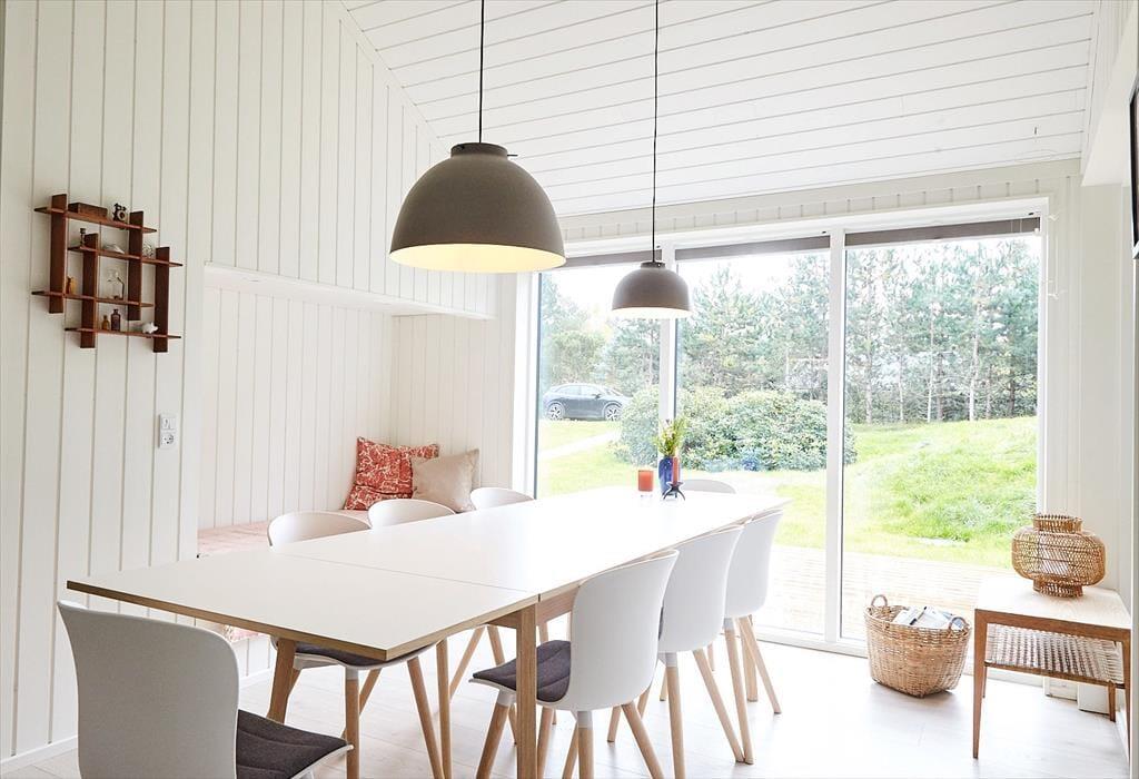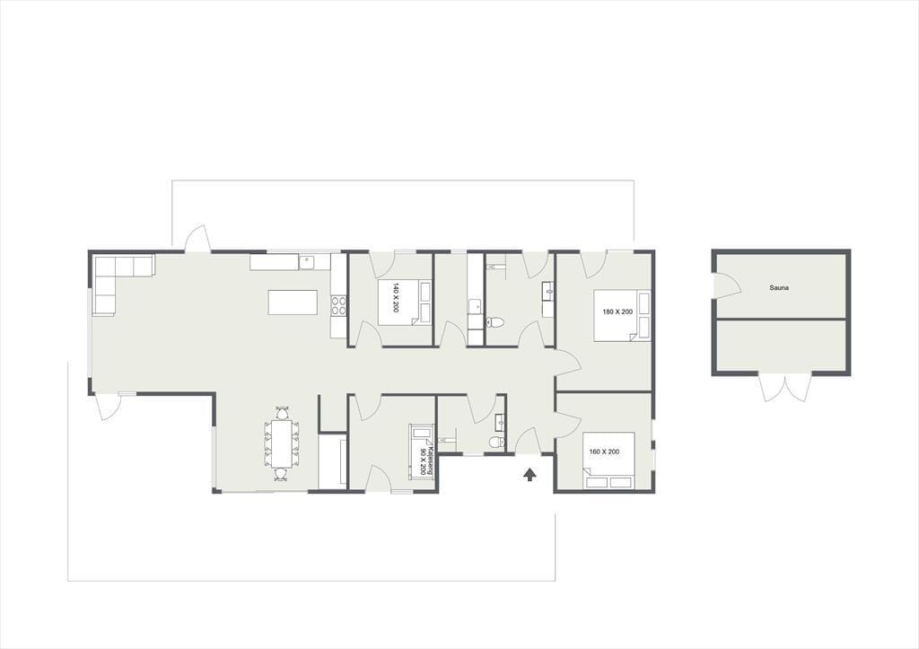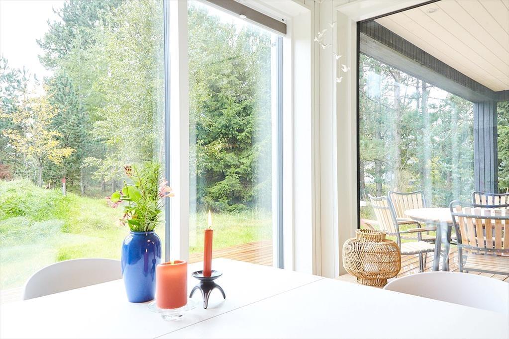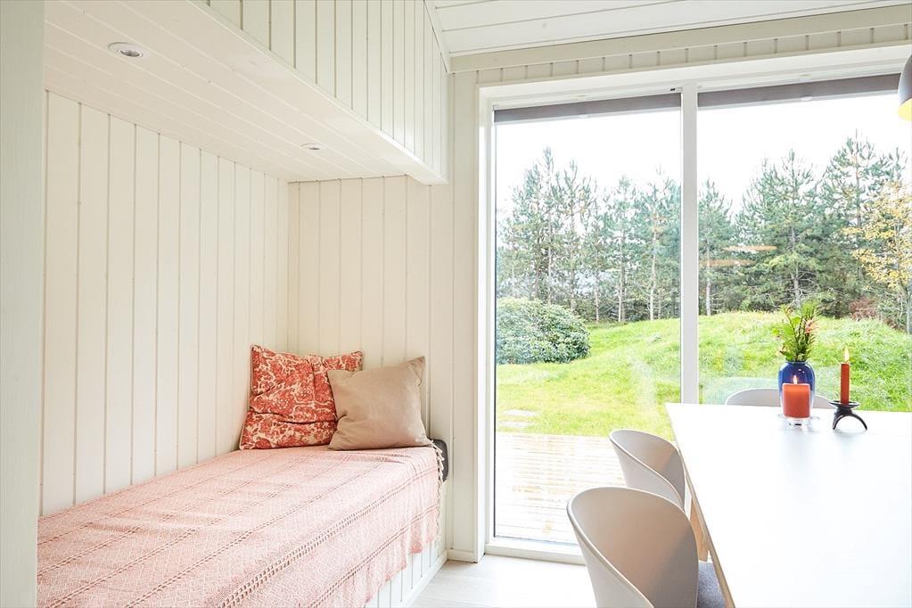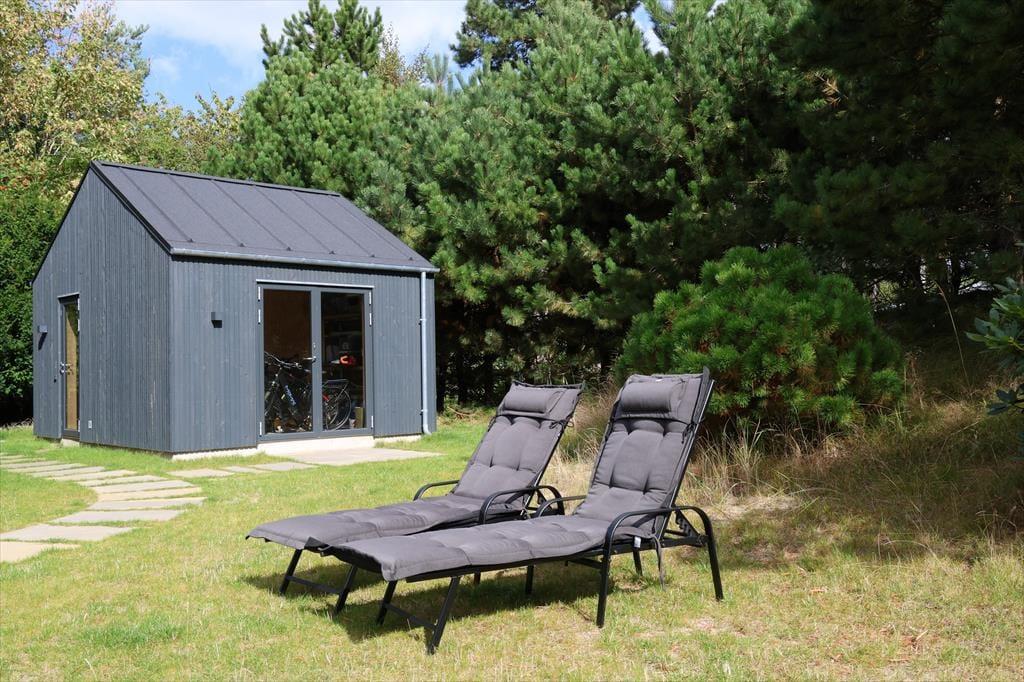 Huset er indrettet med en lækker stue, hvor der er alle muligheder for afslapning og hygge bl.a. ved brændeovnen. I forbindelse med stuen er der et stort og smukt åbent køkken, hvor I kan hjælpes om at tilberede en god frokost. Der er fire dejlige soveværelser, hems og to skønne badeværelser. I annekset er der en lækker sauna. Fra stuen er der adgang til husets helt fantastiske og meget solrige terrasse. Her kan du virkelig fornemme den helt specielle stemning af sommer og sol mens der grilles og hygges eller du måske nyder et godt glas vin. I haven kommer der ofte et rådyr forbi. Husk at benytte dig af husets udendørs bruser, hvor du kan skylle sandet af efter en skøn dag på stranden.