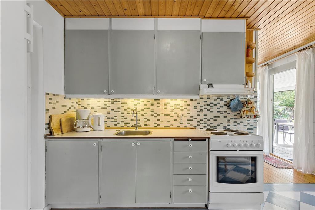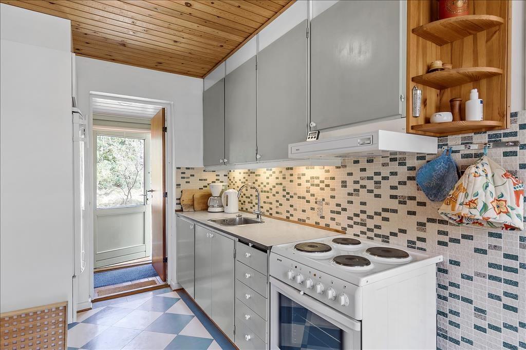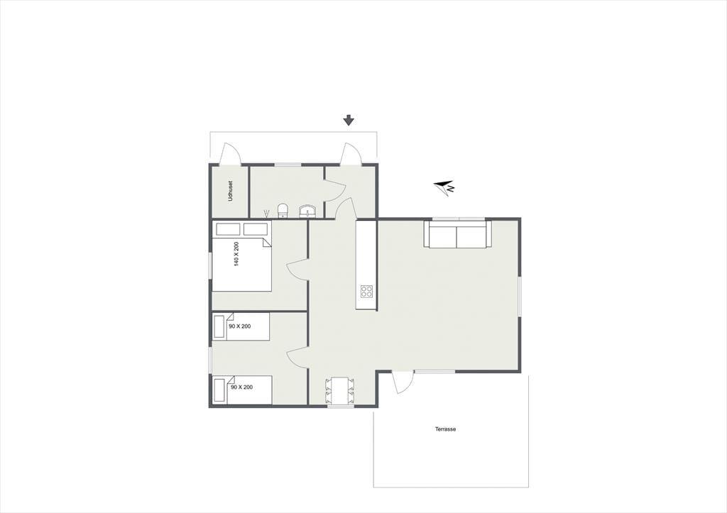 Stilen er med blandet møblement og byder på rigtig sommerhusstemning. Køkkenet er afskærmet og med mindre spisekrog. Huset indeholder 2 små men gode soveværelser med enkeltsenge. Stuen er rummelig og hyggelig med både brændeovn og TV, sovesofa samt udsigt til den hyggelige have hvor rådyrene jævnligt krydser. Badeværelset er med brus og den hyggelige overdækkede terrasse indbyder til dejlige dage i al slags vejr.