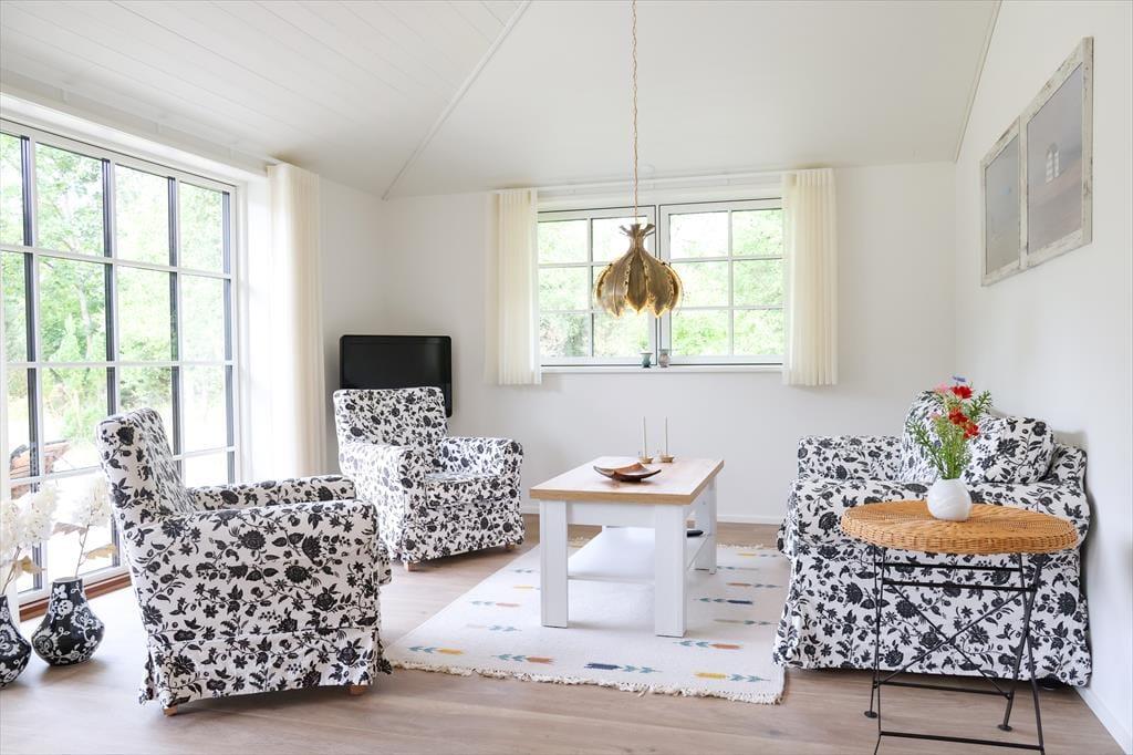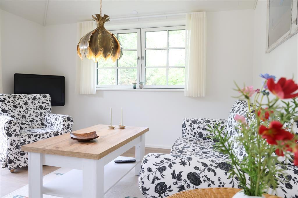 Sommerhuset byder på lyse, indbydende rum og en behagelig atmosfære med plads til samvær og ro. Hjertet i huset er den åbne opholdsstue, hvor I kan nyde hyggelige middage ved spisebordet, læne jer tilbage i sofaen med en god bog eller bare være sammen.