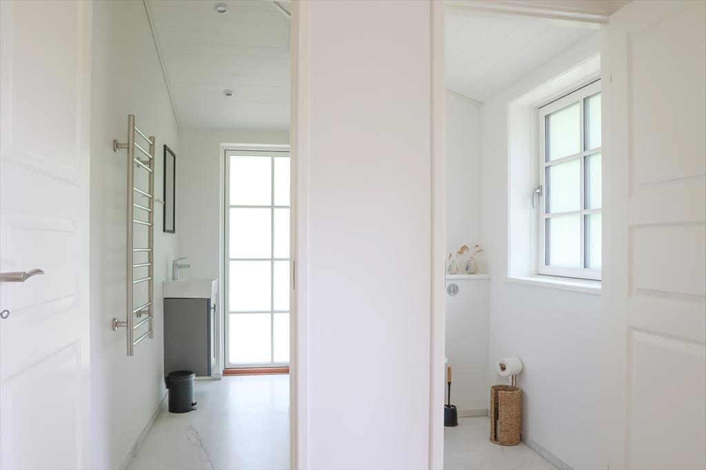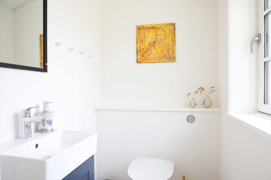Der er to dejlige soveværelser med gode senge og opbevaringsplads (her er mulighed for at overnatte 4 personer og et lille barn i tremmeseng). Samt et flot badeværelse med bruseniche. Toilettet er praktisk adskilt fra badeværelset.