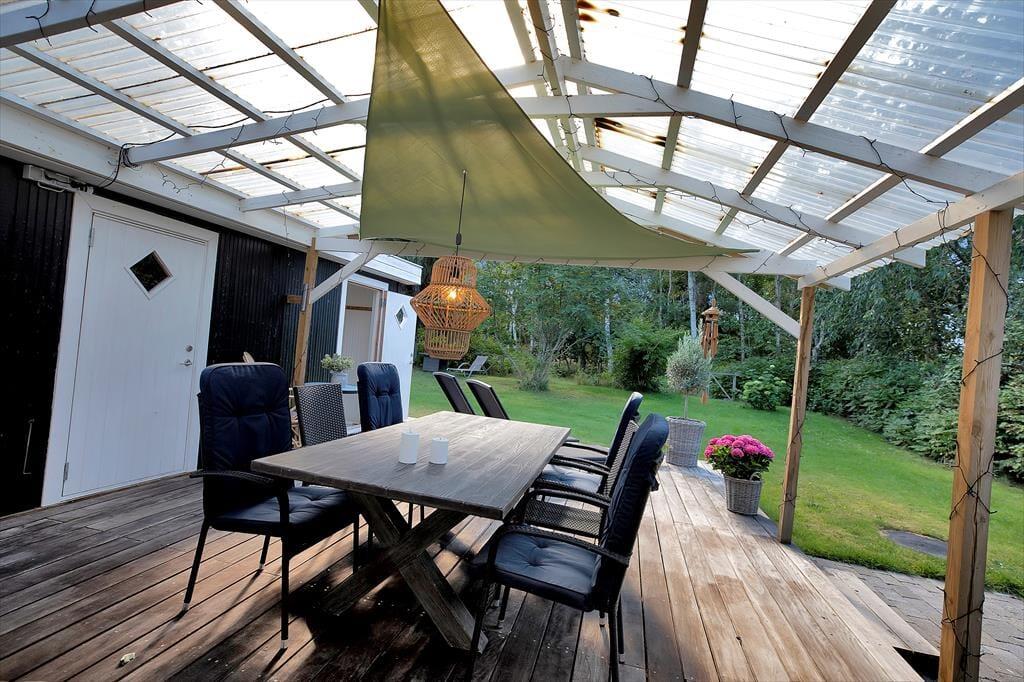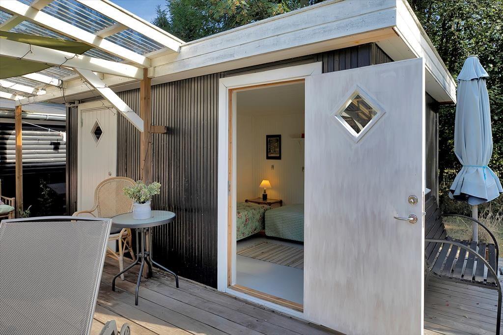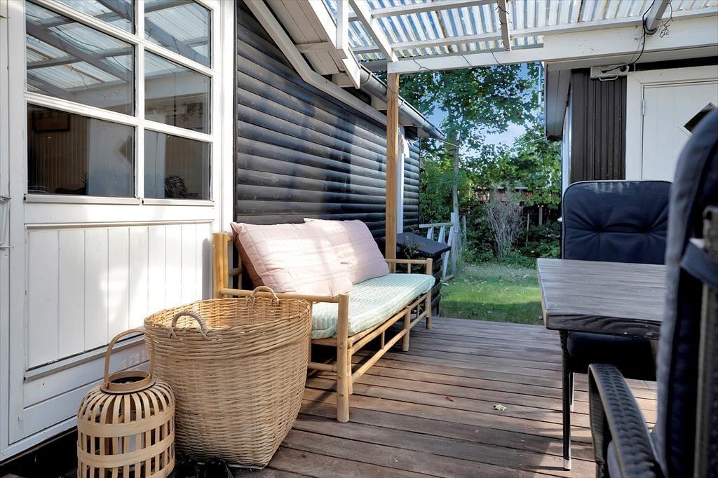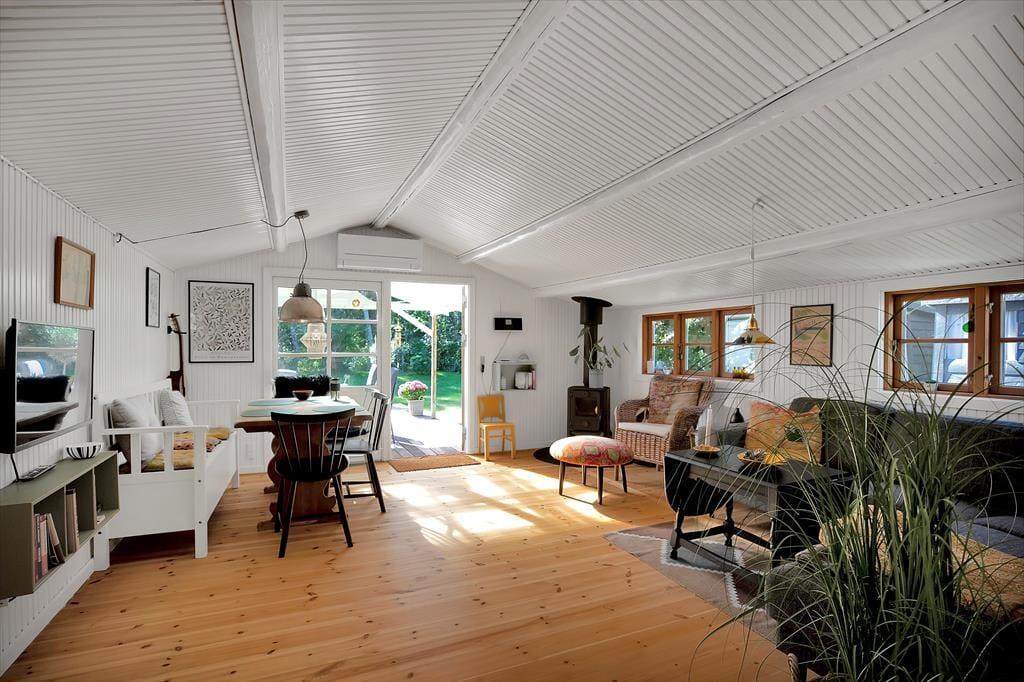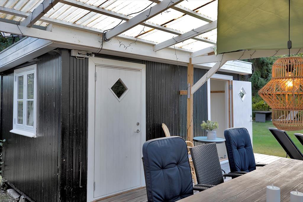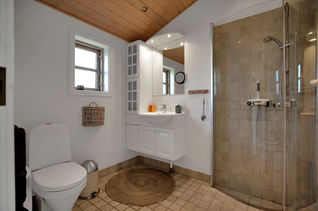 Huset er indrettet med en skøn stue, hvor du virkelig mærker den unikke og særdeles gode stemning, her kan der spilles et slag kort eller du kan læse en god bog imens ilden syder i brændeovnen. I det hyggelige køkken kan I hjælpes med at tilberede en god frokost. Der er et dejligt badeværelse med brus og gulvvarme og to gode soveværelser, det ene med dobbeltseng, det andet med to gode enkeltsenge. Derudover er der et nyistandsat anneks med 2 gode enkeltsenge og el-radiator. På den skønne terrasse, opdelt i en overdækket og en åben afdeling kan du nyde solen fra morgen til aften eller hvad med et godt glas vin. Du kan dog ikke helt undgå at hører trafikken.