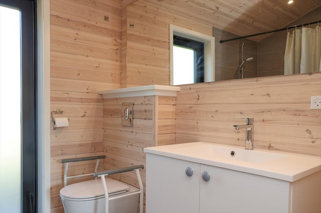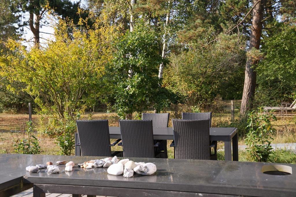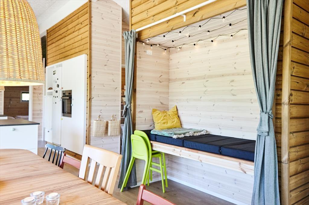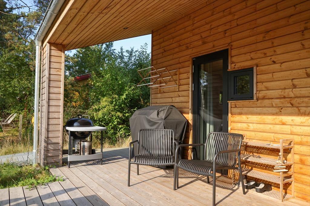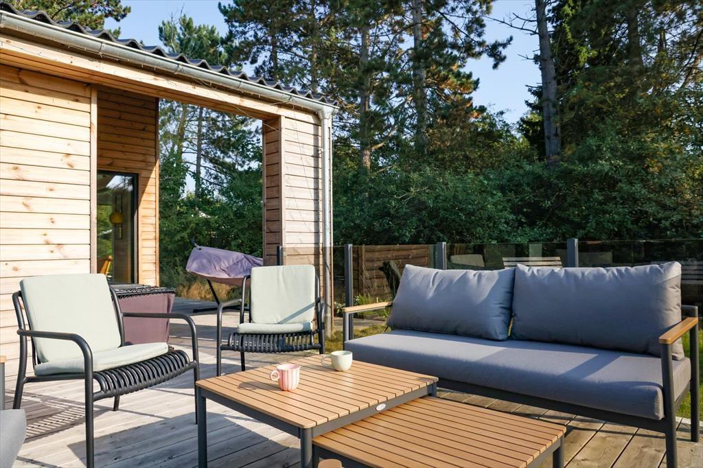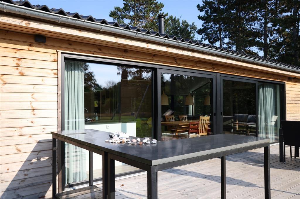 Huset er indrettet med entré, hvor der også er vaskemaskine og tørretumbler. Stort soveværelse med dobbeltseng og adgang til badeværelse. I entré er der adgang til hems med 2 sovepladser. Stort lyst køkken-alrum med god spiseplads, hyggekrog, og udgang til stor træterrasse. Soveværelse med køjeseng. Badeværelse. Soveværelse med dobbeltseng. Stue med brændeovn, TV (kun streaming), og udgang til overdækket terrasse. Herudover er haven anlagt med græsplæne og naturgrund for biodiversitetens skyld i den resterende del.