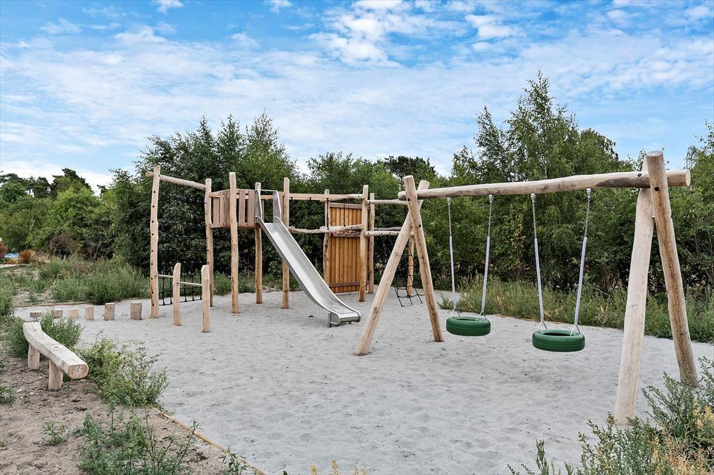Udendørs kan mange timer nydes på sommerhusets gode terrasse der både er åben og har et overdækket areal. På terrassen kan du nyde solen hele dagen og I kan tænde op for grillen om aftenen til hygge også selvom duggen begynder at falde. Sommerhuset ligger en kort gåtur fra Nordstrand, der er en helt fantastisk sandbadestrand. I det fælles område er der en legeplads hvor børn kan hygge sig og mødes med andre børn.