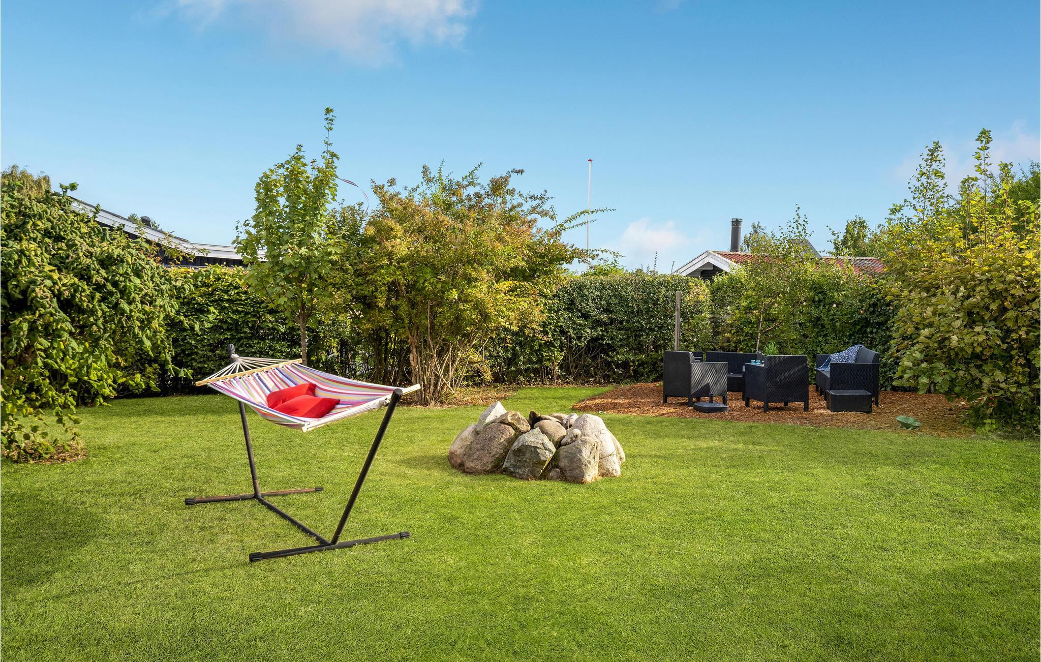 Haven giver jer en god ramme om afslapning og leg. Find jer godt til rette i hængekøjen, mens børn og hunde kan slå sig løs på græsplænen. Der er også et bålsted, hvor I kan samles til snobrød og skumfiduser, når mørket falder på.